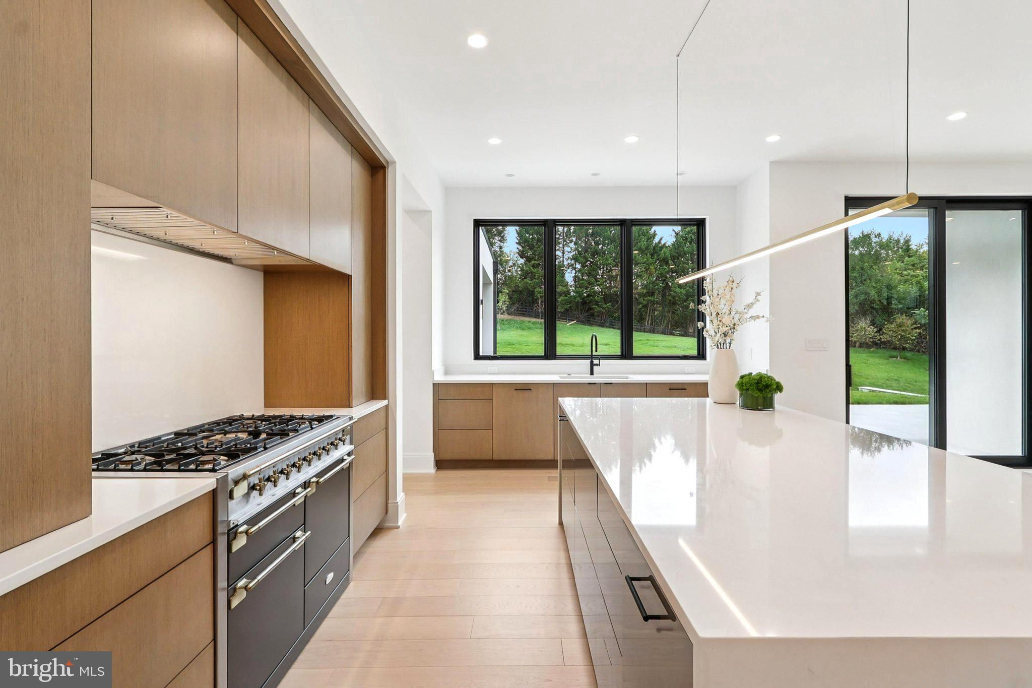 Nestled in the heart of Great Falls, this modern transitional masterpiece, designed by Harrison Design and constructed by Palladio & Co., offers an unparalleled living experience. With a dynamic, open floor plan bathed in natural light, it effortlessly blends traditional elegance with contemporary convenience. Spanning approximately 9,545 square feet across three meticulously finished levels, this architectural gem is a designer’s dream, featuring state-of-the-art finishes and thoughtfully curated details throughout. As you step inside, your eyes are naturally drawn through the space, guiding you toward the level manicured green lawn at the back. The grand two-story vaulted foyer is highlighted by a sculptural curved-rail staircase and elegant designer lighting, setting the tone for the entire home. The kitchen is a chef’s delight, featuring a statement 48” AGA range, paneled appliances, and a striking stone island, with a spacious scullery kitchen designed for prep work. The great room, centered around a linear gas fireplace with a floating hearth, creates a cozy and inviting atmosphere. The sun-soaked casual TV/morning room features floor-to-ceiling retractable glass sliders, seamlessly blending the interior with the outdoor living space and framing views of trees and nature. The expansive covered outdoor areas and patio are perfect for both intimate evenings and seasonal gatherings, with the potential to add a pool, spa, grill station, outdoor fireplace, or fire pit. The main level also features a formal dining room, a luxurious owner’s suite with a spa-inspired bath complete with a dual sink vanity and Graff fixtures, a home office, and a convenient mudroom leading to the oversized attached three-car garage with two EV chargers, adding both function and elegance to the space. On the upper level, the exceptional primary suite offers a serene sanctuary with a freestanding soaking tub, a curbless glass-enclosed shower with fluted tile, and heated radiant floors. Multiple walk-in closets and a dedicated makeup center complete this retreat. This floor also includes three additional ensuite bedrooms, each with custom tile baths, a laundry room and abundant storage for linens. The lower level is designed for relaxation and entertainment, featuring an open recreation room with ample natural light and easy access to the yard. The full wet bar, complete with a tall wine cooler and refrigerator, sets the stage for hosting, while the separate gym/exercise room provides an ideal space for fitness. The home theater or optional golf simulator room is pre-wired and ready for enjoyment and a private ensuite craft room (or 6th bedroom) adds the finishing touch to this floor. An optional elevator can also be added for convenience. Every detail has been thoughtfully crafted, with custom design elements throughout. This exceptional home offers the perfect balance of serene living in Great Falls with easy access to fine dining, shopping, and more. Prospective buyers are encouraged to reach out to Listing Team to inquire for further information about the distinctive features and key specifications of this remarkable property and schedule a tour.