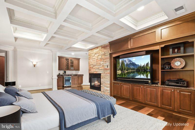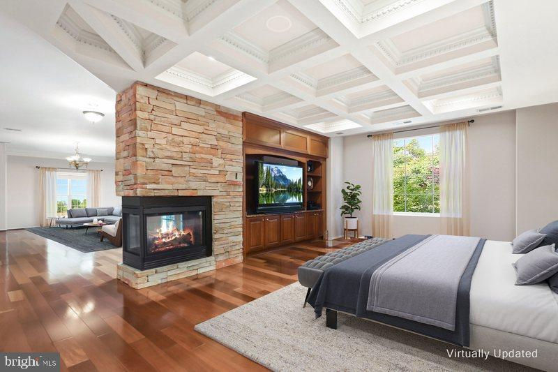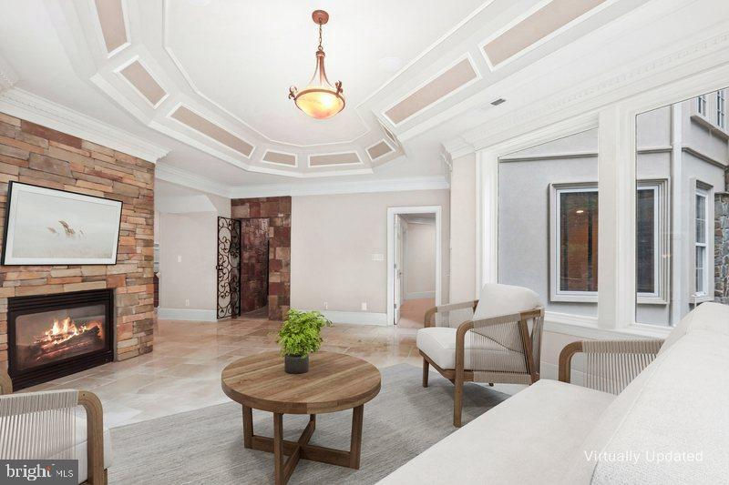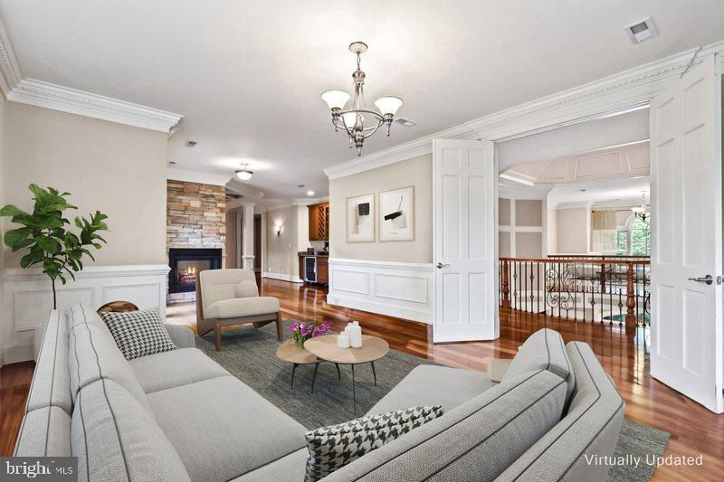 Stately English Manor custom build home in2008 by Botero in Springvale area of Great Falls. Three fully finished levels of living space with 2 wine cellars, 2 media rooms/theater room, and bedrooms on each level. Fabulous home for entertaining family and friends. 4 car garages with parking for up to 10 cars. Fully fenced 2.2 acres of green space. Outdoor offers you a swimming pool, outdoor kitchen and gazebo as well as flat green space for your enjoyment. The grand primary suite completes with sitting area, 2-sided fireplace, bedroom sleeping room with coffer ceiling, and built-ins, 4 large walks in closets, a deluxe bathroom and separate exercise area. There are an additional 3 bedrooms all with their own private bathroom and an upper level laundry room. The main levels offers multiple living and dining spaces as well as a private office. The open kitchen invites you in, large preparation space, lots of counter space and a walk-in pantry. Everything you need at your fingertips! Virtually Staged photos are indicated.