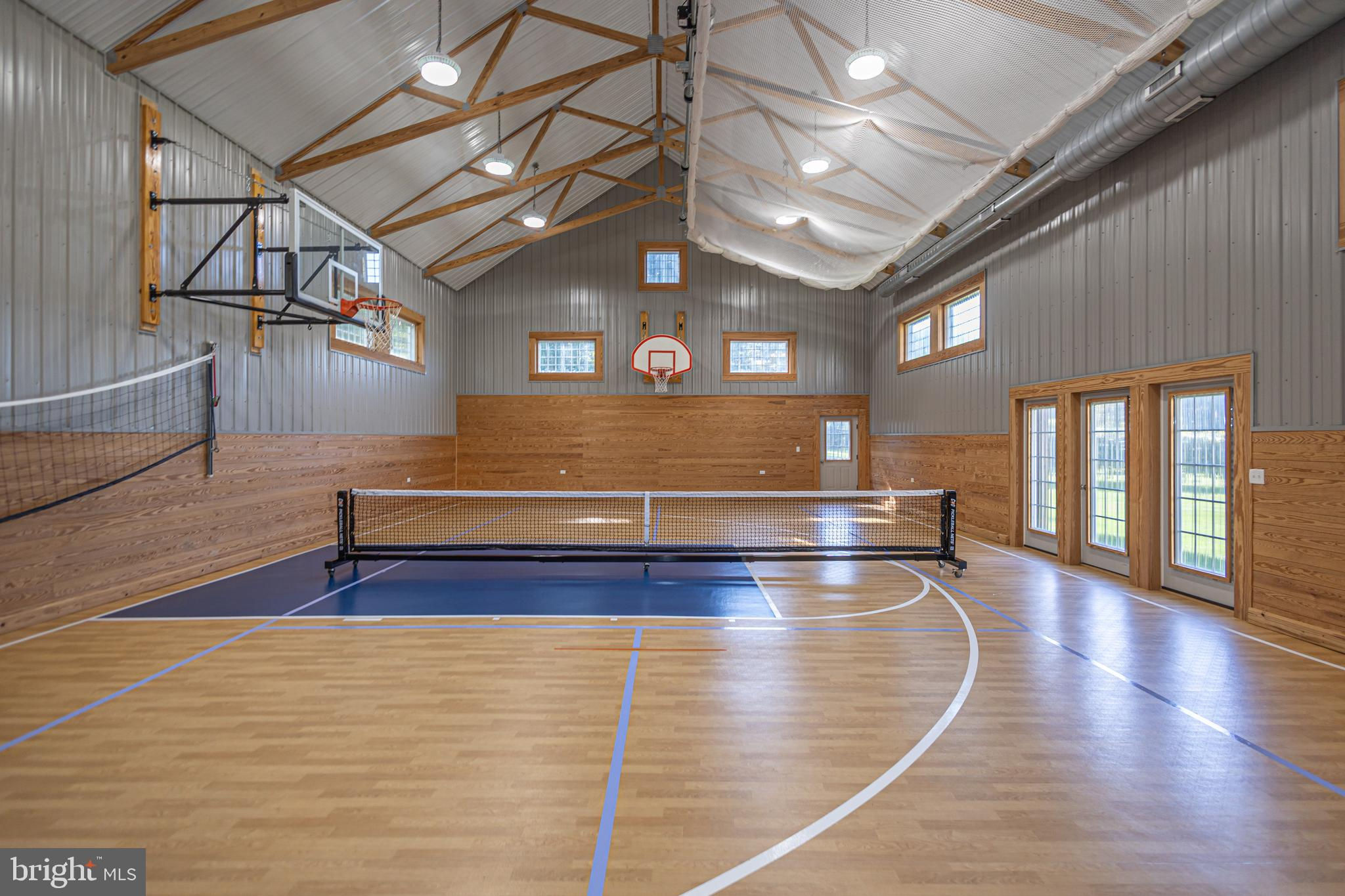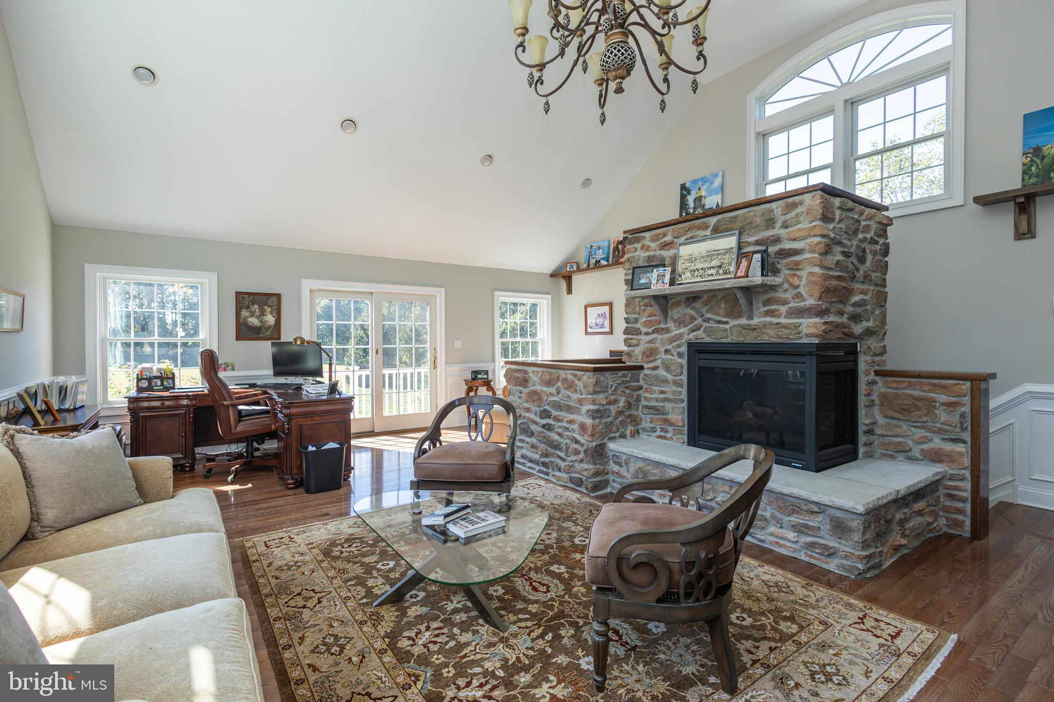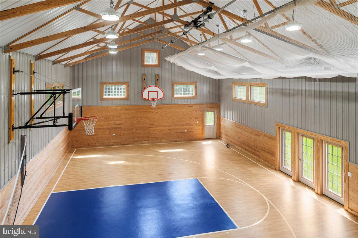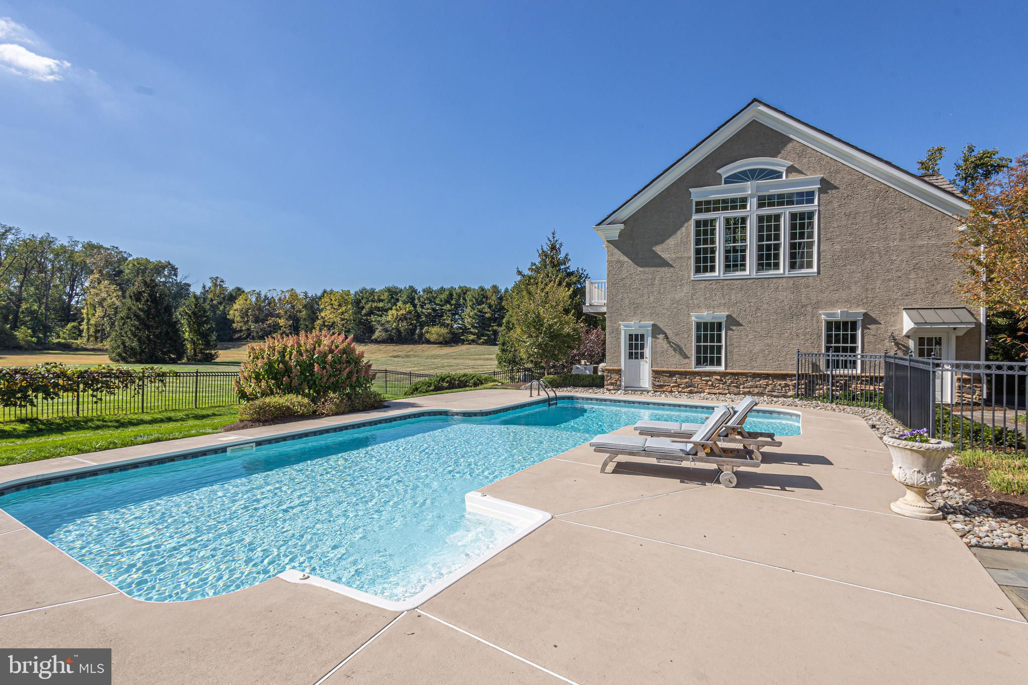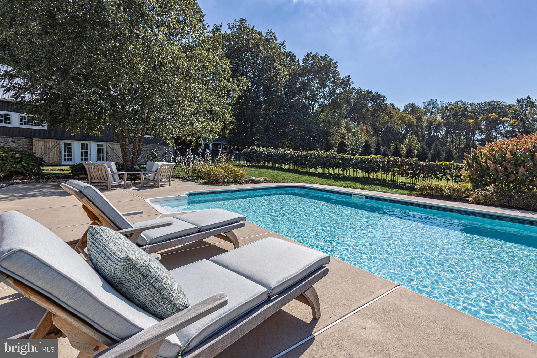 All we can say is WOW! You will not believe what this special property has to offer. Exquisite estate compound in Solebury, PA, located in the blue-ribbon New Hope-Solebury School District. Comprising of 3 buildings on two acres backing to 5 additional acres of open preserved space and a tree farm, the property includes: a 6-bedroom, 6 full and 2 half-bath residence with walk-in closets, formal living, dining and family rooms, chef’s kitchen with Wolf 6-burner double oven & dual Sub-Zero refrigeration, sunroom, home office, two laundries and a fully finished basement with additional family room, flex room, gym, and storage; 4 car attached garage, another detached 2 car garage with spacious office above (792 s.f.) with fireplace, pool storage; a fully conditioned versatile accessory building (2,170 s.f.) offering indoor basketball, pickleball, volleyball, hitting cage, and big-screen TV area. Manicured grounds feature heated in ground pool, bluestone hardscaping, full security & camera system, sprinkler system, natural gas generator (no buried tanks), well & septic. A rare opportunity for multi-use luxury, recreation, and work-from-home all in one private, meticulously maintained Bucks County estate. This homesite captures the essence of exclusivity; a super private, southern-exposed backyard sanctuary seamlessly set within an upscale community.