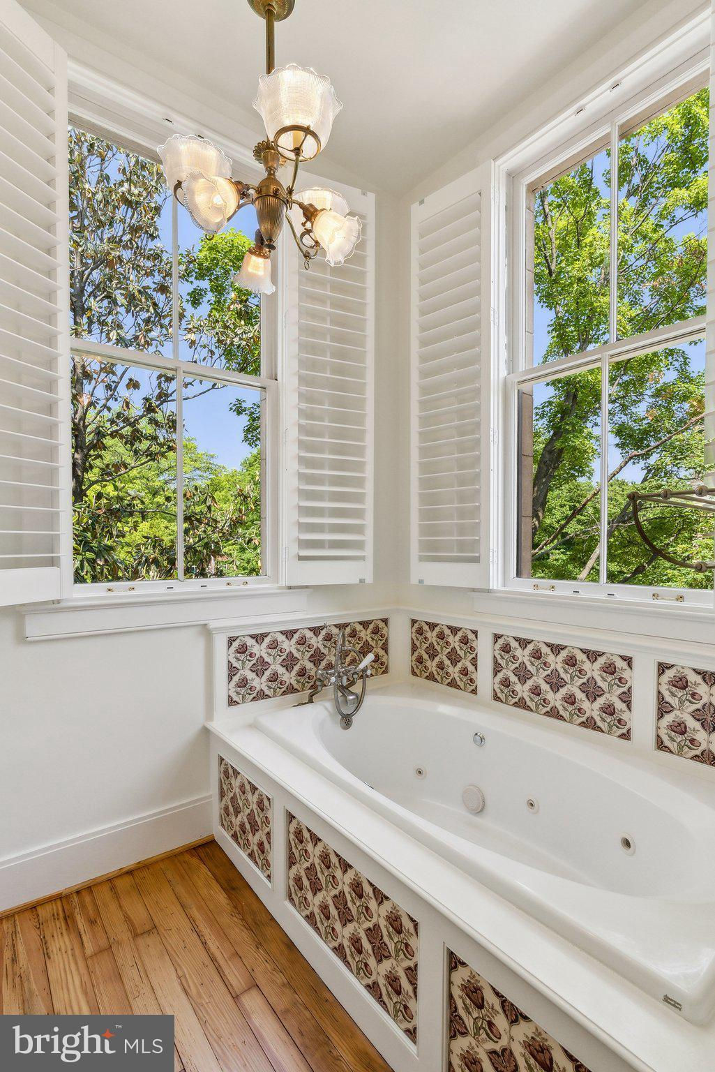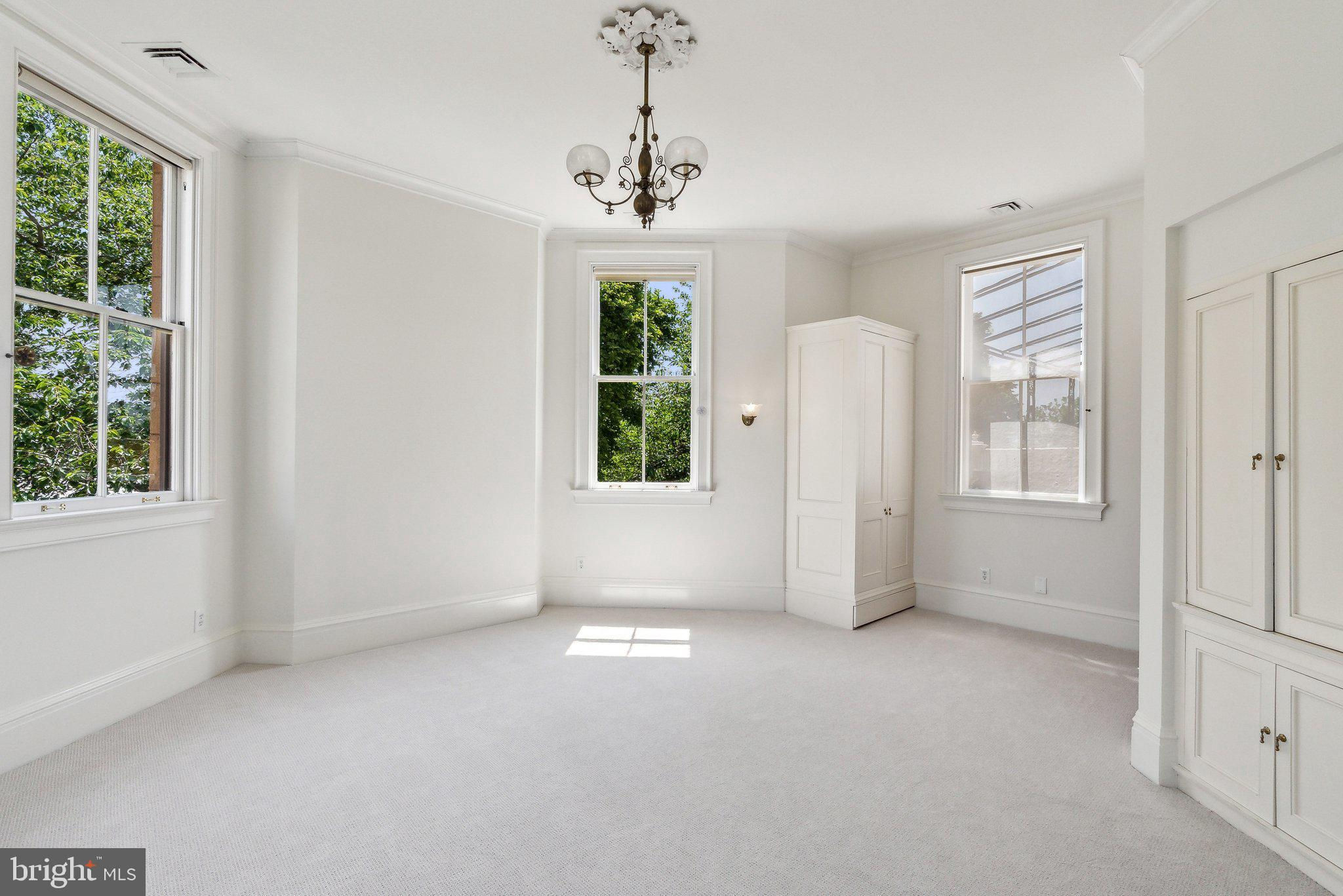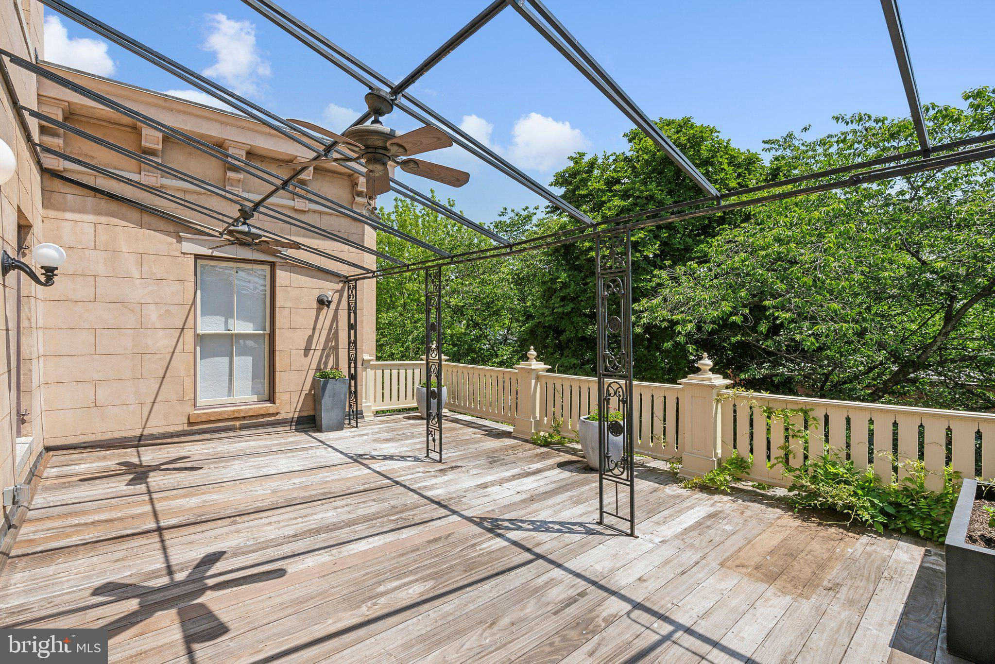 The Alexander Graham Bell House | Step into a Gilded Age fantasy with this extraordinary Italianate corner residence, built in 1854 and once home to Alexander Graham Bell and his family. Steeped in history and architectural splendor, this six-bedroom, six full and two half-bath Georgetown estate is a masterwork of 19th-century elegance, meticulously preserved and thoughtfully updated. A Grand Historic Interior Spanning four gracious levels, the home is centered around a sweeping mahogany staircase rising beneath a stained-glass skylight. Echoes of Upstairs/Downstairs living abound—from working call bells connecting principal rooms to the kitchen, to grapevine and acanthus-leaf moldings, faux bois doors, paneled window shutters, and intricate brass hardware. The twin parlors—perfect for formal entertaining—feature marble fireplaces with carved acorn details, gilded crown moldings and chandelier medallions. Stained-glass pocket doors lead into the formal dining room, where striped wood floors extend into a ballroom-like space framed by Palladian triple-hung windows that open to the terrace garden and fountain. Period chandeliers, cut-crystal sconces, and etched glass fixtures complete the unified decorative scheme. The main level half-bath features an antique Edward Johns & Co sink, period high-tank commode, and opaline glass light fixtures. Chef’s Kitchen & Terraced Garden The light-filled, eat-in kitchen blends historic charm with modern functionality. Anchored by a wood-burning fireplace, it includes Wolf and Sub-Zero appliances, a mix of butcher block and stone counters, and fully functional original call bells. French doors open directly to the lush, walled terrace garden—an urban sanctuary complete with mature plantings and a stone fountain. Private Quarters & Lavish Suites The original second-floor primary bedroom is bathed in natural light and adjoins a marble-and-tile ensuite bath with Waterworks fixtures and a towel warmer. A nearby study/library features a marble fireplace and access to a canopied terrace, as well as a concealed Eastlake-style wet bar outfitted with a copper sink, pomegranate-motif painted tiles, and herringbone cabinetry. A later addition brings a private octagonal primary suite enhanced with opaline glass tiebacks, floral plaster medallion, and dual bathrooms. One features a marble sink, tile shower, and Waterworks fittings; the other offers a large marble vanity within a spacious dressing room, complete with a built-in ironing station and Jacuzzi tub. On the third floor, two additional bedrooms each offer marble fireplaces, custom built-ins, and full ensuite baths with clawfoot tubs, pedestal sinks, and antique light fixtures. Lower Level Accessible via private staircases, the fully equipped lower level includes a two-bedroom in-law or rental suite with twin closets, a full and half bath, and a dedicated laundry. Period elements abound: original tile floors, a Dutch door, cast-iron hardware, and tongue-and-groove detailing. The historic butler’s pantry and second laundry station add charm and functionality. Additional Features Include: Oversized two-car garage with ample storage and recent improvements Copper flashing and drainage throughout Original enamel doorknobs, locks, and fixtures throughout Multiple fireplaces, including wood-burning and decorative marble Thoughtful updates with Waterworks, Lefroy Brooks, and Czech & Speake fixtures A Rare Opportunity Located within the Georgetown Historic District and listed on the D.C. Inventory of Historic Sites, the Alexander Melville Bell House represents an extraordinary convergence of heritage, craftsmanship, and luxury. It is not merely a home—it is a legacy, ready for its next steward.