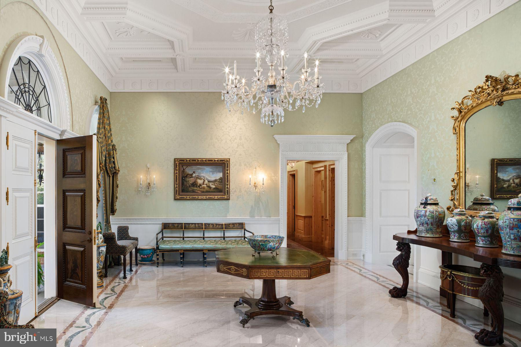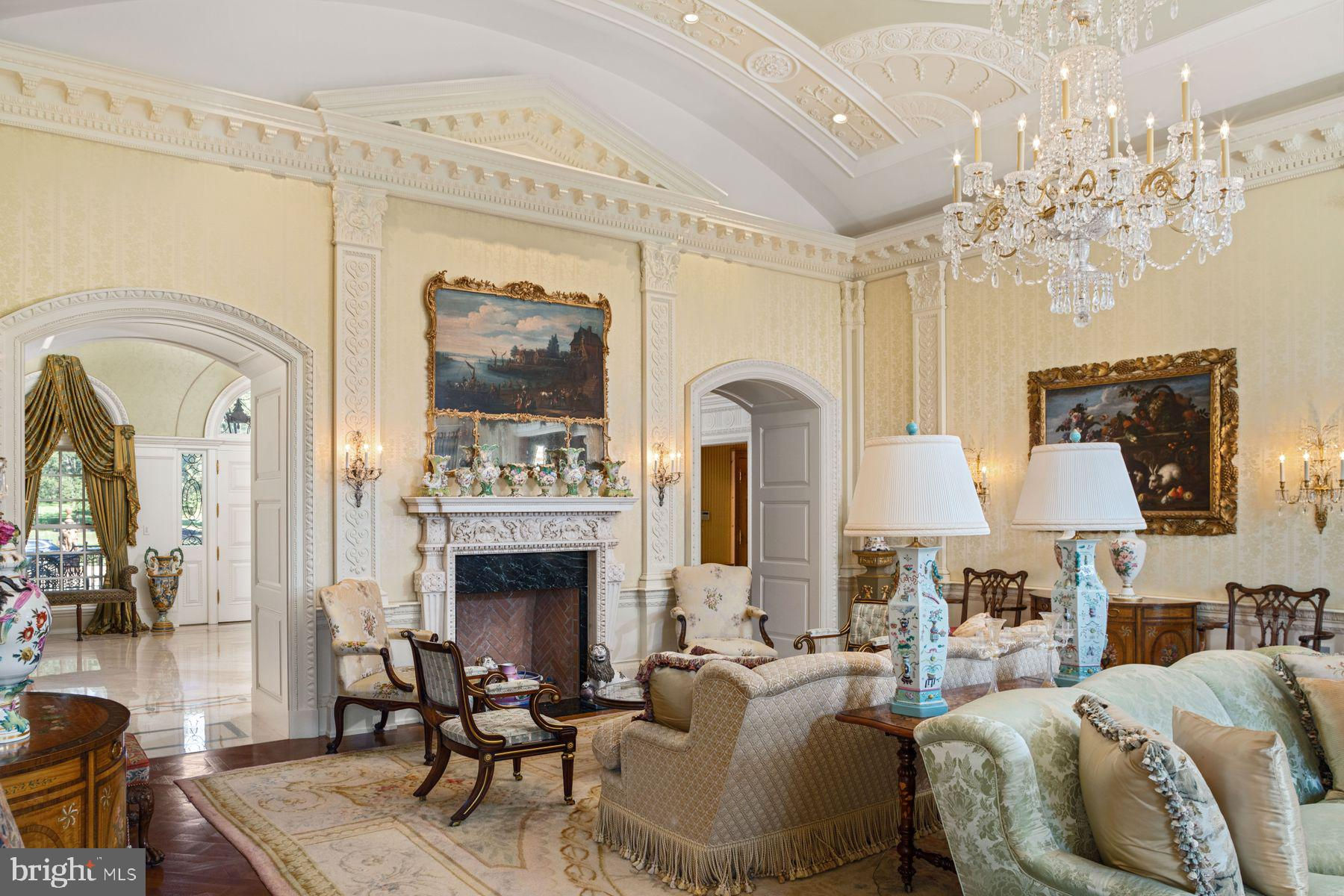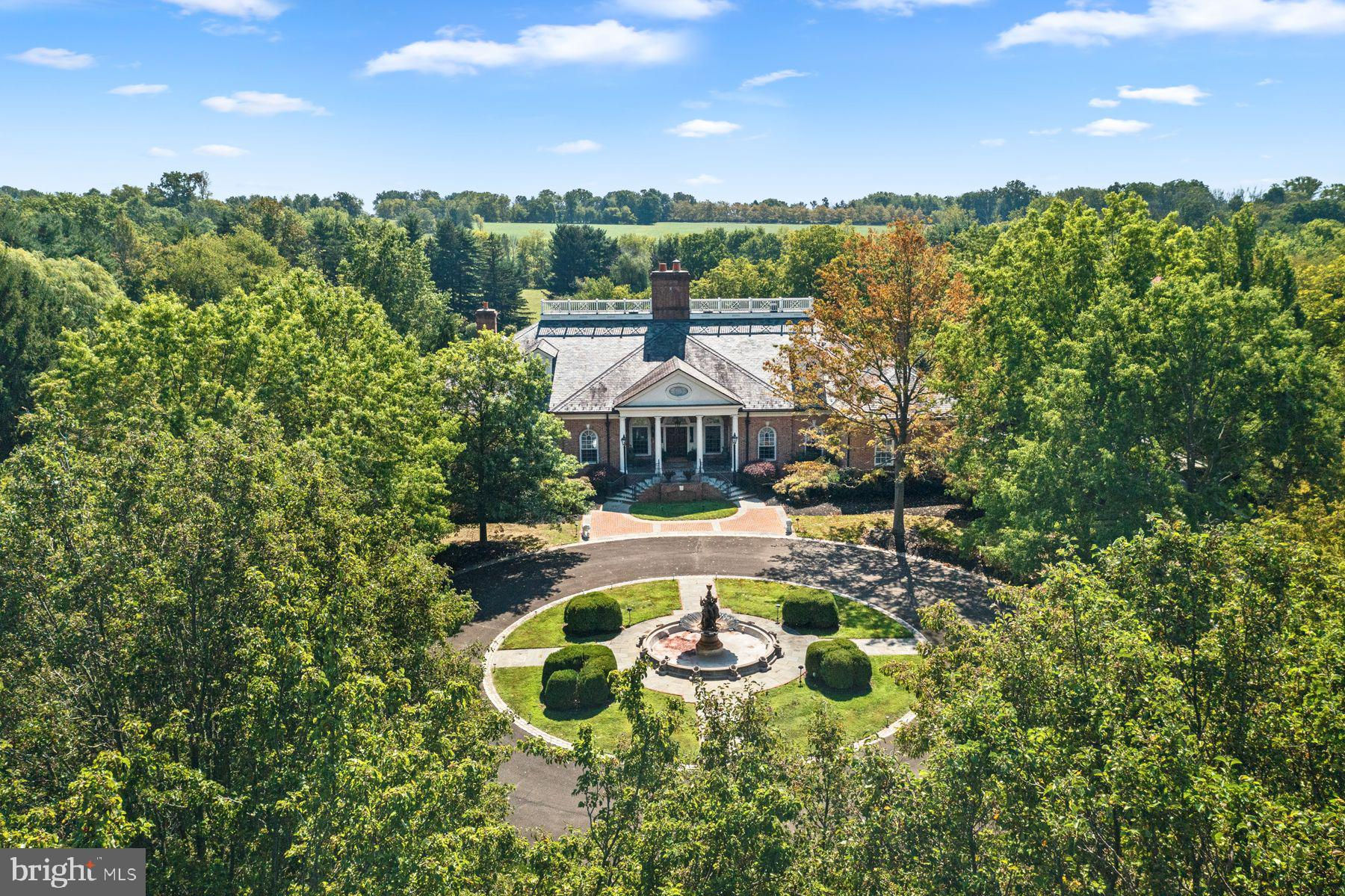 TWIN PONDS is a superior combination of exquisite architectural designs by Spence Kass & Associates and old-world craftsmanship using only the finest materials throughout. It represents a combination of specially selected items discovered and outsourced from the owner’s travels around the world and a collaboration with prestigious designers. The grounds are equally as majestic as the sprawling country estate thoughtfully sited high and center with captivating views of the rear Twin Ponds, swimming swans and 60+ acre terra backdrop that sits directly behind. The iron gated approach is secure, and tree lined. The approach to the front entry is grand with a royal circular drive around large fountain. The heritage trees, ponds and scenic landscaped gardens all feature irrigation and professional landscape lighting creating an enchanting estate wonderland like no other. This Georgian inspired masterpiece strikes a harmonious balance between formality and ease of play. The main level floor features an elegant entry marbled foyer with regency style Baccarat chandeliers and sconces. The Great room features English country charm with buoyant blues, grand chimney piece from France, detailed ceilings and tall custom built in cabinetry. The Dining room resembles the Edwardian era with artist hand painted mural of the property vistas commissioned of the property landscape. The heart of the home is the custom Joanne Hudson kitchen with William Oh cabinetry, dual working islands, very top-of-the-line appliances including 10’ La Cornue French range, two Meile dishwashers, oversized Sub Zero French door Refrigerator/Freezer and refrigeration drawers. The kitchen features a dramatic hand painted stained glass skylight above and numerous oversized French doors to outdoor portico. Grandiose unfolds as you move through the main floor – it’s the levity in all the luxury. The living rm and main bedroom suites are warm with richly layered textures, museum quality European chimney pieces and floor to ceiling windows. They infuse English high style with a generous dose of French. The marble BR spas all feature Sherle Wagner luxury fixtures, Italian veined marble and regency crystal light fixtures. The handsome library boasts hand crafted detailed millwork and leathered ceilings – An ideal spot to sip whiskey and relax. Enter the lower level by elevator or stairs for more casual family entertainment. Special features include a spacious family gathering room with wall of French doors covered bluestone patios, large wet bar and kitchenette with all the bells and whistles, handsome Billiards room, Pizza Kitchen which would rival ANY food network show with its equipmnt, space and incredible details, Spa with large marble tub, sauna, etc. Around the corner is an award-winning wine cellar with custom iron gate doors handcrafted in France and wine tasting area to savoir the labor of grapes. In addition are an abundance of large storage closets and several meticulous mechanic’s room. Attached to main level and entry into mudroom is an oversized four-car heated garage with motor courtyard outside. Other features include full house generator, radiant floor heat on entire main level, sophisticated Lutron electric system and generator for the entire house and Geothermal system as well. It’s obvious that NO expense was spared during the construction and maintenance of this one-of-a-kind property. Outbuildings are plentiful on an estate of this size and magnitude. You’ll see a show stopping, refurbished and modernized 1853 Bank Barn featuring two stories. The fieldstone is impeccable, and the interior is modern. There’s a professional size sport court and 4000 square foot maintenance workshop with garages to house all of the property equipment such as tractors, golf carts and gators, etc. There is no other estate property in Pennsylvania that Rivals Twin Ponds. Addl 40+ acres avail abutting property. 30 min to center city/20 min to the Mainline.