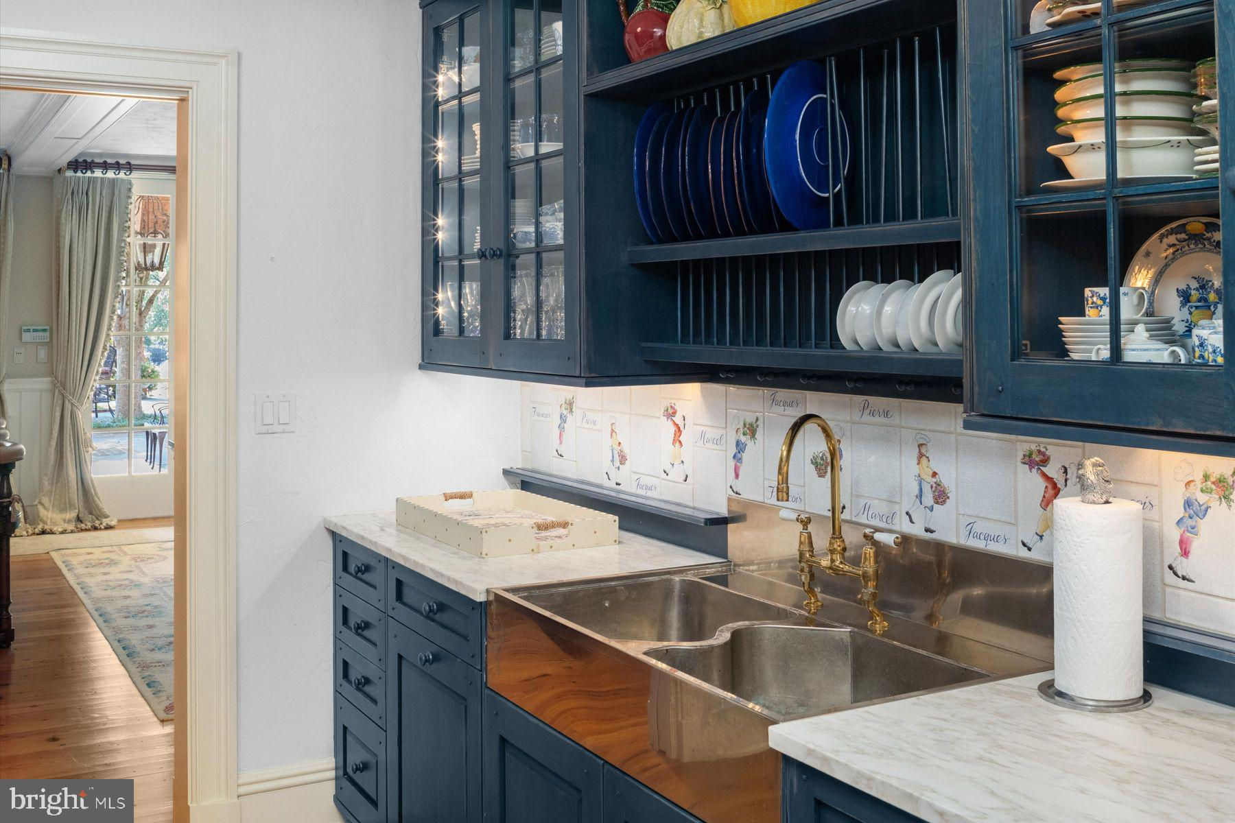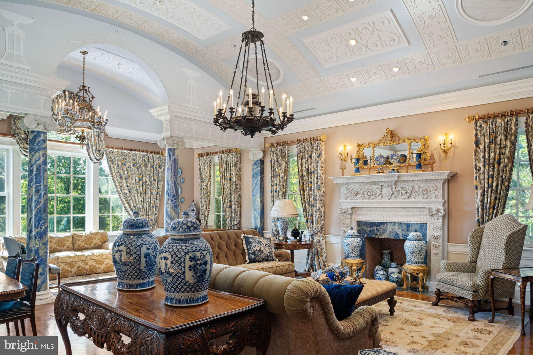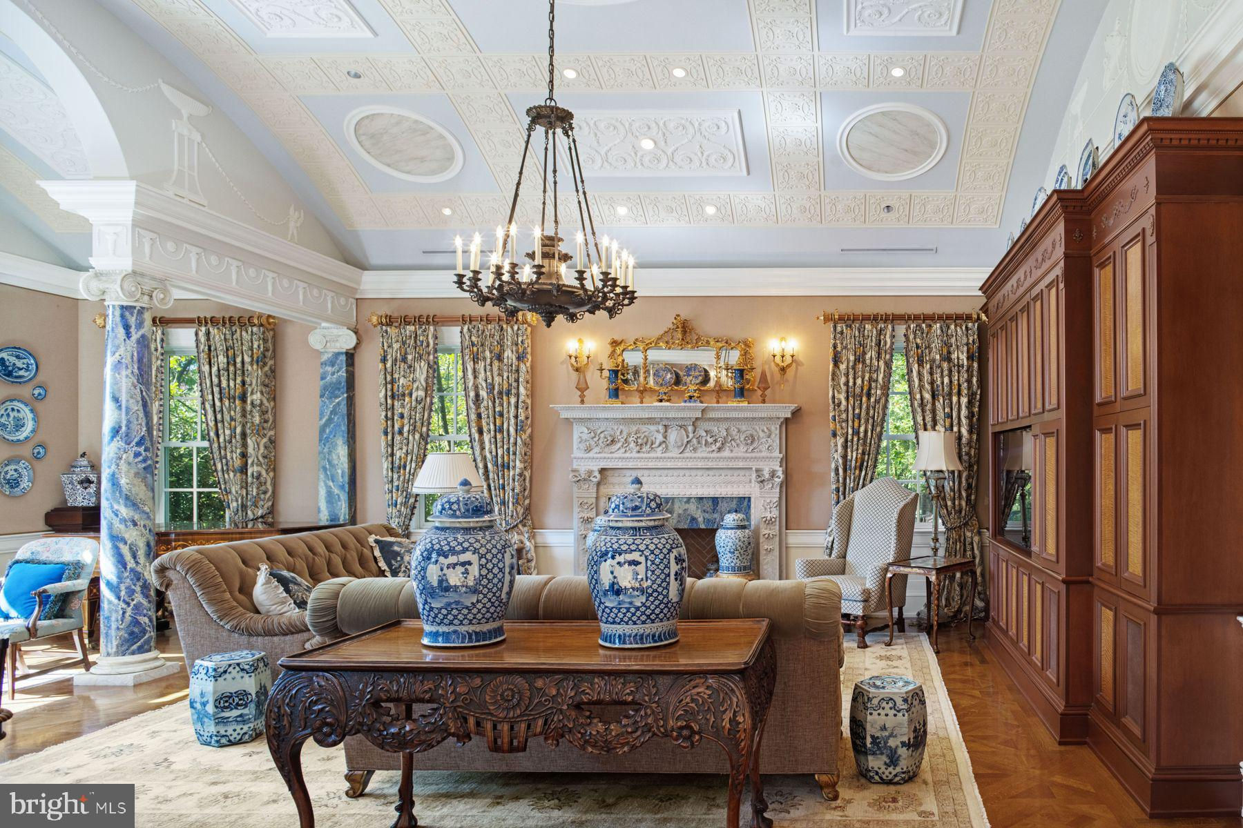 TWIN PONDS is a superior combination of exquisite architectural designs by Spence Kass & Associates and old-world craftsmanship using only the finest materials throughout. It represents a combination of specially selected items discovered and outsourced from the owner’s travels around the world and a collaboration with prestigious designers. The grounds are equally as majestic as the sprawling country estate thoughtfully sited high and center with captivating views of the rear Twin Ponds, swimming swans and 60+ acre terra backdrop that sits directly behind. The iron gated approach is secure, and tree lined. The approach to the front entry is grand with a royal circular drive around large fountain. The heritage trees, ponds and scenic landscaped gardens all feature irrigation and professional landscape lighting creating an enchanting estate wonderland like no other. This Georgian inspired masterpiece strikes a harmonious balance between formality and ease of play. The main level floor features an elegant entry marbled foyer with regency style Baccarat chandeliers and sconces. The Great room features English country charm with buoyant blues, grand chimney piece from France, detailed ceilings and tall custom built in cabinetry. The Dining room resembles the Edwardian era with artist hand painted mural of the property vistas commissioned of the property landscape. The heart of the home is the custom Joanne Hudson kitchen with William Oh cabinetry, dual working islands, very top-of-the-line appliances including 10’ La Cornue French range, two Meile dishwashers, oversized Sub Zero French door Refrigerator/Freezer and refrigeration drawers. The kitchen features a dramatic hand painted stained glass skylight above and numerous oversized French doors to outdoor portico. Grandiose unfolds as you move through the main floor – it’s the levity in all the luxury. The living rm and main bedroom suites are warm with richly layered textures, museum quality European chimney pieces and floor to ceiling windows. They infuse English high style with a generous dose of French. The marble BR spas all feature Sherle Wagner luxury fixtures, Italian veined marble and regency crystal light fixtures. The handsome library boasts hand crafted detailed millwork and leathered ceilings – An ideal spot to sip whiskey and relax. Enter the lower level by elevator or stairs for more casual family entertainment. Special features include a spacious family gathering room with wall of French doors covered bluestone patios, large wet bar and kitchenette with all the bells and whistles, handsome Billiards room, Pizza Kitchen which would rival ANY food network show with its equipmnt, space and incredible details, Spa with large marble tub, sauna, etc. Around the corner is an award-winning wine cellar with custom iron gate doors handcrafted in France and wine tasting area to savoir the labor of grapes. In addition are an abundance of large storage closets and several meticulous mechanic’s room. Attached to main level and entry into mudroom is an oversized four-car heated garage with motor courtyard outside. Other features include full house generator, radiant floor heat on entire main level, sophisticated Lutron electric system and generator for the entire house and Geothermal system as well. It’s obvious that NO expense was spared during the construction and maintenance of this one-of-a-kind property. Outbuildings are plentiful on an estate of this size and magnitude. You’ll see a show stopping, refurbished and modernized 1853 Bank Barn featuring two stories. The fieldstone is impeccable, and the interior is modern. There’s a professional size sport court and 4000 square foot maintenance workshop with garages to house all of the property equipment such as tractors, golf carts and gators, etc. There is no other estate property in Pennsylvania that Rivals Twin Ponds. Addl 40+ acres avail abutting property. 30 min to center city/20 min to the Mainline.