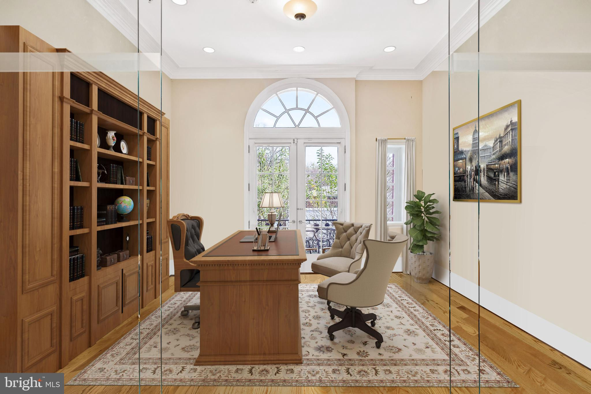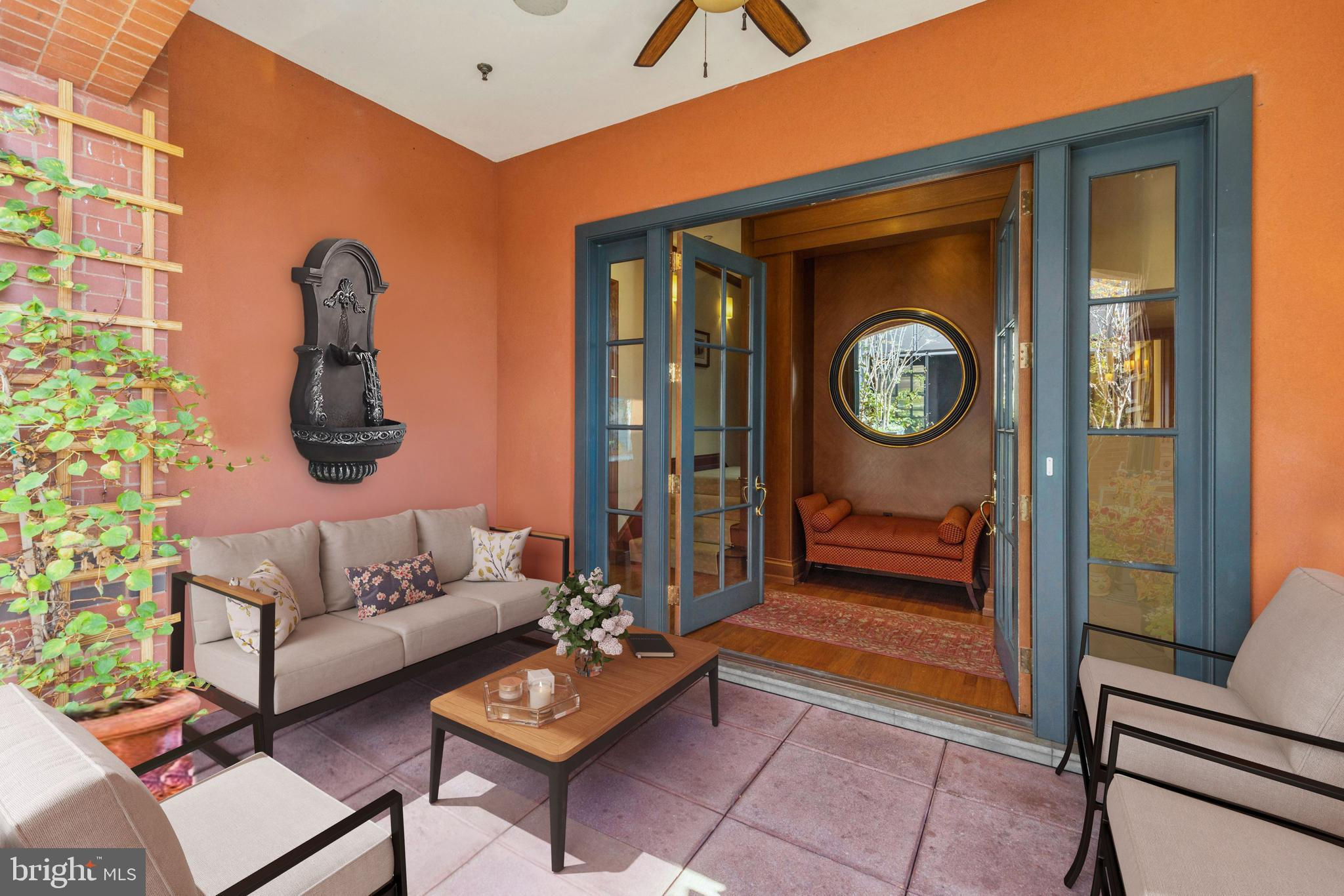 The James G. Blaine Mansion stands today as one of the most extraordinary offerings in all of Washington. A rare convergence of historical grandeur, residential elegance, and commercial versatility, it occupies a commanding position at the gateway to Embassy Row. This last-of-its-kind Gilded Age mansion comprises a 7,000-square-foot private residence atop more than 8,000 square feet of income-generating commercial office space — all within a storied structure steeped in provenance. Showcasing a seamless blend of timeless charm and modern functionality, the Mansion was meticulously renovated from 2006 to 2009. Two floors are configured for commercial or office use, two are dedicated to luxurious residential living, and the private rooftop spans the entire fifth level. Beneath it all lies a masterfully integrated, three-story underground garage accommodating 12 parking spaces — a rare amenity in this iconic location. Approaching via the grand porte-cochère over the original cobblestone drive offers a glimpse into the world of James G. Blaine and Washington’s high society of the 19th century. Ascending the stairs and entering through the double doors, one steps directly into history. The first and second floors currently serve as commercial office space, featuring more than 15 private offices, two full commercial kitchens, multiple conference rooms, and two private terraces — offering an unmatched level of flexibility. The residence, occupying the third and fourth floors, is accessed via a private elevator that opens into a double-height reception area. A paneled archway frames a dramatic rotunda, bathed in natural light from the overhead skylight. One of six fireplaces anchors the space, complemented by exquisite millwork — each detail a testament to the vision of noted Washington architect Benjamin A. Van Dusen. Throughout the home, scale and proportion are masterfully executed. A richly appointed library with extensive built-ins, two sunlit dens overlooking Dupont Circle, and embassy-sized formal living and dining rooms create an environment that is both grand and intimate. The chef’s kitchen is warm and functional, centered by a wood-burning fireplace and built-in breakfast nook. Premium appliances from Miele, Sub-Zero, and Wolf are integrated into custom wood cabinetry, set against elegant marble countertops. Whether hosting a 40-person seated dinner or a reception for 150, the residence is designed to accommodate. A secluded private terrace extends from the main level — partially covered for year-round use and featuring an integrated grilling station and tranquil water feature. A temperature-controlled wine cellar adds yet another layer of luxury. The upper residential floor, framed by the original mansard roof, serves as a private sanctuary. The primary suite features vaulted ceilings, dual dressing rooms, and two spa-inspired bathrooms. Additional bedrooms with en-suite baths are complemented by a sunlit office and a fitness room complete with sauna. Above it all, the rooftop level features a private 46-foot lap pool and outdoor kitchen, with sweeping panoramic views over Dupont Circle — a true urban oasis. Yet beneath the refinement lies a core of advanced infrastructure: seven HVAC zones, a comprehensive security system, Sonos sound throughout, and double-pane windows — with triple-pane in the primary suite. The historic Blaine Mansion is more than a home — it is a living monument to Washington’s past and a canvas for its future. Offering unmatched elegance, modern utility, and historical significance, this is a truly once-in-a-lifetime opportunity.