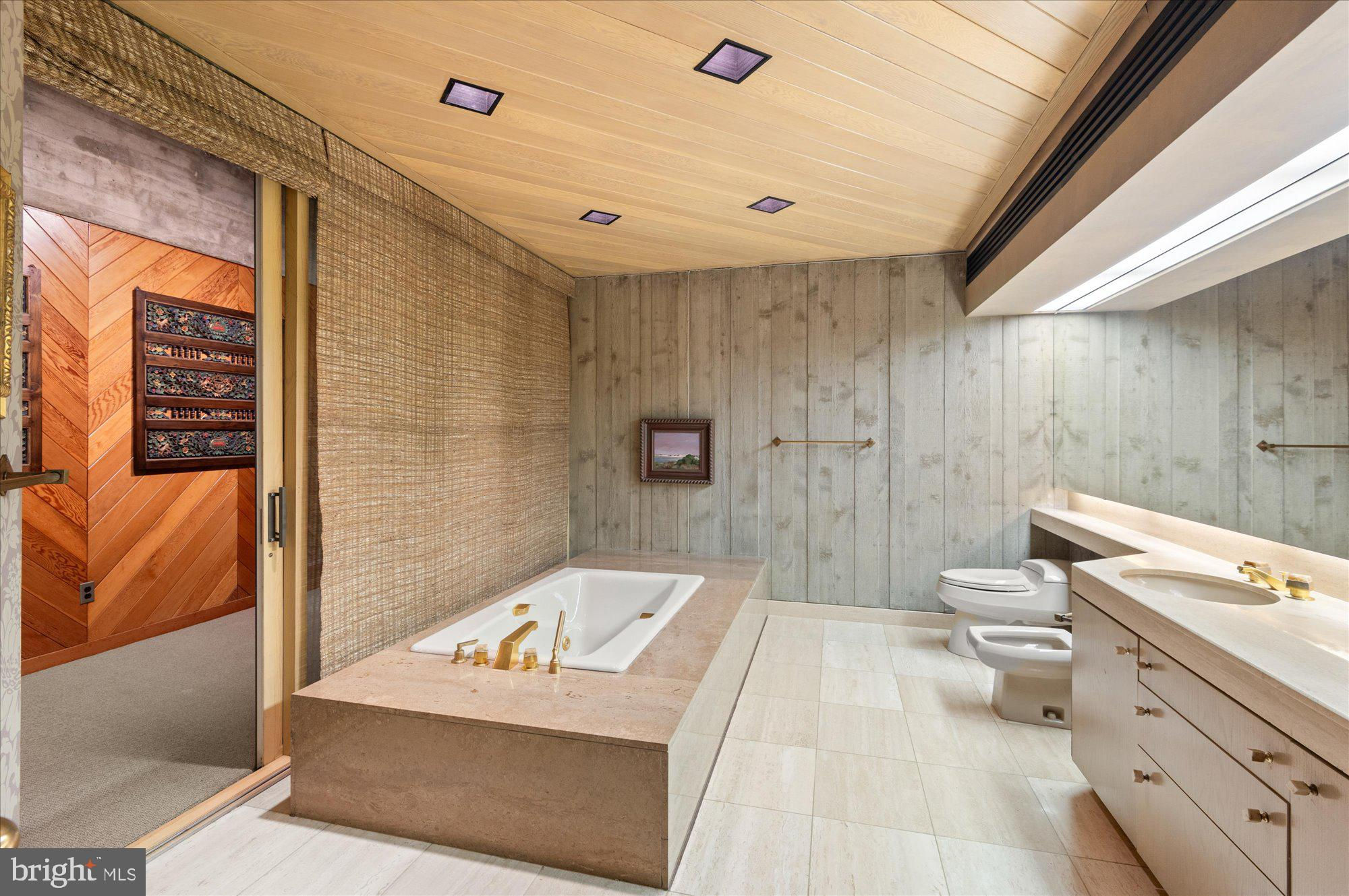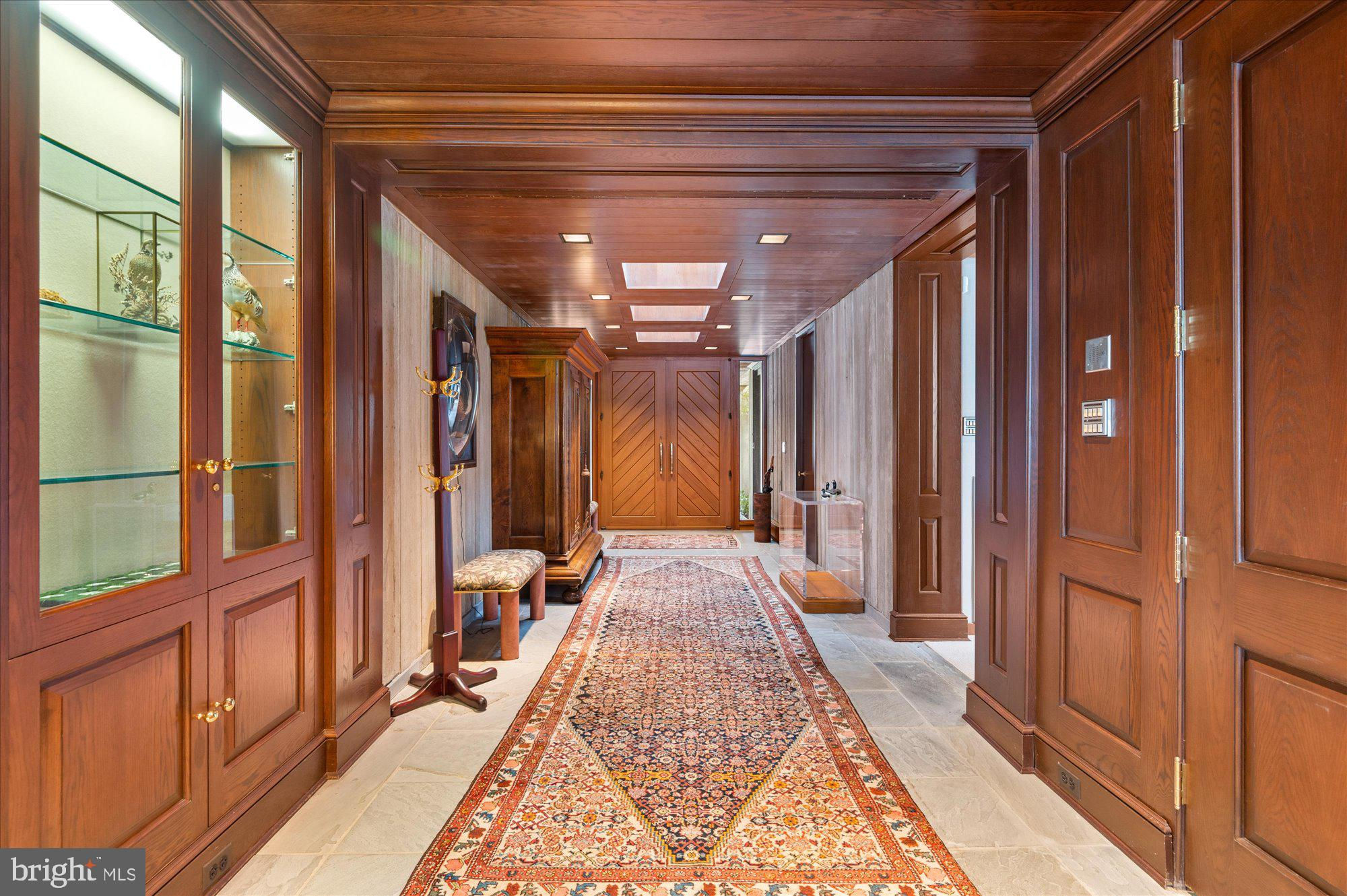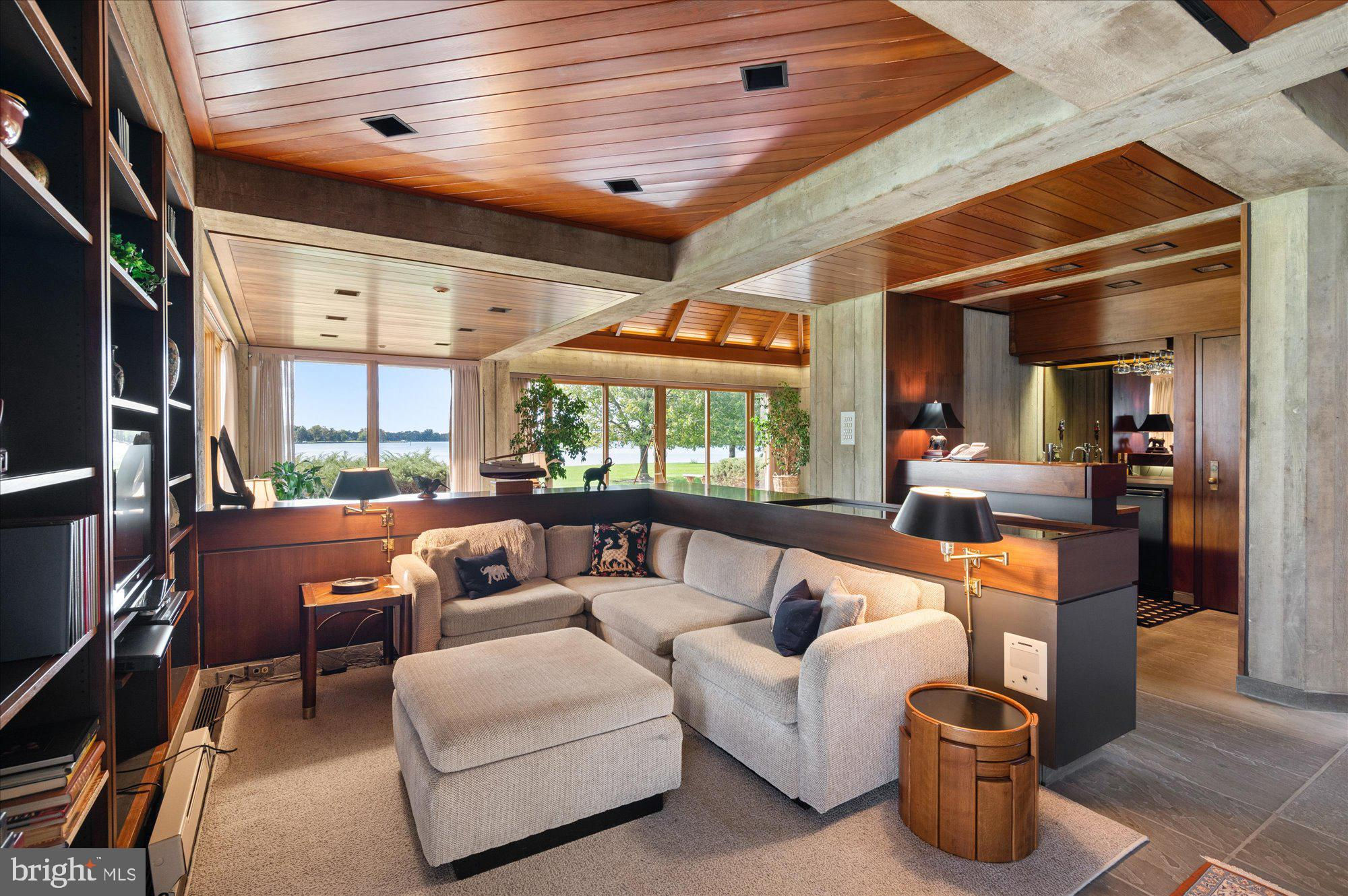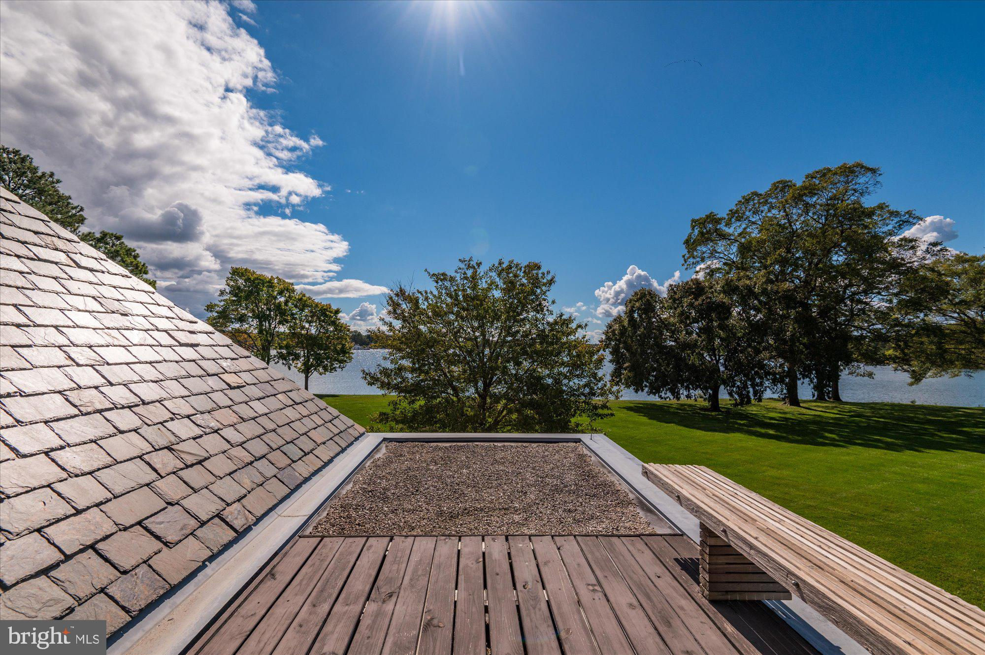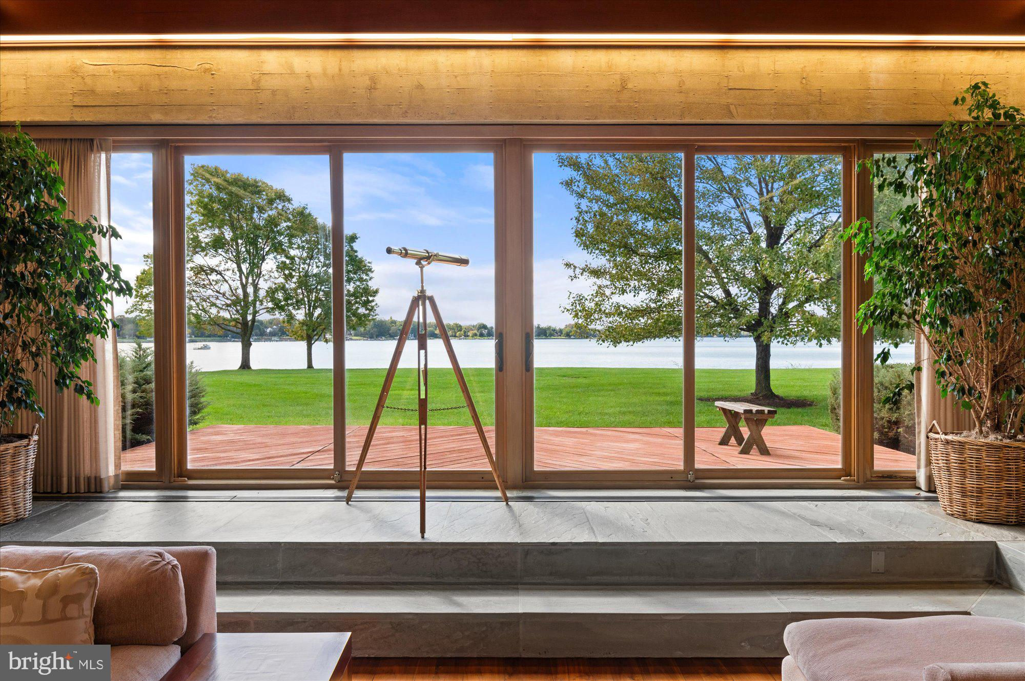 Welcome to Sunnyside, an exceptional and rare waterfront estate situated on a spectacular 16-acre point along the majestic Miles River. A picturesque, winding driveway leads to the one-of-a-kind contemporary home, built by A. James Clark for his family. Completed in 1978, Sunnyside was the culmination of a 3-year collaboration between the legendary builder and philanthropist, his son, architect Paul Clark, and prominent DC architect, John Henry Sullivan. Mr. Clark hand-picked every remarkable detail on the property, from the materials to the craftsmen, many of whom would later join him to form the iconic Clark Construction. Meticulously maintained over the years, the main house features floor-to-ceiling windows throughout offering stunning water views from every room. The thoughtfully designed layout of the main level easily accommodates both large and intimate gatherings. Highlights include a striking 24ft x 24ft sun-drenched atrium, an expansive main level primary bedroom suite complete with its own fitness room and sauna, 4 fireplaces, a living room with 20ft+ tall ceilings, a greenhouse, and a temperature-controlled wine room. The Great Room, the perfect spot for a casual gathering with friends and family, boasts striking custom woodwork throughout and incredible expansive western views of the property. The second-floor features three bright and sunny bedrooms, each with their own private bathroom, balcony, fireplace, heating systems, and distinctive views of the Miles River. The portico along the front of the home leads to an easily accessible, but completely private guest house with its own cozy living room, bedroom, full bath, fireplace, and kitchenette. Just outside the main house with idyllic garden and river views is the pool with its own full bath. The tennis court, livestock barn, and equipment barn are just a short stroll through the carefully designed and bucolic landscape. Resting on a point on the Miles River, Sunnyside boasts approximately 2000ft of waterfrontage, of which approximately 1550ft is riprapped. A 135ft deep-water pier (approx. 6 ft MLW) offers 2 boat lifts. Less than 10 minutes to Downtown Easton and just a short boat ride (or less than 15 minutes by car) to St. Michaels, legendary Sunnyside proudly sits at the heart of Maryland’s Eastern Shore.