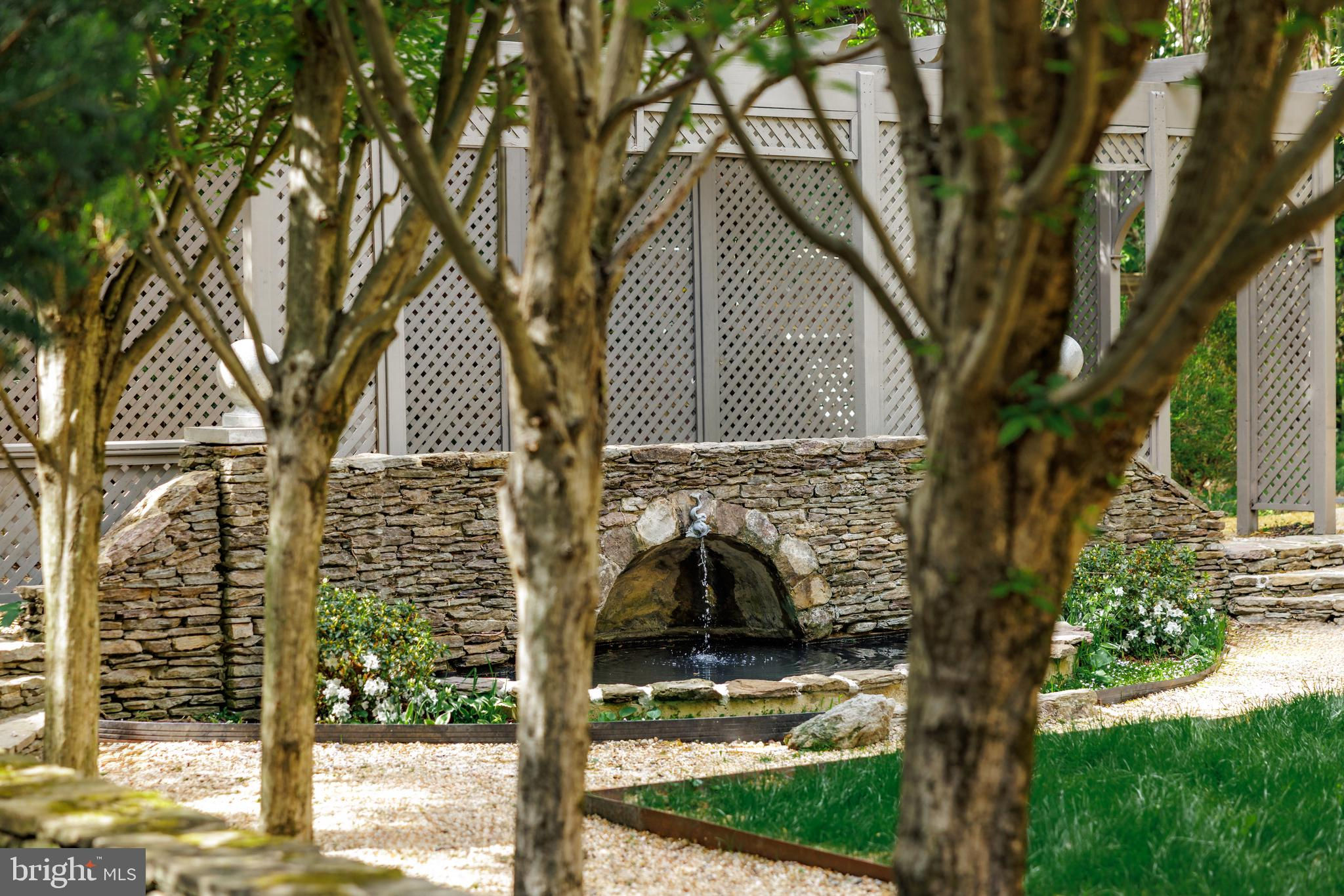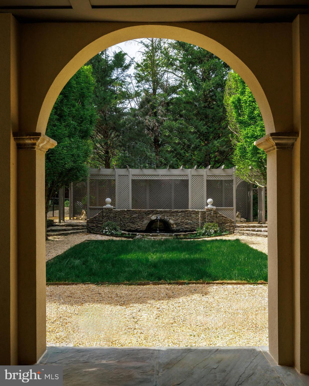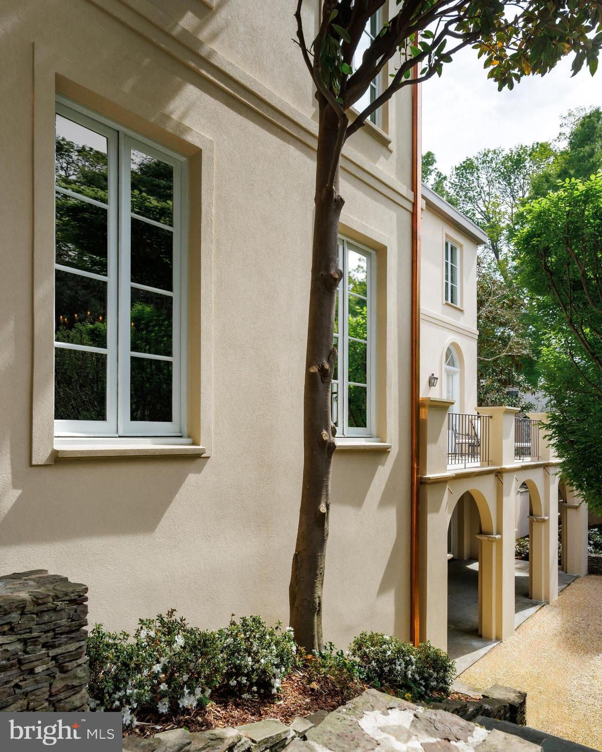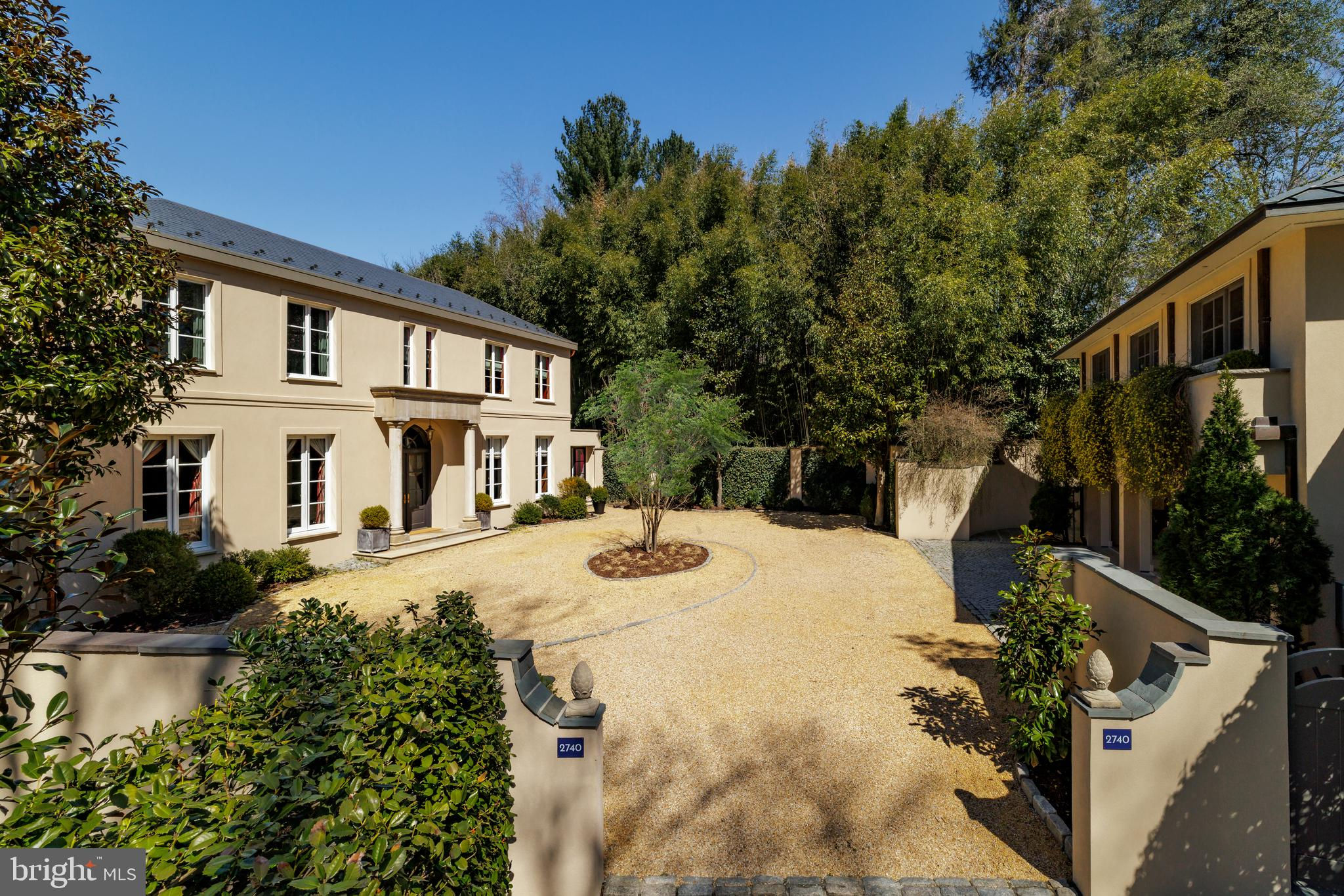 Branching off the prestigious Chain Bridge Road NW is a hidden private drive. The hedge-lined path meanders through verdant foliage to reveal a walled, circular pea gravel motor court upon which sits an elegant estate home. Evoking cues from the most vaunted European country homes – part Tuscan villa and part French provincial – the estate was created from the ground up by its visionary owner-developer. Constructed out of cinder block with thick walls and a recently refinished triple-coat stucco exterior, the home is a true fortress of luxury. Stepping beneath the lofty portico and through arched double doors reveals the grand gallery, spanning the entire depth of the home. Hand-painted in a striking faux green finish by British artist Malcolm Robson to complement refinished herringbone floors, it sets the tone for the formal spaces. Soaring 11-foot ceilings, 8-foot solid mahogany doors, and elaborate P.E. Guérin hardware — including custom windows with crémone fittings — are testaments to the level of detail throughout. The formal living room boasts custom plaster crown molding and an 18th-century French limestone fireplace mantle. Spanning 32 feet, it opens onto the rear terrace via twin sets of French doors. A 19th-century French marble fireplace mantle anchors the formal dining room, enhanced by mahogany paneling and Braquenié curtains in the La Rivière Enchantée pattern. Recently expanded, the chef’s kitchen is divided into prep and cooking areas: one traditional, the other contemporary. Viking, Sub-Zero, Miele, and Gaggenau appliances represent top-of-the-line offerings, including six burners. A mahogany breakfast room completes the main level. A vestibule leads to the upper-level primary wing. The bedroom features a raised pearl white ceiling and 18th-century Braquenié Le Grand Génois floral-patterned padded walls. The bath offers checkered marble floors, dual vanities, a jetted soaking tub, walk-in shower, and separate water closet. A wraparound dressing room with built-ins and track lighting completes the suite. Two additional ensuite bedrooms are uniquely styled. The large lower-level recreation room opens through three sets of French doors to a parklike rear lawn. The exterior features a covered flagstone terrace, central lawn, al fresco dining area, and a custom stone pond set against a pergola with lattice fencing. Privacy is enhanced by a bamboo enclosure. A fourth bedroom with kitchenette and full bath can serve as a suite, with laundry and storage nearby. HVAC systems include a 2023 Carrier unit for the main and lower levels, and a heat pump for the upper level. The hot water heater was replaced in 2024. A central vacuum system and new main-level glazing further enhance comfort. Across the motor court is a separate carriage house with an inlaid cobblestone entrance, three-car garage, workshop, storage space, and trash room. Upstairs, the guest suite includes a kitchenette, full bath, living area, washer/dryer, dedicated HVAC, and private terrace. Passionately designed, meticulously crafted, and situated in one of Washington’s most coveted enclaves, 2740 Chain Bridge Road NW is more than an estate — it is a masterwork of timeless European elegance and enduring architectural integrity. Rarely does a residence so completely embody privacy, provenance, and purpose. This is a home for the discerning few — a legacy property that will continue to inspire for generations to come.