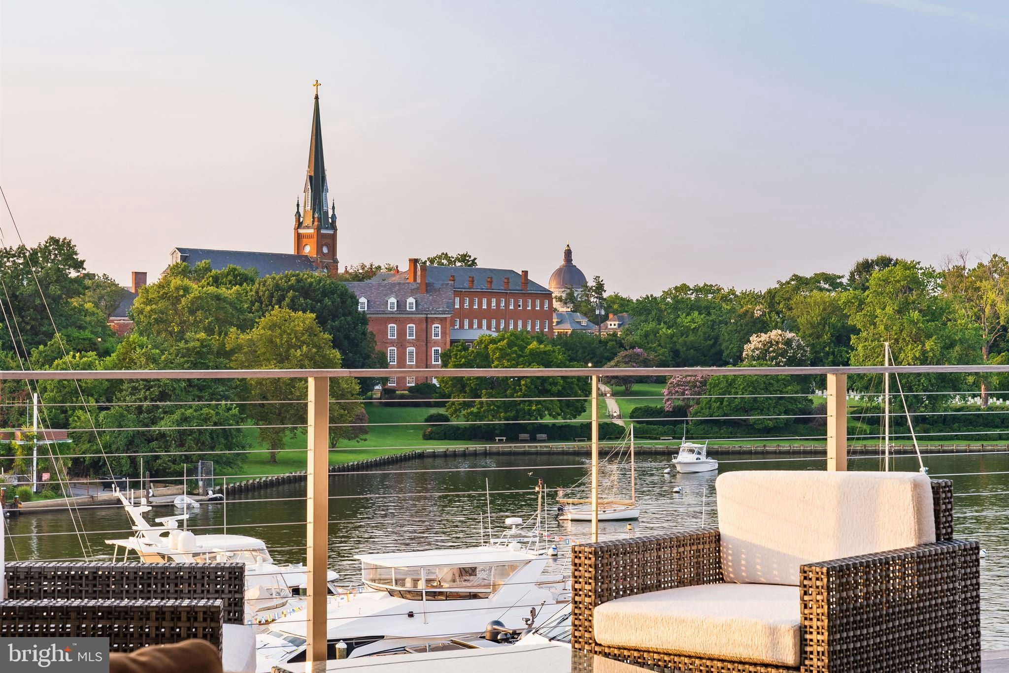 Enjoy Luxury Living on Spa Creek. This is the perfect property for those who seek a serene backdrop to an extraordinary life. With exclusivity and serenity, the Penthouse with 2 guest suites at South Annapolis Yacht Centre Residences combines premier waterfront living with spectacular design that is both timeless and modern. Enjoy breathtaking views of Spa Creek, the Annapolis Harbor and the historic skyline of downtown Annapolis from almost every room and the multiple exterior decks. This property encompasses the stunning Penthouse condo with 3 bedrooms, 2.5 baths and includes 2 guest suites with full baths on the ground level. The guest suites feature waterviews, expansive exterior deck, walls of windows and open floor plans. The suites could be adjoined or used in whatever manner suits your needs. Currently utilized as a gym and a lounge/office space. A balanced combination of clean, modern materials invites natural light to flow through each of the 3 units and the curated finishes are exquisite including polished Cristallo Quartzite slabs in the gourmet kitchen with integrated sink and stunning Waterstone faucet, La Cornue Chateau range with custom hood, marble slabs and vanities in bathrooms, exquisite custom tile, and top of the line Toto toilets just to name a few. The South Annapolis Yacht Centre provides an elegant boutique lifestyle in a marina village setting comprised of 11 Residences and a full-service marina. SAYC is part of the rich Annapolis maritime heritage with 74 new deep water slips (12ft MLW+) to accommodate boats up to 140ft, extensive electrical supply options, waterfront boardwalk, travel lift & direct access to essential marine services. Enjoy the Eastport Lifestyle. Stroll the artful and nautical streets to amenities like; restaurants, pubs and street-end parks. Not to mention you are merely steps away from downtown Annapolis and Naval Academy attractions. Each Residence features waterfront decks & terraces, the perfect outdoor setting for dining al fresco and enjoying glorious sunsets over Spa Creek. Truly an ideal setting for watching the Blue Angels, 4th of July fireworks and the Parade of Lights. Absolutely the best Annapolis has to offer! From this location, you are close to some of the Bay's best cruising and fishing areas. Attractive destinations such as Baltimore's Inner Harbor, St. Michael's, Oxford, and Solomon's Island are only a short cruise away. The historic 18th-century seaport town of Annapolis, Maryland is America's sailing capital. Annapolis offers the perfect balance of small-town charm and big world sophistication. Come home to your Haven! The South Annapolis Yacht Center is located just 5 miles to Rt. 50 and 97 which provides direct access to Baltimore, BWI, Ft.Meade/NSA and Washington, DC. Welcome Home!