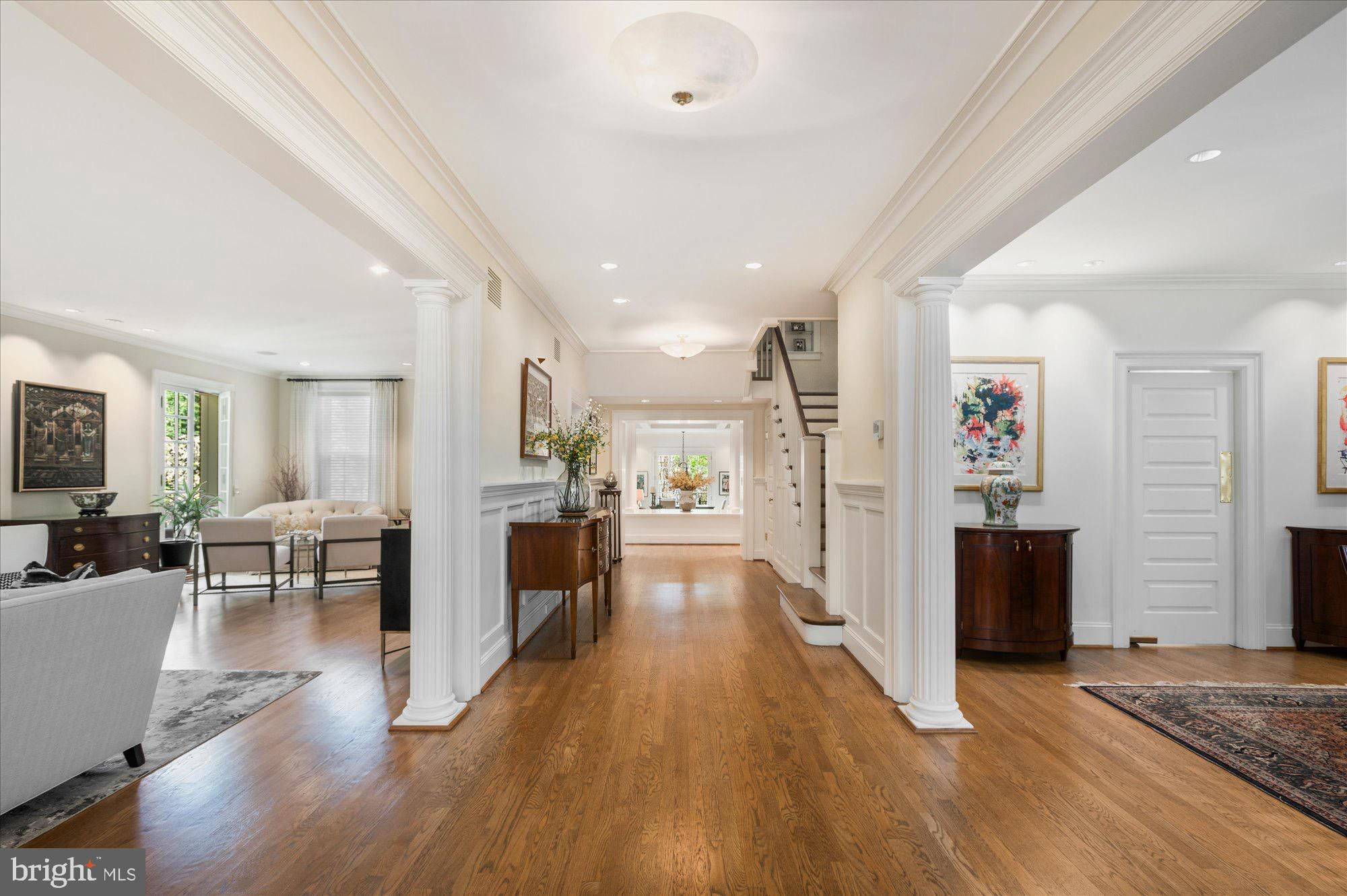 Located on almost half an acre in historic Cleveland Park, this 7,700 square foot, 1917 Georgian colonial was completely reimagined in 2004 by Jeff Haines and executed by Horizon‘s Housework’s. Generously proportioned and meticulously maintained, this six bedroom, 4 full and 2 half bath elegant residence is ready for its next owner. Excellent kitchen/family room combination, private side porch, rear terrace, lower level loggia, pool, hot tub, cabana bath, two-car garage, and its own stream. Revel in the neighborhood amenities of Wisconsin Avenue and the restaurants of Cathedral Commons. Frolic in Rosedale Conservancy with friends and pets. Crack the bat at Macomb Playground. Enjoy carefree play in the Newark Community Gardens. Convenient to the educational facilities of the National Cathedral School, St. Albans School, Beauvoir National Cathedral Elementary School, Maret, Sidwell Friends School and the premier nursery school, National Children’s Research Center. Walk to the Cleveland Park Metro and the National Zoo. Quick access to Reagan National and a short ride to Dulles International. Showings are by appointment. Financial screening is required.