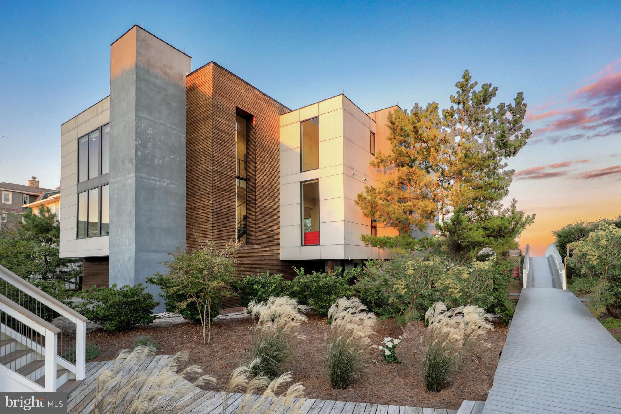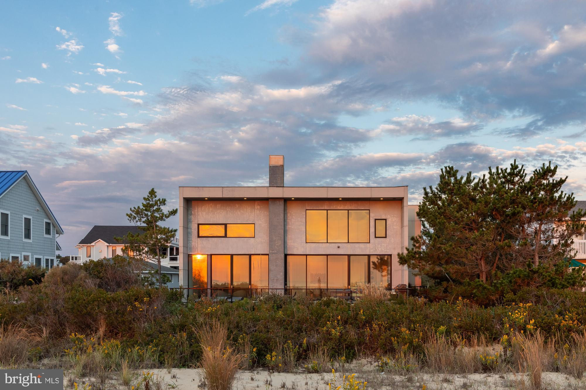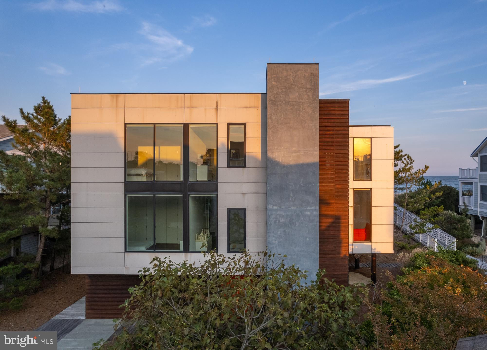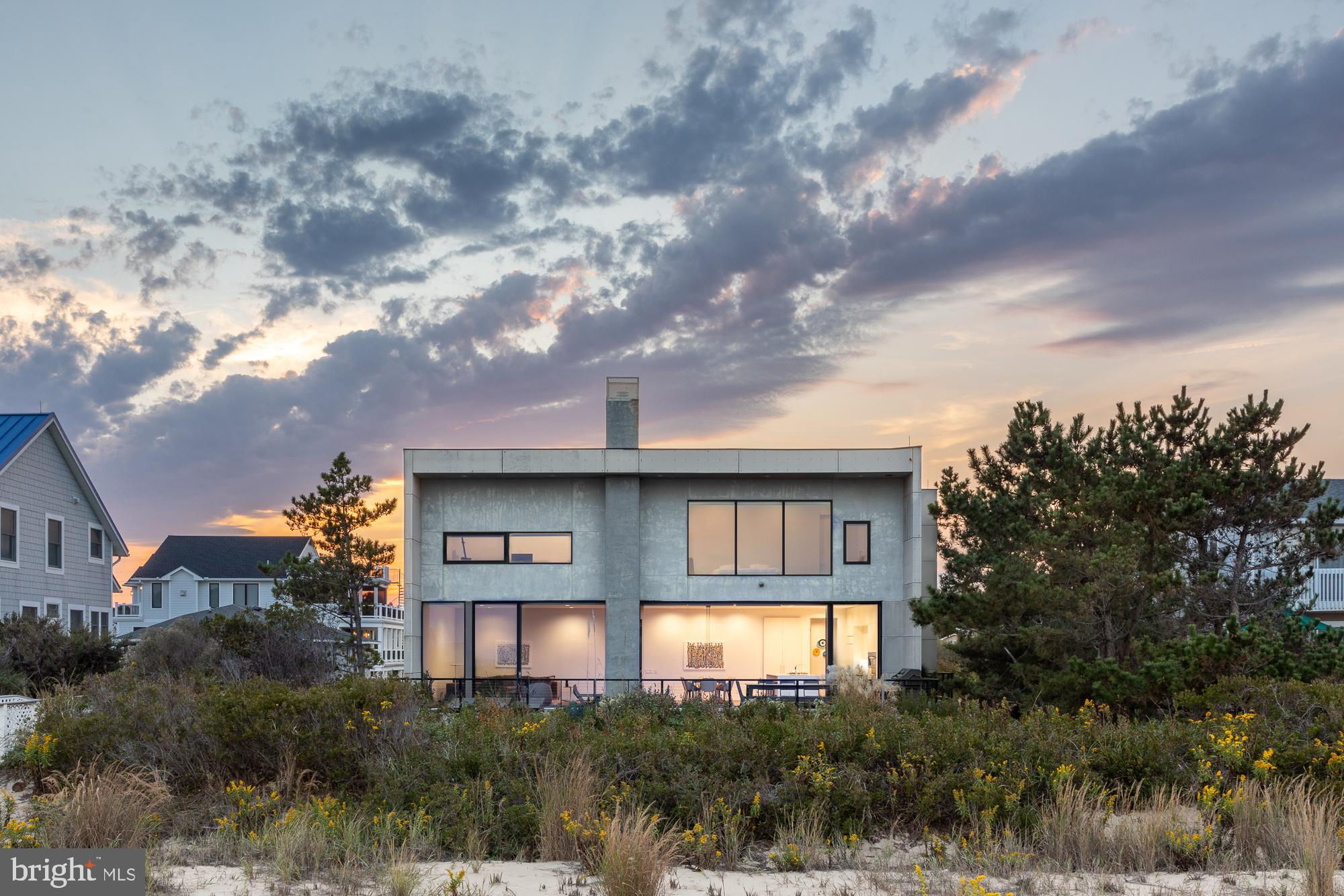 Introducing a modern architectural marvel, nestled within serene North Bethany Beach dunes, masterfully designed by the acclaimed architect Robert Gurney, FAIA. This residence effortlessly blends innovative design with the natural beauty of its surroundings. The property boasts six bedrooms plus a den, three full bathrooms, and a half bathroom, offering ample space for contemporary beachfront living. The minimalist aesthetic of the home is both intentional and striking. The exterior features a harmonious blend of fiber cement board, stucco, and wood, while the interior is finished with reclaimed walnut flooring and crisp white painted millwork. The detailing throughout is meticulously executed, creating a sense of refined simplicity that perfectly complements the expansive views of the Atlantic Ocean. The kitchen is a chef's dream, outfitted with flat panel white cabinets and state-of-the-art Miele appliances, including a built-in coffee machine for your morning brew. The fixtures throughout the home are of the highest quality, featuring Hans Grohe and Graff Designs, ensuring every touchpoint is a luxurious experience. Designed to hover gracefully above the dunes, the home offers unobstructed views of the Atlantic, allowing you to fully immerse yourself in the tranquil surroundings. Wood slats on the south side and lower levels invite gentle sea breezes into the home, while the innovative design of the west-facing stairwell allows light to filter through without overwhelming the space with harsh sunlight. The home was constructed using twenty-two existing pilings with the addition of eight new, in order to expand the building envelope all while maintaining the DNREC requirements. A marvel which cannot be constructed by today's standards and regulations. This property is more than just a home; it’s a sensory experience where the seamless interaction between indoor and outdoor living takes center stage. A rare opportunity to own a residence that is as much a work of art as it is a sanctuary, offering unparalleled ocean views, sophisticated design, and a deep connection to the natural environment.