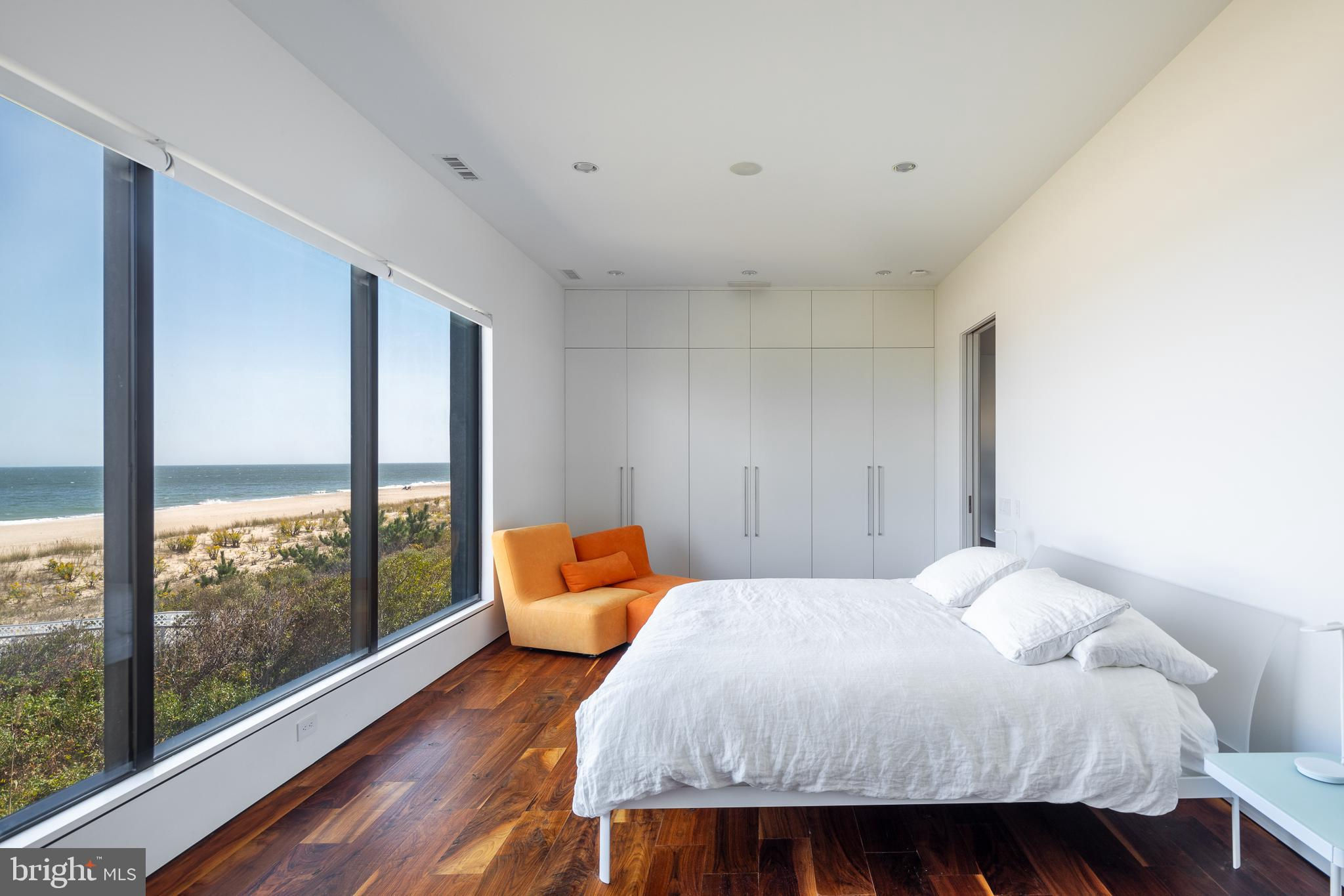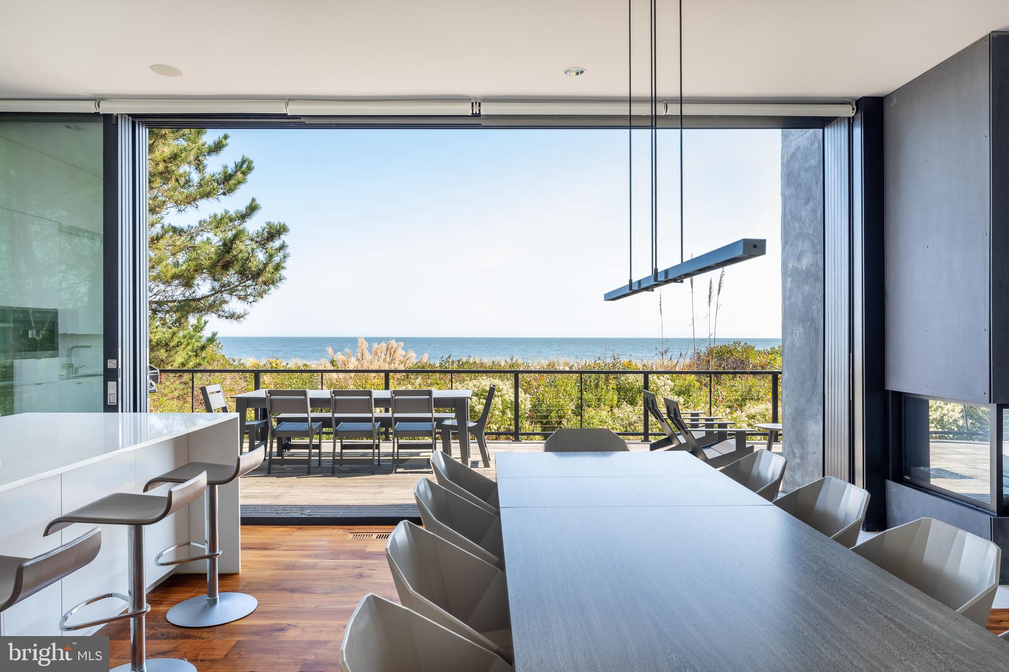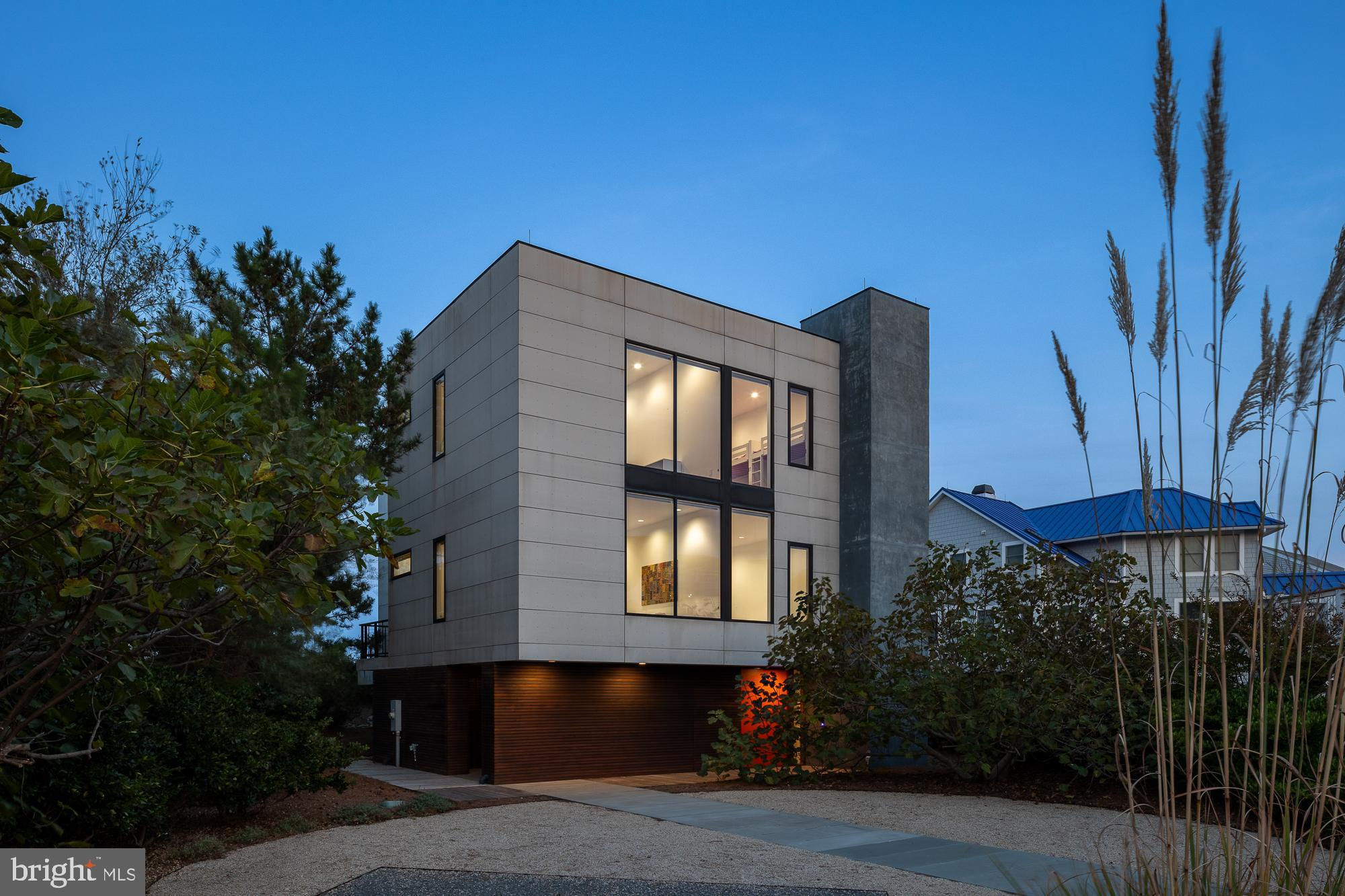 Introducing a modern architectural marvel, nestled within serene North Bethany Beach dunes, masterfully designed by the acclaimed architect Robert Gurney, FAIA. This residence effortlessly blends innovative design with the natural beauty of its surroundings. The property boasts six bedrooms plus a den, three full bathrooms, and a half bathroom, offering ample space for contemporary beachfront living. The minimalist aesthetic of the home is both intentional and striking. The exterior features a harmonious blend of fiber cement board, stucco, and wood, while the interior is finished with reclaimed walnut flooring and crisp white painted millwork. The detailing throughout is meticulously executed, creating a sense of refined simplicity that perfectly complements the expansive views of the Atlantic Ocean. The kitchen is a chef's dream, outfitted with flat panel white cabinets and state-of-the-art Miele appliances, including a built-in coffee machine for your morning brew. The fixtures throughout the home are of the highest quality, featuring Hans Grohe and Graff Designs, ensuring every touchpoint is a luxurious experience. Designed to hover gracefully above the dunes, the home offers unobstructed views of the Atlantic, allowing you to fully immerse yourself in the tranquil surroundings. Wood slats on the south side and lower levels invite gentle sea breezes into the home, while the innovative design of the west-facing stairwell allows light to filter through without overwhelming the space with harsh sunlight. The home was constructed using twenty-two existing pilings with the addition of eight new, in order to expand the building envelope all while maintaining the DNREC requirements. A marvel which cannot be constructed by today's standards and regulations. This property is more than just a home; it’s a sensory experience where the seamless interaction between indoor and outdoor living takes center stage. A rare opportunity to own a residence that is as much a work of art as it is a sanctuary, offering unparalleled ocean views, sophisticated design, and a deep connection to the natural environment.