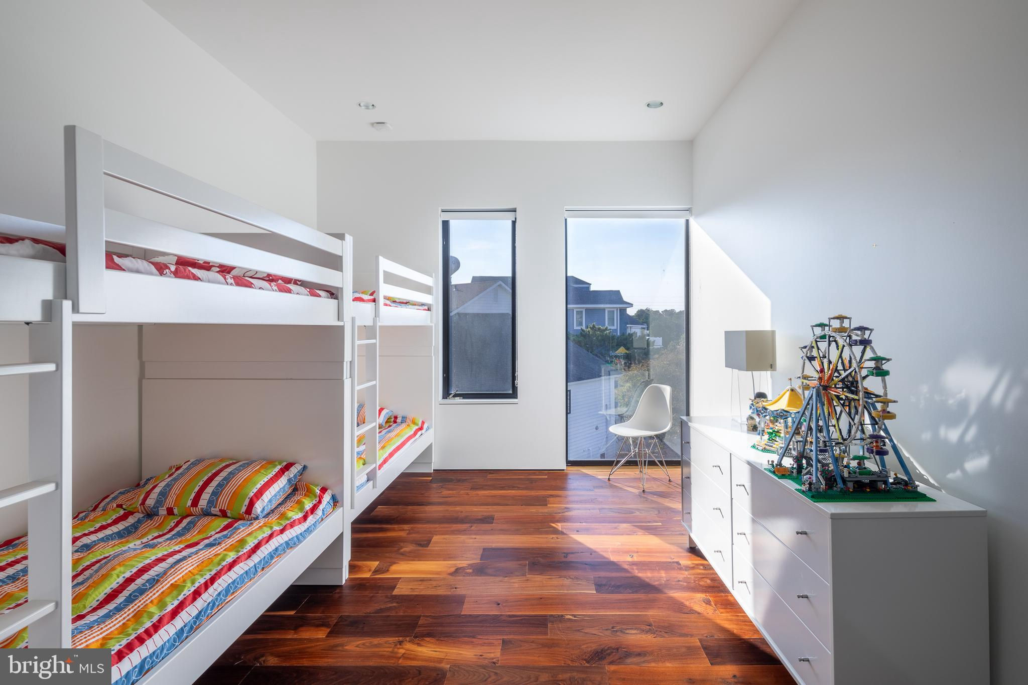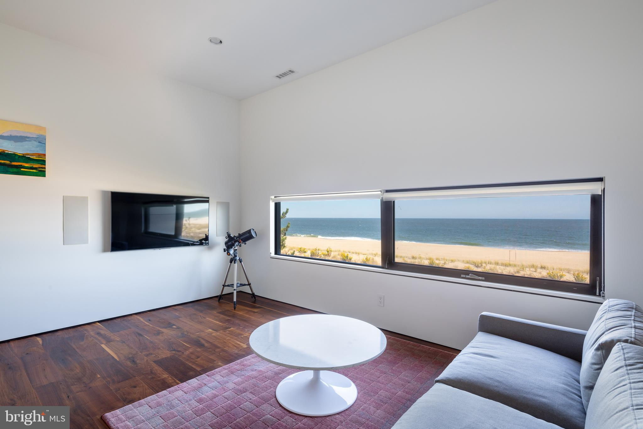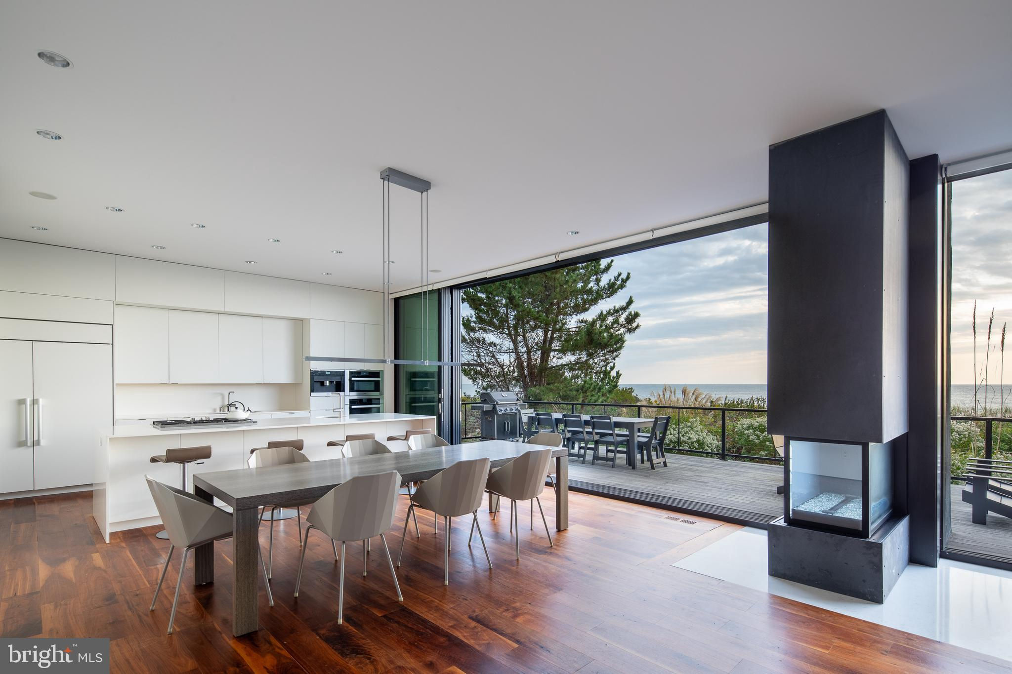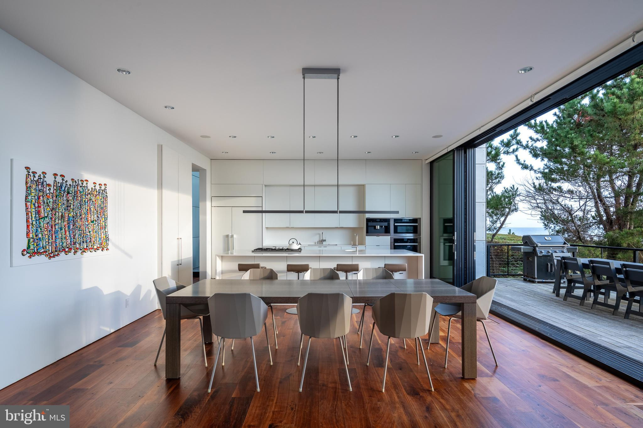 Introducing a modern architectural marvel, nestled within serene North Bethany Beach dunes, masterfully designed by the acclaimed architect Robert Gurney, FAIA. This residence effortlessly blends innovative design with the natural beauty of its surroundings. The property boasts six bedrooms plus a den, three full bathrooms, and a half bathroom, offering ample space for contemporary beachfront living. The minimalist aesthetic of the home is both intentional and striking. The exterior features a harmonious blend of fiber cement board, stucco, and wood, while the interior is finished with reclaimed walnut flooring and crisp white painted millwork. The detailing throughout is meticulously executed, creating a sense of refined simplicity that perfectly complements the expansive views of the Atlantic Ocean. The kitchen is a chef's dream, outfitted with flat panel white cabinets and state-of-the-art Miele appliances, including a built-in coffee machine for your morning brew. The fixtures throughout the home are of the highest quality, featuring Hans Grohe and Graff Designs, ensuring every touchpoint is a luxurious experience. Designed to hover gracefully above the dunes, the home offers unobstructed views of the Atlantic, allowing you to fully immerse yourself in the tranquil surroundings. Wood slats on the south side and lower levels invite gentle sea breezes into the home, while the innovative design of the west-facing stairwell allows light to filter through without overwhelming the space with harsh sunlight. The home was constructed using twenty-two existing pilings with the addition of eight new, in order to expand the building envelope all while maintaining the DNREC requirements. A marvel which cannot be constructed by today's standards and regulations. This property is more than just a home; it’s a sensory experience where the seamless interaction between indoor and outdoor living takes center stage. A rare opportunity to own a residence that is as much a work of art as it is a sanctuary, offering unparalleled ocean views, sophisticated design, and a deep connection to the natural environment.