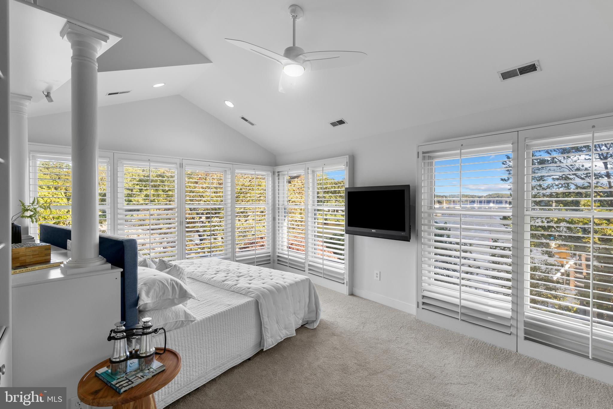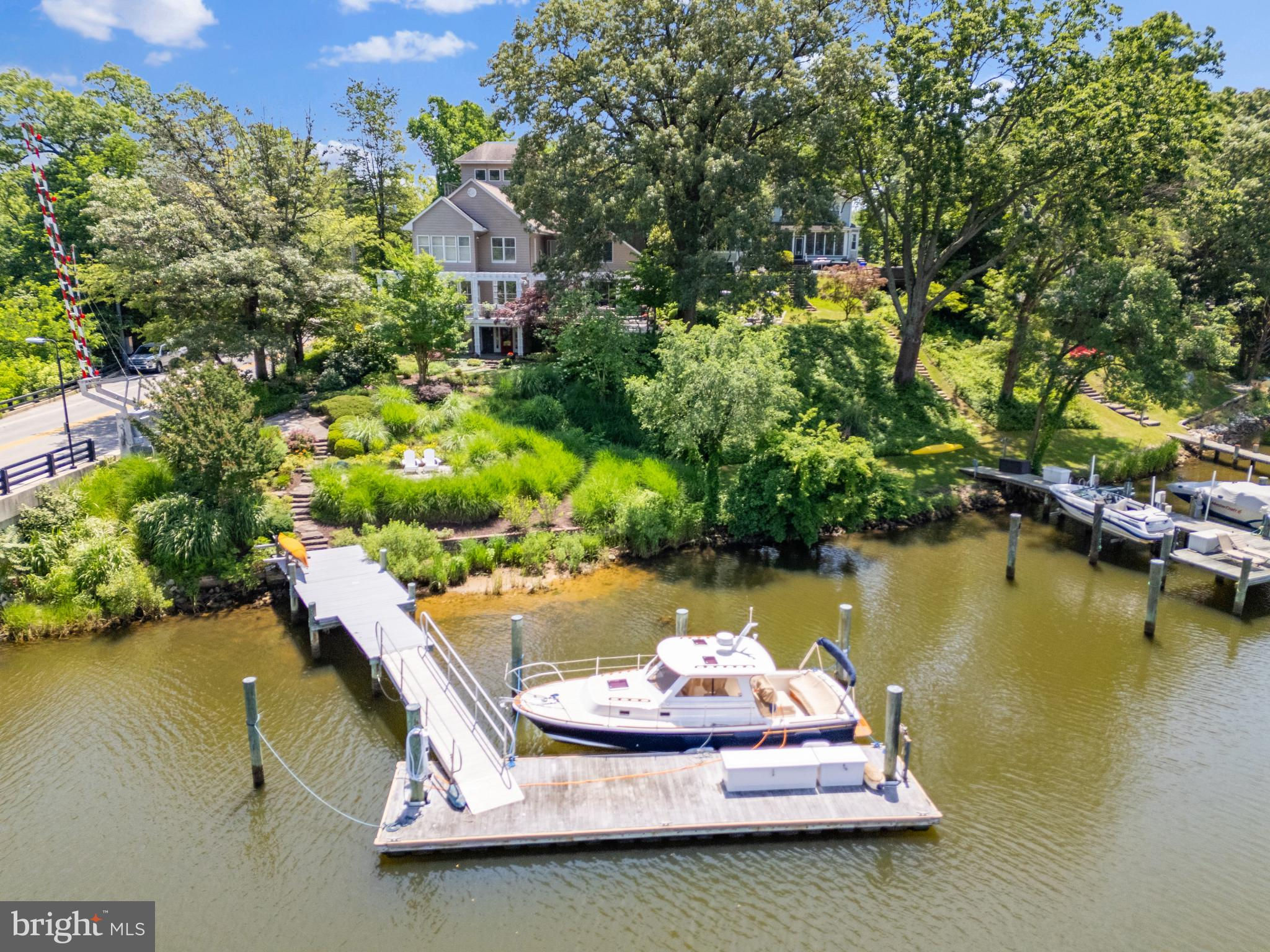 Coveted West Annapolis Waterfront property with deep water floating dock! Recently updated with fresh paint, refinished floors and new carpeting throughout. Experience elegance and grace in this stunning 4 story home that is sure to captivate. The contemporary architecture and voluminous spaces mixed with traditional finishes and floor plan creates a wonderful combination. Upon entry, the soaring foyer is awe-inspiring and the elegant living room, with built-in bar, sets the tone. With 3 custom bars and multiple gathering areas, this home is perfect for entertaining. The gourmet kitchen is a chef's dream, featuring a large island and top-of-the-line finishes and breakfast nook, which flows seamlessly into the spacious family room with walls of windows overlooking Weems Creek. The adjacent library/den boasts mahogany built-ins and flooring, gas fireplace and views; a perfect place to curl up with a book. This home offers three ensuite bedrooms for ultimate comfort and privacy. The master bedroom is a sanctuary with a vaulted ceiling, custom built-ins, enormous walk in closet for 2 and the best views in the house. Wake up every morning and enjoy the activity on the sparkling waters of the creek and the Severn River. The spacious guest room suite with glass breezeway from the main house boasts an elevator directly into the room, creating a truly private oasis for guests and family. This floor also includes an additional bedroom or theater room with adjacent hall bath; providing flexible living options. The fourth floor features a unique bird's nest with elevator access and a wrap-around deck offering panoramic views of Weems Creek and the Severn River. With three elevators throughout the house, accessibility to all four levels is effortless. The exquisite sunroom with folding glass doors epitomizes indoor/outdoor living. Simply open 2 sides of the room to the outdoors and let the party flow onto the sprawling rear deck. The wrap-around IPE deck and multiple level seating areas are ideal for taking in the incredible views from every vista. The lush landscaping and stone stairs lead to the water's edge and the private pier with deep-water floating dock with multiple slips can accommodate a 50ft yacht. Be sure to not miss the stone patio on the way down; ideal for relaxing as the sun sets. This property truly captures the essence of waterfront living by blending luxury and comfort in an unparalleled setting. Welcome Home!