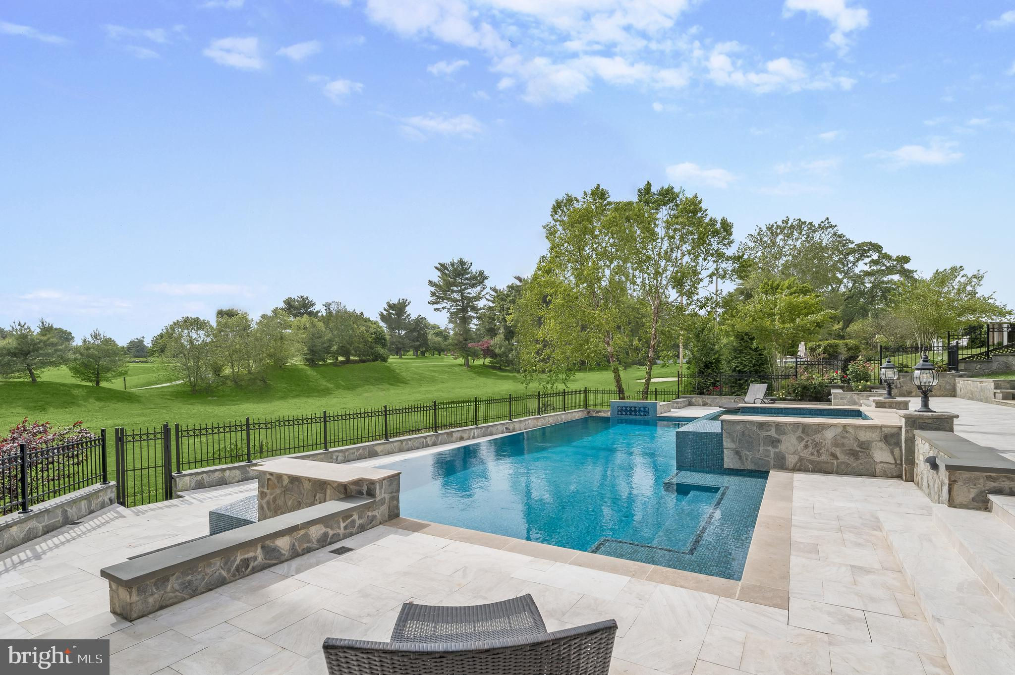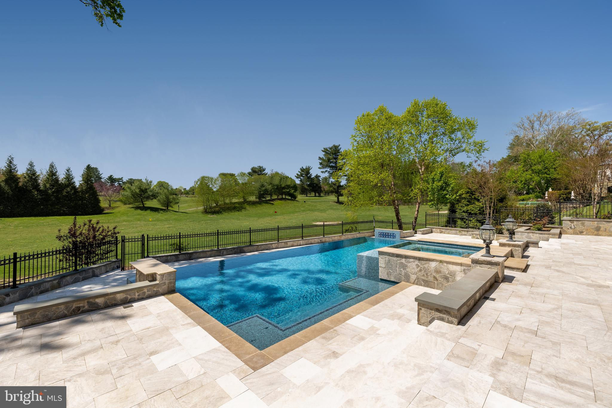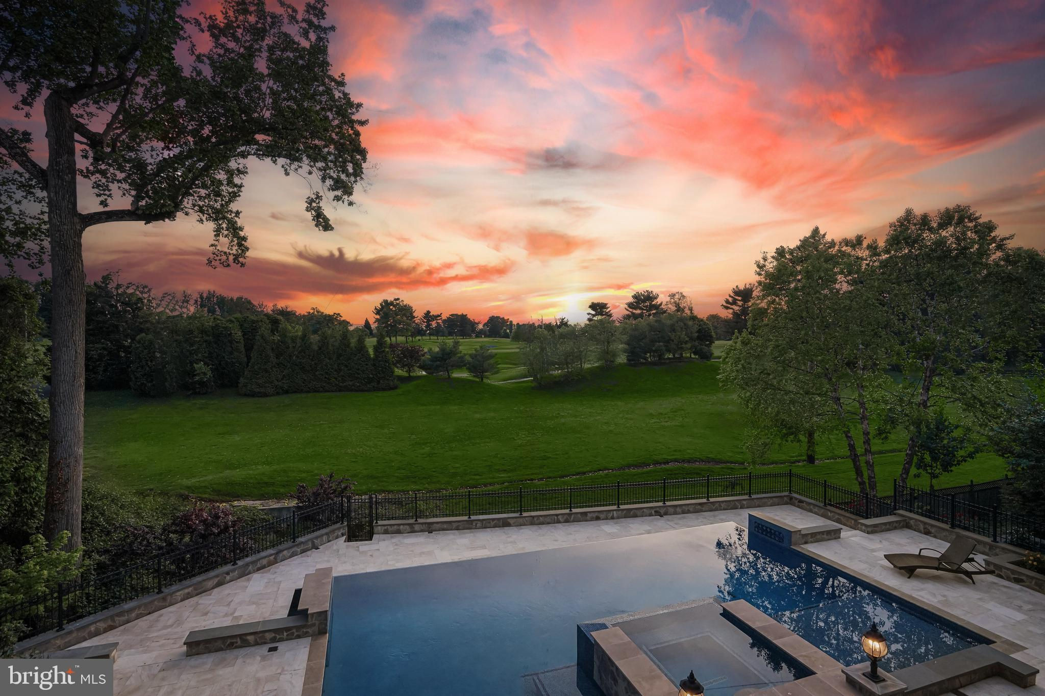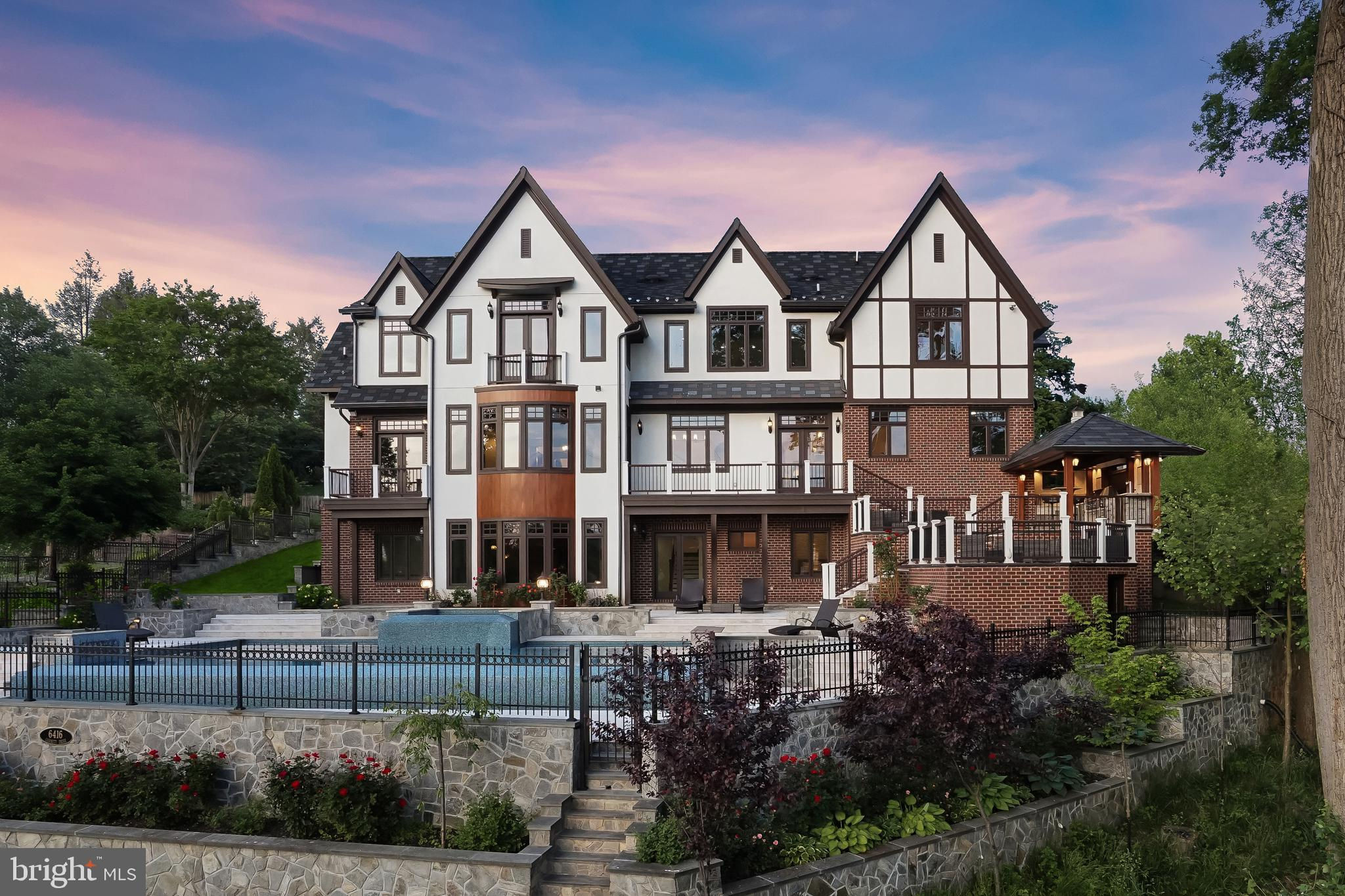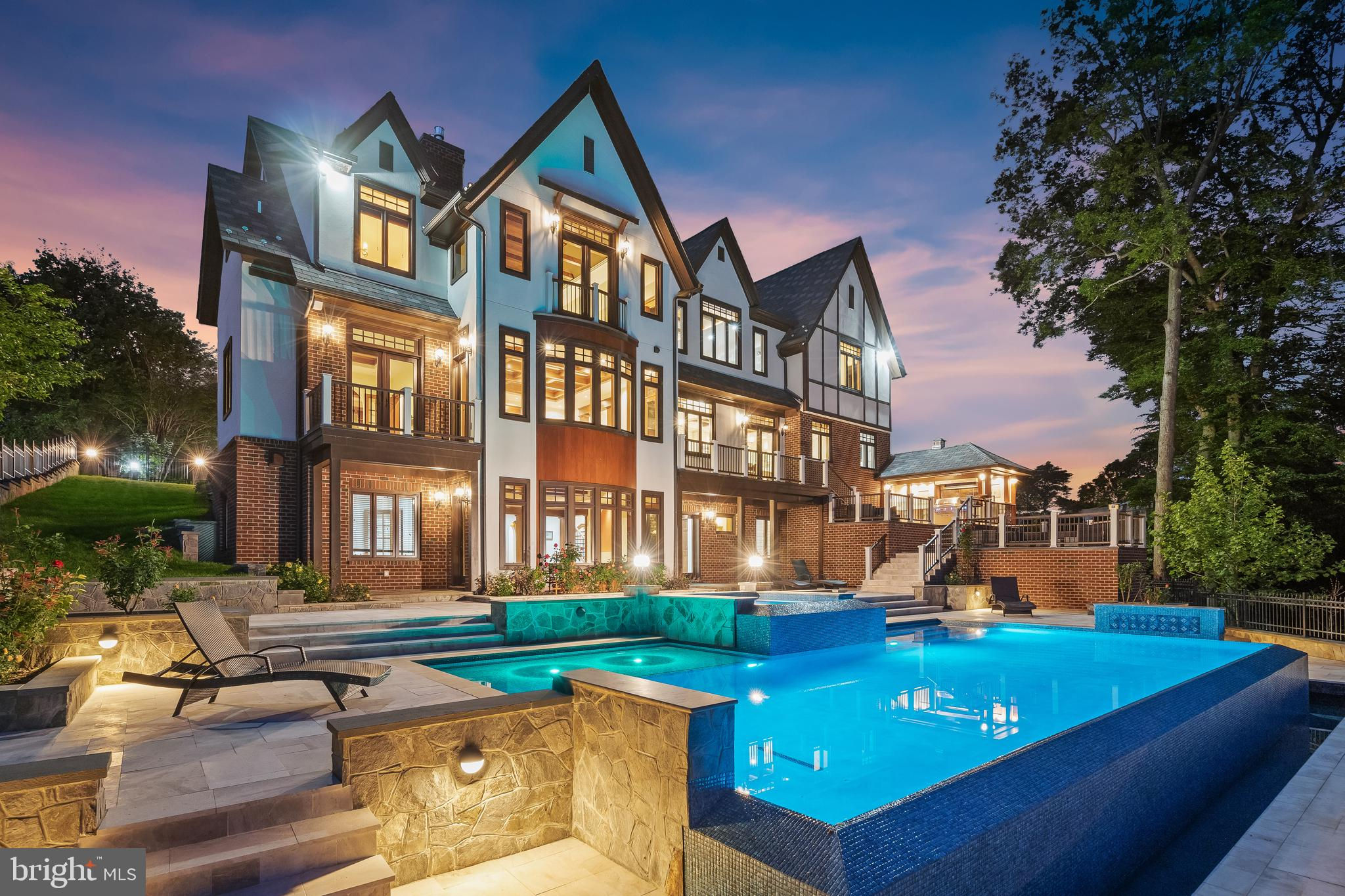 6416 Garnett Drive, is a spectacular, newly constructed Tudor estate backing to whimsical rolling golf course vistas and enchanting sunsets. Fully custom designed from the ground up, the home features 8,500 square feet of exquisite living space comprising the finest in materials and workmanship spread across a floor plan equally apt at accommodating large scale entertaining as well as casual contemporary lifestyles. A fully gated entrance embellished with decorative, lighted stone pillars reveals beautifully planted gardens with a profusion of colorful flowering specimens. The paver driveway connects to an attached two car garage and adjoins a flagstone walkway leading to the main entrance. An artfully arched solid wooden entry door reveals an elegant reception vestibule, around which formal living and dining rooms are arranged in a classic center hall configuration. The former revolves around a roaring gas fireplace, while the latter’s resplendent curved wall of windows brings in copious amounts of natural light reflecting off the twinkling crystal chandelier. Throughout the home, exquisite millwork complements the wide plank oak floor, covering moldings, baseboards, window trim, and intricate ceilings. As is exemplary in the chef’s kitchen with custom cabinetry, whose coffered ceiling is a focal point. Stacked cabinetry, a contrasting center island with integrated bar seating, commercial grade SubZero and Wolf appliances, and double glass doors leading directly onto the rear terrace establish this space as the heart of the home. The adjacent breakfast area features an integrated bench with sweeping views beyond, shared by the large family room with coffered ceiling and a wall of windows. A two-sided linear fireplace connects the space to an adjoining study, offering a tranquil retreat with private outdoor access. An upper level sitting area serves as a cozy gathering space. Branching off the space, through a set of double leather-bound doors, is the sumptuous primary suite. A raised beamed ceiling, chic linear fireplace, and private balcony overlooking the golf course complement the ubiquitous spa-inspired bath and commodious dressing rooms to establish a home within a home. Six additional secondary bedrooms are all generously proportioned and feature ensuite baths. The ethereal lower level sits above ground, allowing the entry of natural light. An entertainer’s delight, the space is amenity-rich with a full wet bar, fitness center, and professional media room. The home’s outdoor spaces are its true showstopping feature. The rear terrace spans multiple levels and houses a fully equipped, covered outdoor kitchen with top of the line appliances to accommodate al fresco entertaining on the grandest of scales. It descends down to a splendid limestone patio with multiple locations for loungers. The infinity pool is the pièce de résistance, offering glorious, unparalleled views reflected in its shimmer and a bubbling adjoining hot tub. With unrivaled views and situated on one of Kenwood’s most premium lots, 6416 Garnett Drive offers a one-of-a-kind blend of luxury and modern livability in one of the Capital Region’s most sought-after locations.