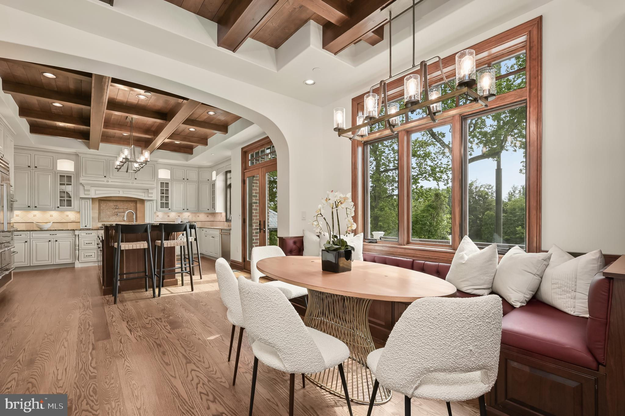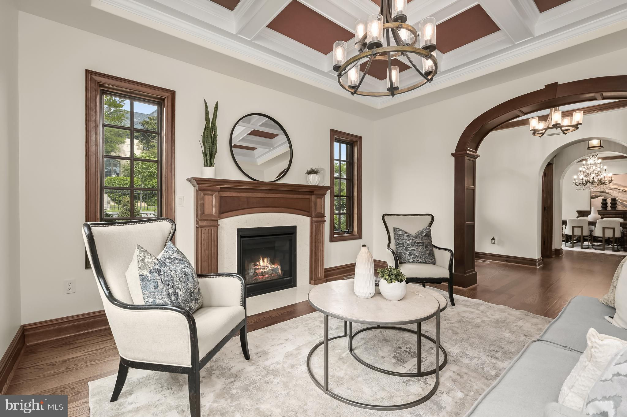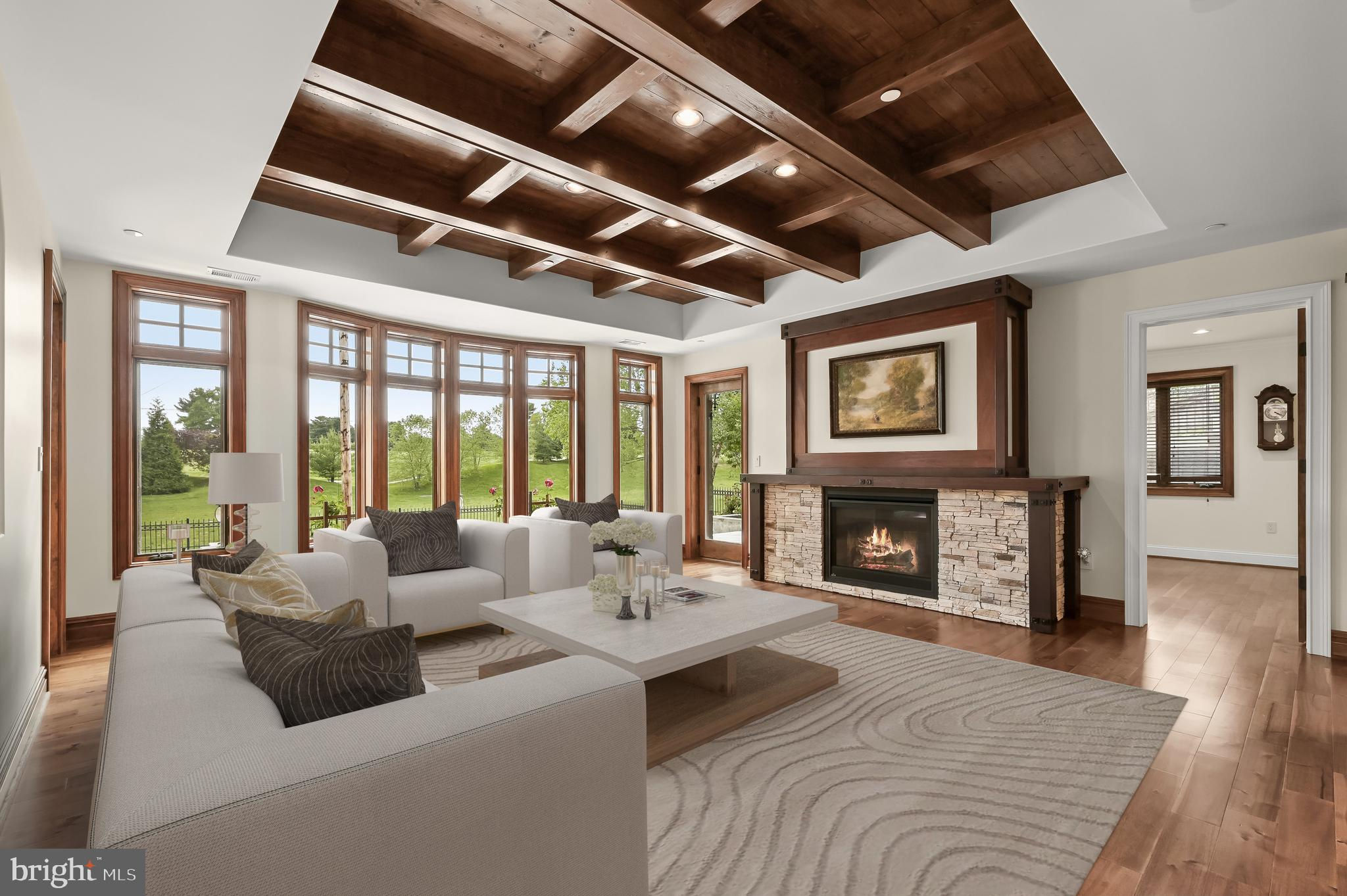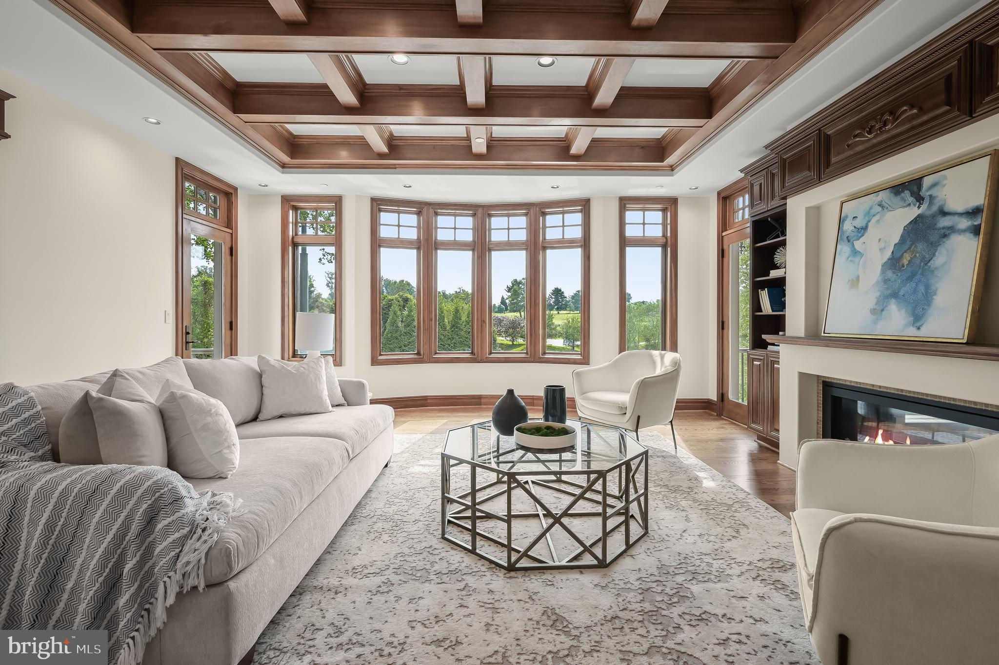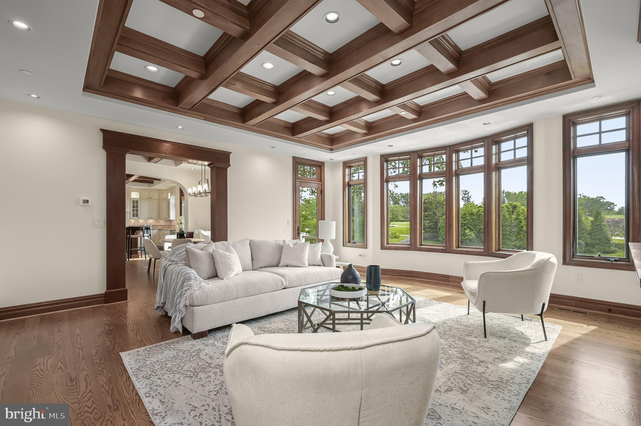 6416 Garnett Drive, is a spectacular, newly constructed Tudor estate backing to whimsical rolling golf course vistas and enchanting sunsets. Fully custom designed from the ground up, the home features 8,500 square feet of exquisite living space comprising the finest in materials and workmanship spread across a floor plan equally apt at accommodating large scale entertaining as well as casual contemporary lifestyles. A fully gated entrance embellished with decorative, lighted stone pillars reveals beautifully planted gardens with a profusion of colorful flowering specimens. The paver driveway connects to an attached two car garage and adjoins a flagstone walkway leading to the main entrance. An artfully arched solid wooden entry door reveals an elegant reception vestibule, around which formal living and dining rooms are arranged in a classic center hall configuration. The former revolves around a roaring gas fireplace, while the latter’s resplendent curved wall of windows brings in copious amounts of natural light reflecting off the twinkling crystal chandelier. Throughout the home, exquisite millwork complements the wide plank oak floor, covering moldings, baseboards, window trim, and intricate ceilings. As is exemplary in the chef’s kitchen with custom cabinetry, whose coffered ceiling is a focal point. Stacked cabinetry, a contrasting center island with integrated bar seating, commercial grade SubZero and Wolf appliances, and double glass doors leading directly onto the rear terrace establish this space as the heart of the home. The adjacent breakfast area features an integrated bench with sweeping views beyond, shared by the large family room with coffered ceiling and a wall of windows. A two-sided linear fireplace connects the space to an adjoining study, offering a tranquil retreat with private outdoor access. An upper level sitting area serves as a cozy gathering space. Branching off the space, through a set of double leather-bound doors, is the sumptuous primary suite. A raised beamed ceiling, chic linear fireplace, and private balcony overlooking the golf course complement the ubiquitous spa-inspired bath and commodious dressing rooms to establish a home within a home. Six additional secondary bedrooms are all generously proportioned and feature ensuite baths. The ethereal lower level sits above ground, allowing the entry of natural light. An entertainer’s delight, the space is amenity-rich with a full wet bar, fitness center, and professional media room. The home’s outdoor spaces are its true showstopping feature. The rear terrace spans multiple levels and houses a fully equipped, covered outdoor kitchen with top of the line appliances to accommodate al fresco entertaining on the grandest of scales. It descends down to a splendid limestone patio with multiple locations for loungers. The infinity pool is the pièce de résistance, offering glorious, unparalleled views reflected in its shimmer and a bubbling adjoining hot tub. With unrivaled views and situated on one of Kenwood’s most premium lots, 6416 Garnett Drive offers a one-of-a-kind blend of luxury and modern livability in one of the Capital Region’s most sought-after locations.