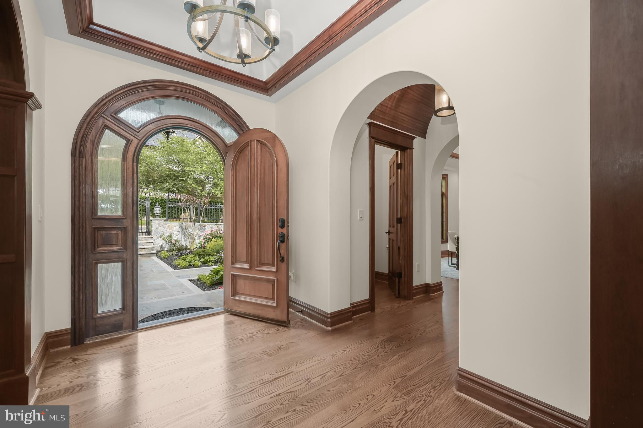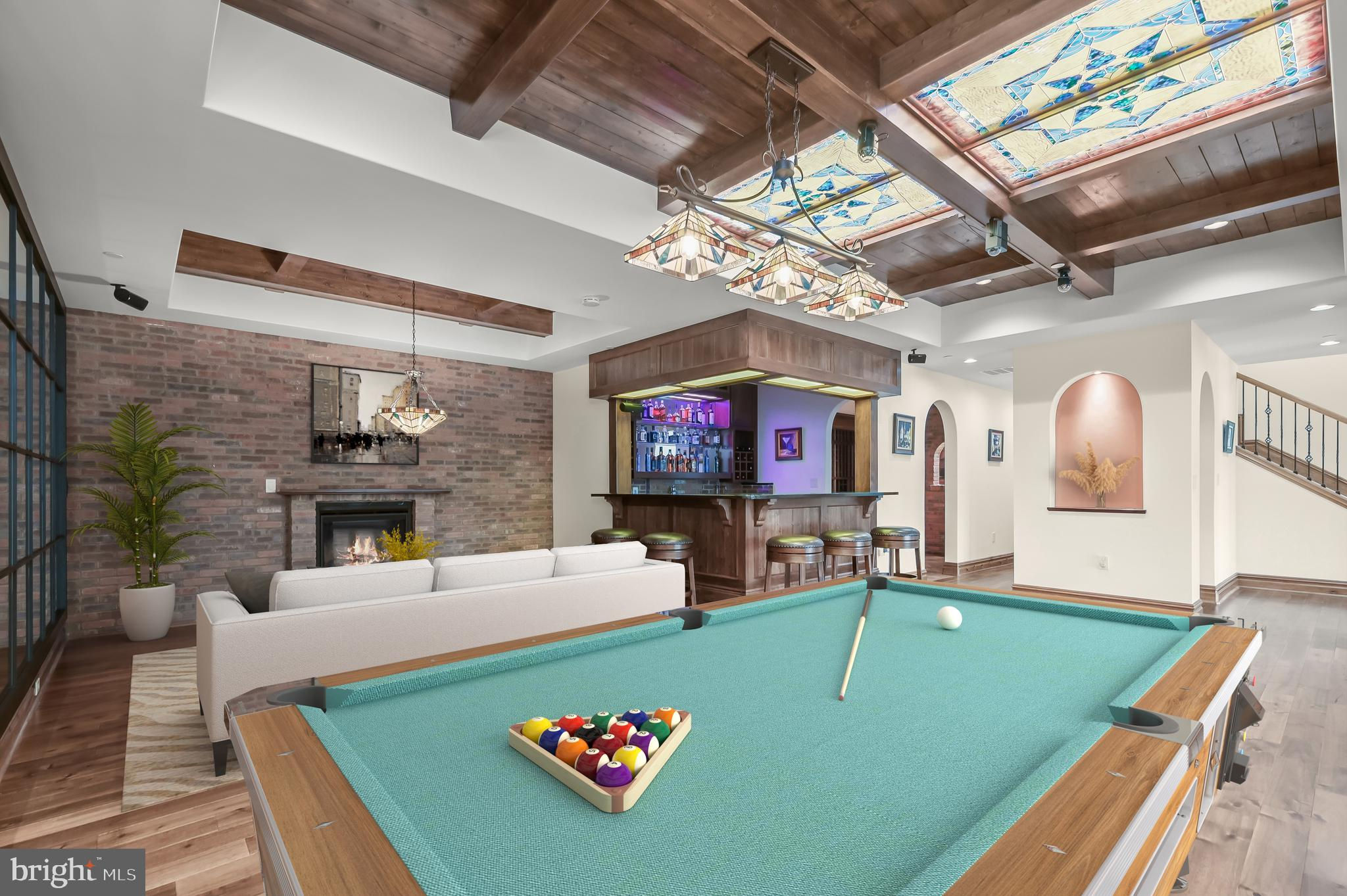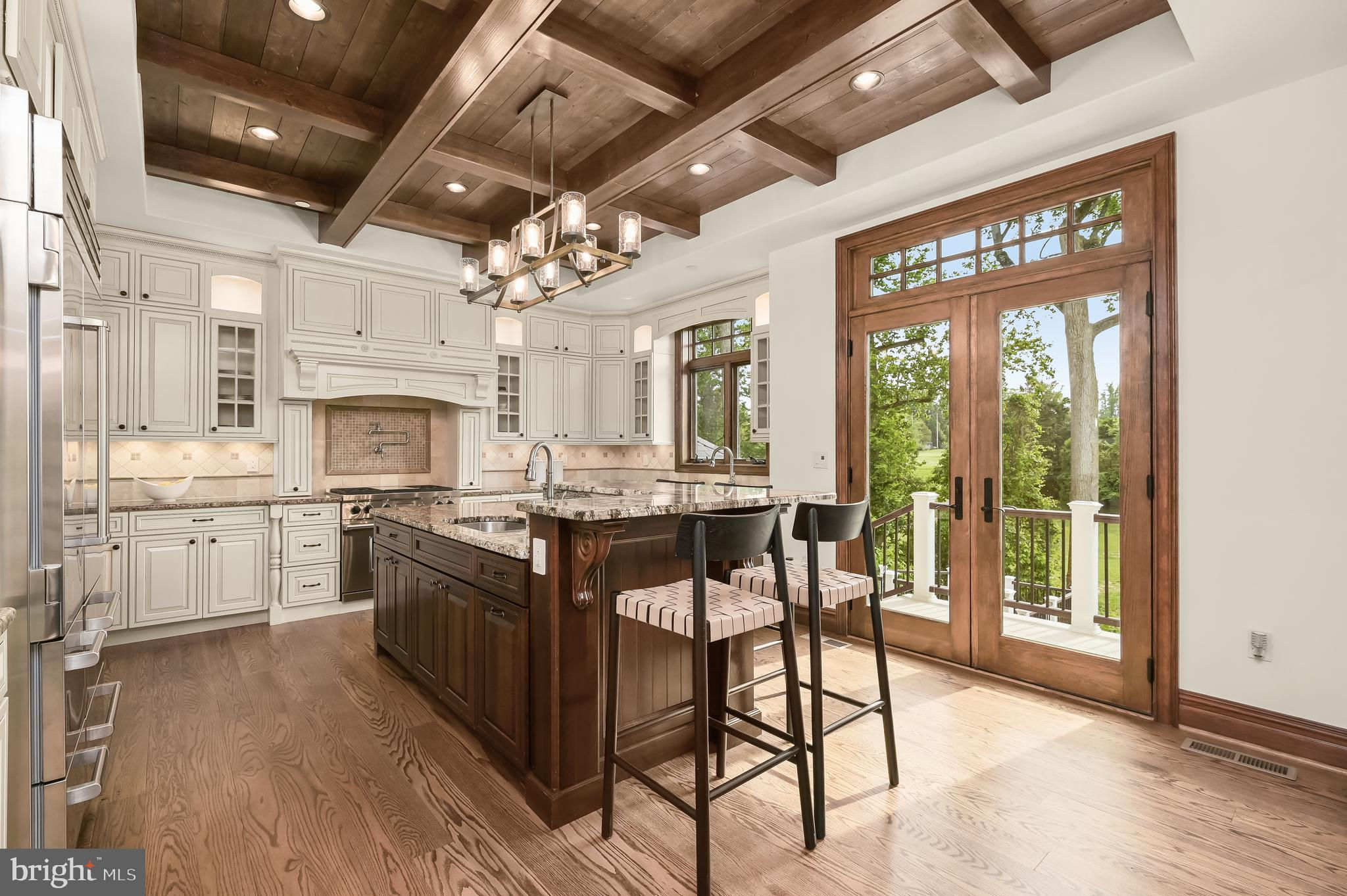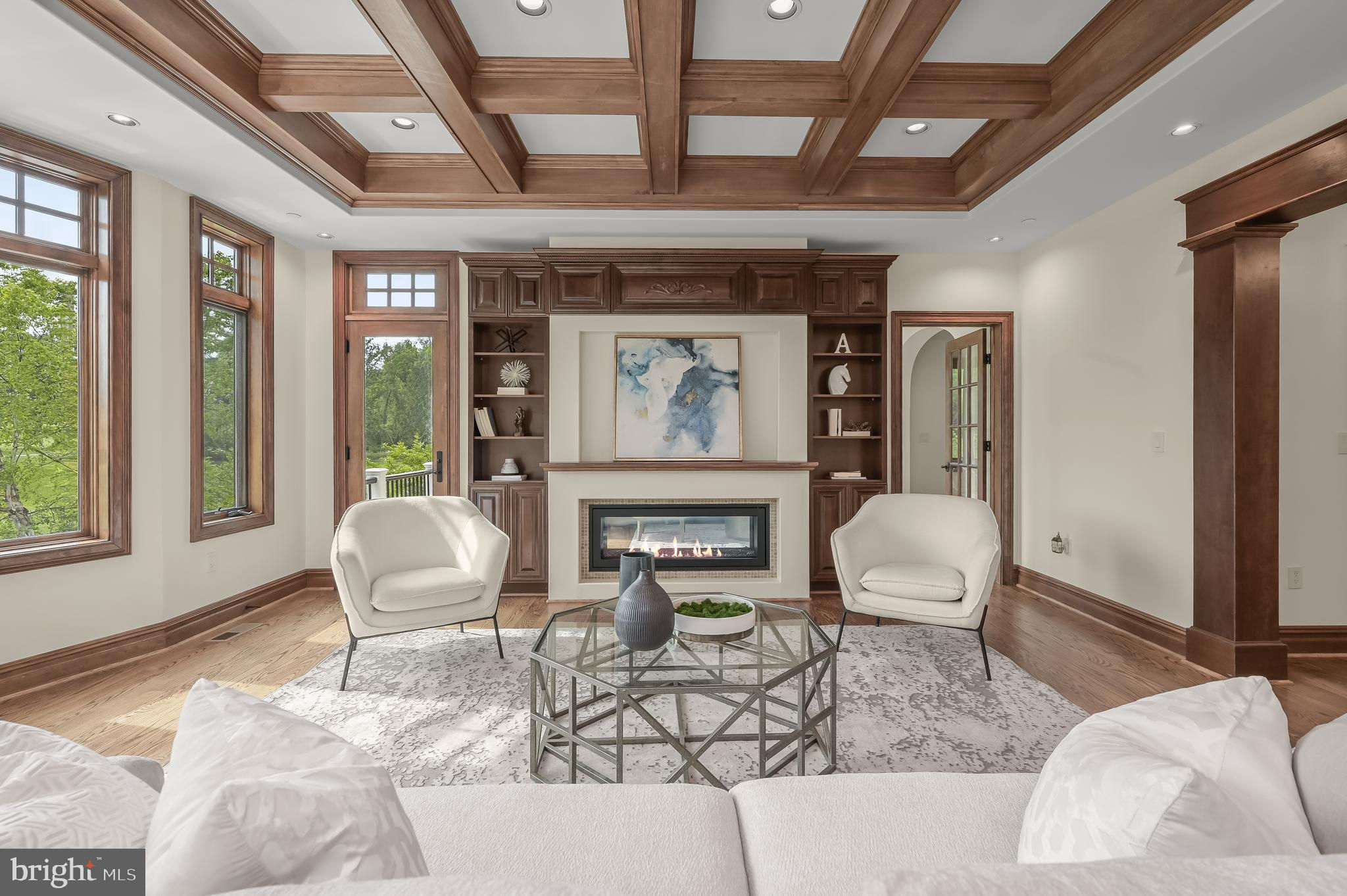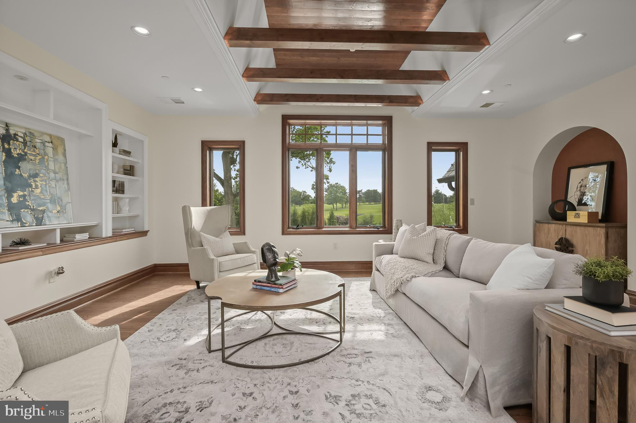 6416 Garnett Drive, is a spectacular, newly constructed Tudor estate backing to whimsical rolling golf course vistas and enchanting sunsets. Fully custom designed from the ground up, the home features 8,500 square feet of exquisite living space comprising the finest in materials and workmanship spread across a floor plan equally apt at accommodating large scale entertaining as well as casual contemporary lifestyles. A fully gated entrance embellished with decorative, lighted stone pillars reveals beautifully planted gardens with a profusion of colorful flowering specimens. The paver driveway connects to an attached two car garage and adjoins a flagstone walkway leading to the main entrance. An artfully arched solid wooden entry door reveals an elegant reception vestibule, around which formal living and dining rooms are arranged in a classic center hall configuration. The former revolves around a roaring gas fireplace, while the latter’s resplendent curved wall of windows brings in copious amounts of natural light reflecting off the twinkling crystal chandelier. Throughout the home, exquisite millwork complements the wide plank oak floor, covering moldings, baseboards, window trim, and intricate ceilings. As is exemplary in the chef’s kitchen with custom cabinetry, whose coffered ceiling is a focal point. Stacked cabinetry, a contrasting center island with integrated bar seating, commercial grade SubZero and Wolf appliances, and double glass doors leading directly onto the rear terrace establish this space as the heart of the home. The adjacent breakfast area features an integrated bench with sweeping views beyond, shared by the large family room with coffered ceiling and a wall of windows. A two-sided linear fireplace connects the space to an adjoining study, offering a tranquil retreat with private outdoor access. An upper level sitting area serves as a cozy gathering space. Branching off the space, through a set of double leather-bound doors, is the sumptuous primary suite. A raised beamed ceiling, chic linear fireplace, and private balcony overlooking the golf course complement the ubiquitous spa-inspired bath and commodious dressing rooms to establish a home within a home. Six additional secondary bedrooms are all generously proportioned and feature ensuite baths. The ethereal lower level sits above ground, allowing the entry of natural light. An entertainer’s delight, the space is amenity-rich with a full wet bar, fitness center, and professional media room. The home’s outdoor spaces are its true showstopping feature. The rear terrace spans multiple levels and houses a fully equipped, covered outdoor kitchen with top of the line appliances to accommodate al fresco entertaining on the grandest of scales. It descends down to a splendid limestone patio with multiple locations for loungers. The infinity pool is the pièce de résistance, offering glorious, unparalleled views reflected in its shimmer and a bubbling adjoining hot tub. With unrivaled views and situated on one of Kenwood’s most premium lots, 6416 Garnett Drive offers a one-of-a-kind blend of luxury and modern livability in one of the Capital Region’s most sought-after locations.