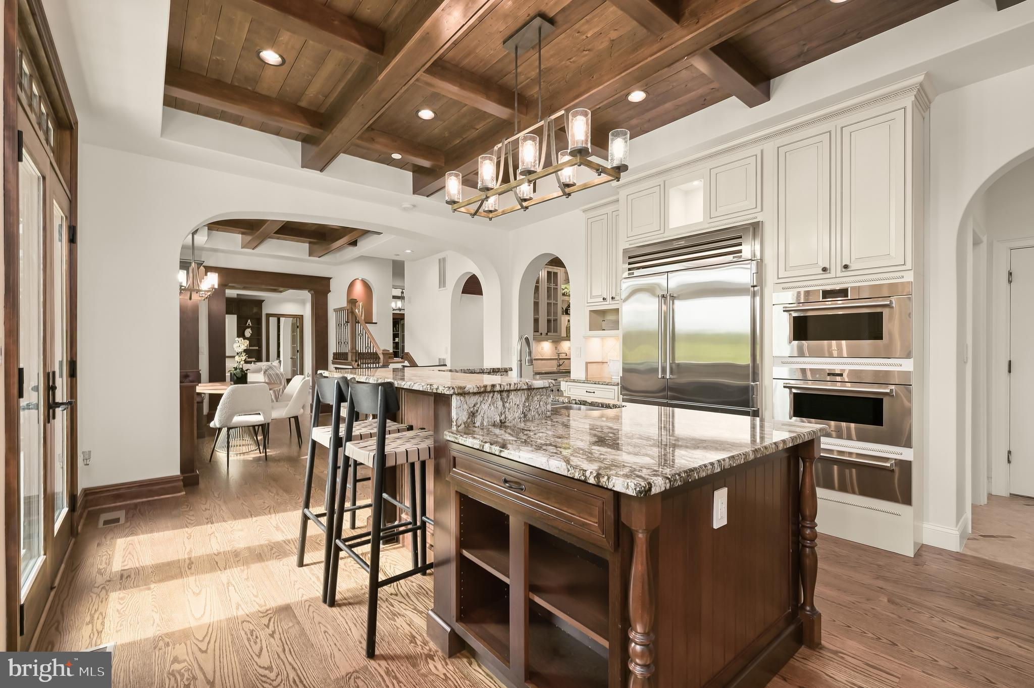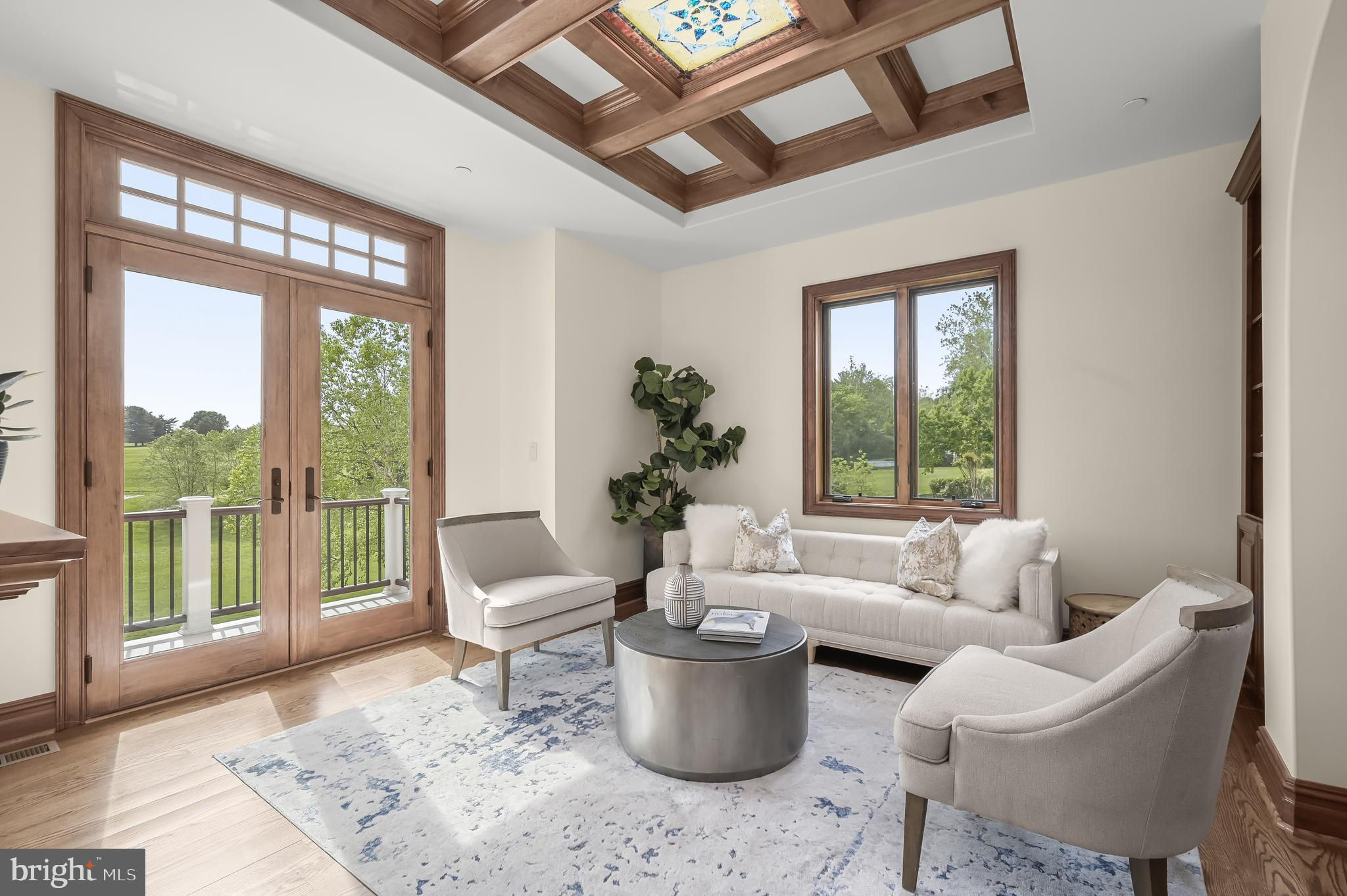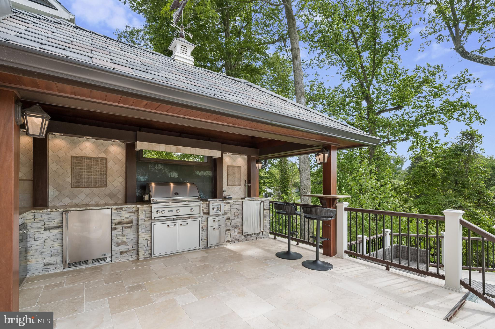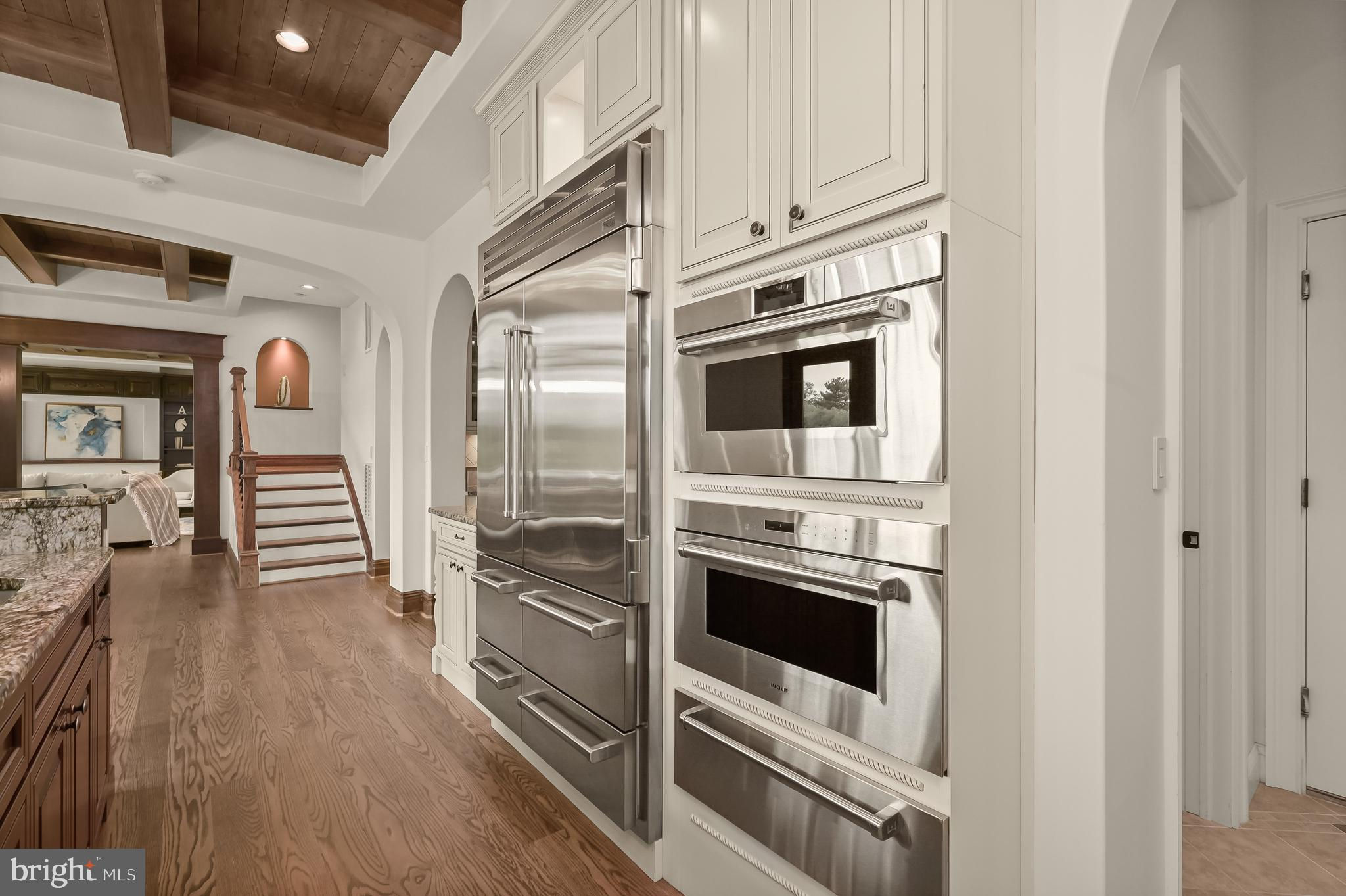 6416 Garnett Drive, is a spectacular, newly constructed Tudor estate backing to whimsical rolling golf course vistas and enchanting sunsets. Fully custom designed from the ground up, the home features 8,500 square feet of exquisite living space comprising the finest in materials and workmanship spread across a floor plan equally apt at accommodating large scale entertaining as well as casual contemporary lifestyles. A fully gated entrance embellished with decorative, lighted stone pillars reveals beautifully planted gardens with a profusion of colorful flowering specimens. The paver driveway connects to an attached two car garage and adjoins a flagstone walkway leading to the main entrance. An artfully arched solid wooden entry door reveals an elegant reception vestibule, around which formal living and dining rooms are arranged in a classic center hall configuration. The former revolves around a roaring gas fireplace, while the latter’s resplendent curved wall of windows brings in copious amounts of natural light reflecting off the twinkling crystal chandelier. Throughout the home, exquisite millwork complements the wide plank oak floor, covering moldings, baseboards, window trim, and intricate ceilings. As is exemplary in the chef’s kitchen with custom cabinetry, whose coffered ceiling is a focal point. Stacked cabinetry, a contrasting center island with integrated bar seating, commercial grade SubZero and Wolf appliances, and double glass doors leading directly onto the rear terrace establish this space as the heart of the home. The adjacent breakfast area features an integrated bench with sweeping views beyond, shared by the large family room with coffered ceiling and a wall of windows. A two-sided linear fireplace connects the space to an adjoining study, offering a tranquil retreat with private outdoor access. An upper level sitting area serves as a cozy gathering space. Branching off the space, through a set of double leather-bound doors, is the sumptuous primary suite. A raised beamed ceiling, chic linear fireplace, and private balcony overlooking the golf course complement the ubiquitous spa-inspired bath and commodious dressing rooms to establish a home within a home. Six additional secondary bedrooms are all generously proportioned and feature ensuite baths. The ethereal lower level sits above ground, allowing the entry of natural light. An entertainer’s delight, the space is amenity-rich with a full wet bar, fitness center, and professional media room. The home’s outdoor spaces are its true showstopping feature. The rear terrace spans multiple levels and houses a fully equipped, covered outdoor kitchen with top of the line appliances to accommodate al fresco entertaining on the grandest of scales. It descends down to a splendid limestone patio with multiple locations for loungers. The infinity pool is the pièce de résistance, offering glorious, unparalleled views reflected in its shimmer and a bubbling adjoining hot tub. With unrivaled views and situated on one of Kenwood’s most premium lots, 6416 Garnett Drive offers a one-of-a-kind blend of luxury and modern livability in one of the Capital Region’s most sought-after locations.