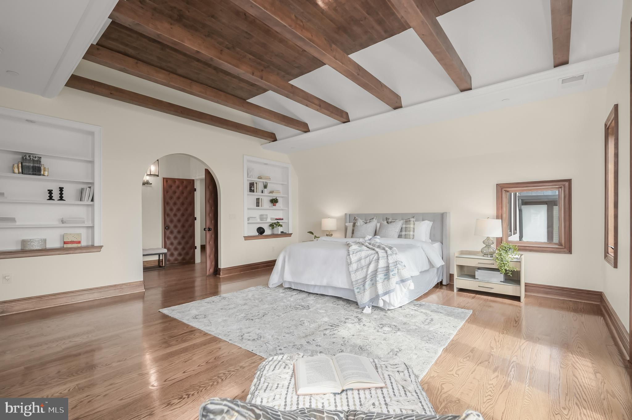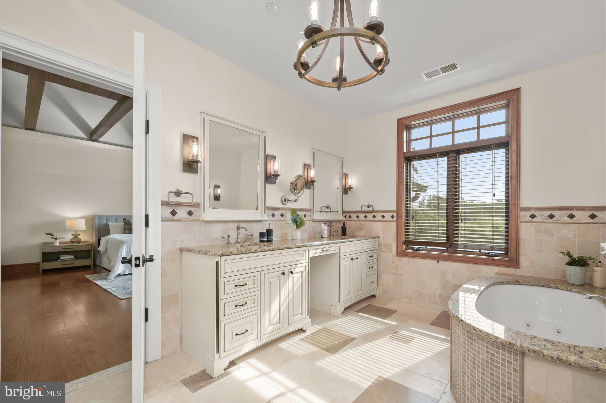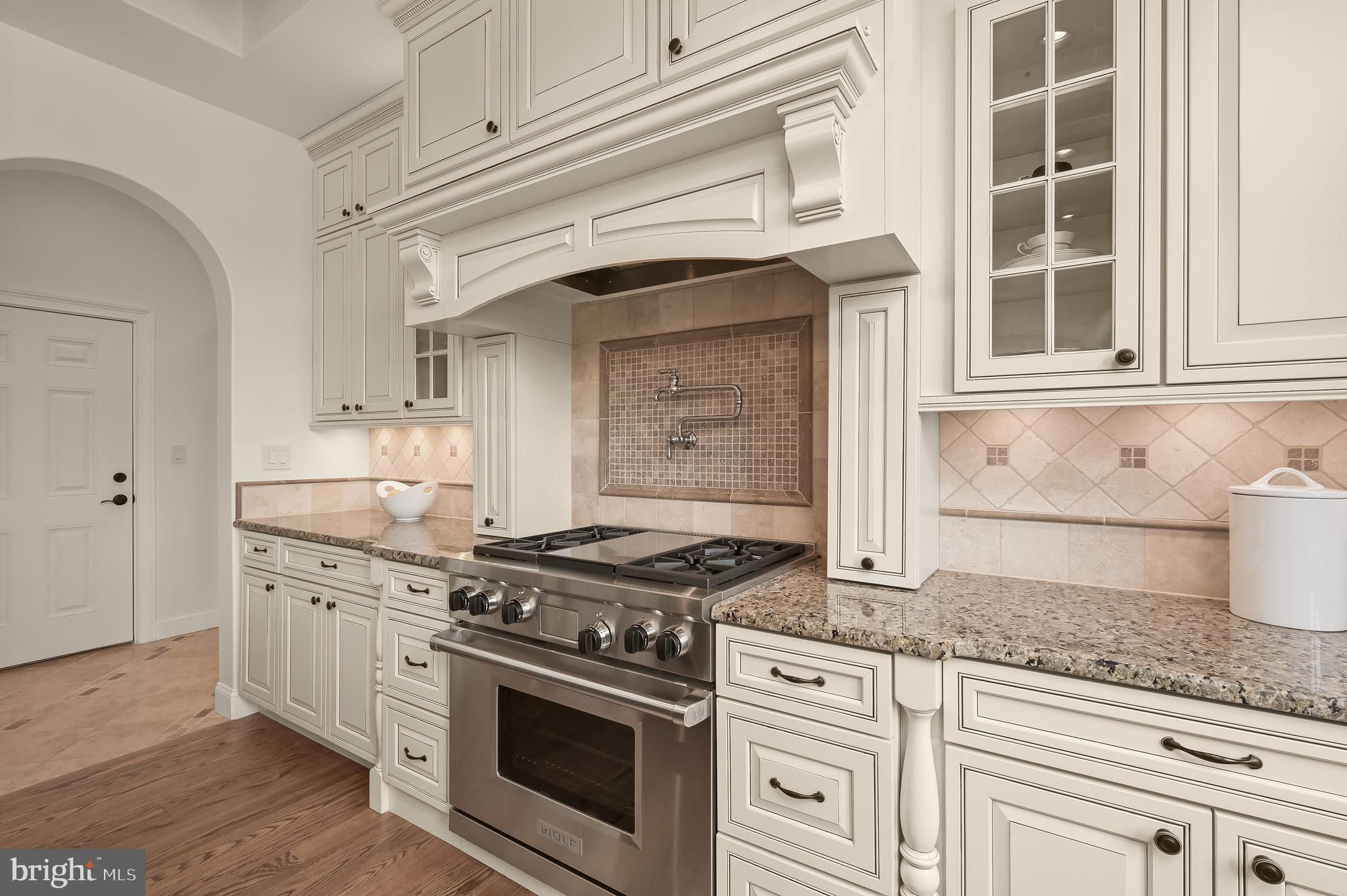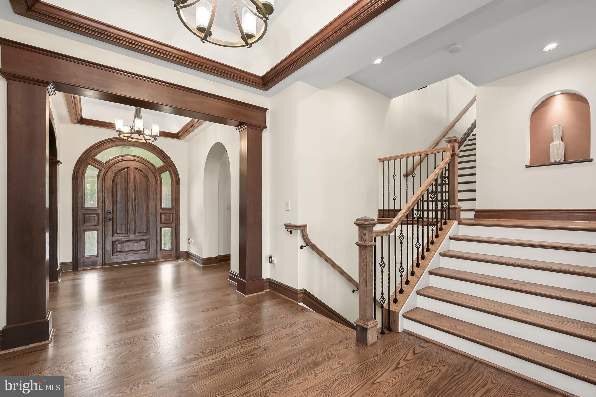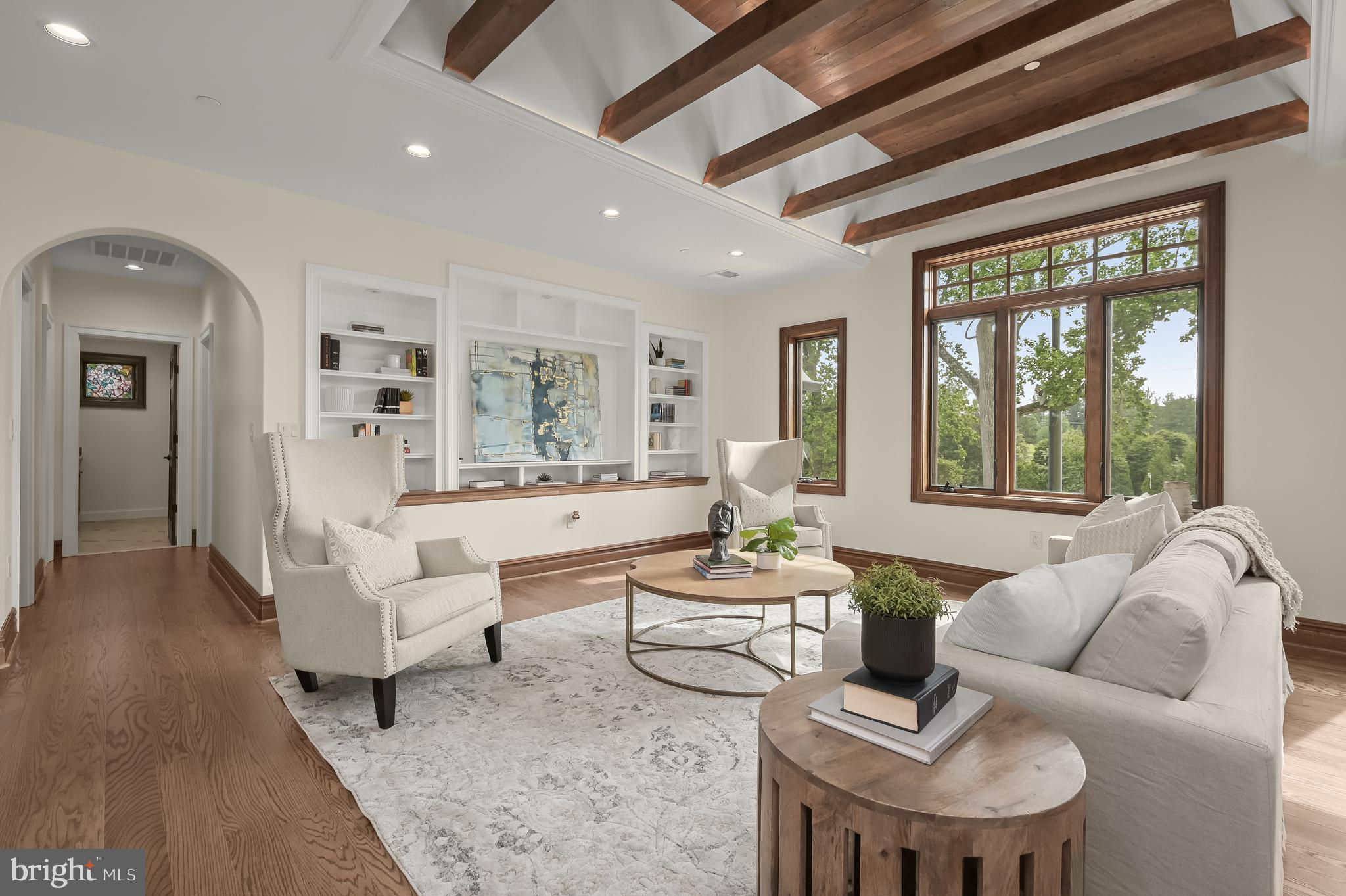 6416 Garnett Drive, is a spectacular, newly constructed Tudor estate backing to whimsical rolling golf course vistas and enchanting sunsets. Fully custom designed from the ground up, the home features 8,500 square feet of exquisite living space comprising the finest in materials and workmanship spread across a floor plan equally apt at accommodating large scale entertaining as well as casual contemporary lifestyles. A fully gated entrance embellished with decorative, lighted stone pillars reveals beautifully planted gardens with a profusion of colorful flowering specimens. The paver driveway connects to an attached two car garage and adjoins a flagstone walkway leading to the main entrance. An artfully arched solid wooden entry door reveals an elegant reception vestibule, around which formal living and dining rooms are arranged in a classic center hall configuration. The former revolves around a roaring gas fireplace, while the latter’s resplendent curved wall of windows brings in copious amounts of natural light reflecting off the twinkling crystal chandelier. Throughout the home, exquisite millwork complements the wide plank oak floor, covering moldings, baseboards, window trim, and intricate ceilings. As is exemplary in the chef’s kitchen with custom cabinetry, whose coffered ceiling is a focal point. Stacked cabinetry, a contrasting center island with integrated bar seating, commercial grade SubZero and Wolf appliances, and double glass doors leading directly onto the rear terrace establish this space as the heart of the home. The adjacent breakfast area features an integrated bench with sweeping views beyond, shared by the large family room with coffered ceiling and a wall of windows. A two-sided linear fireplace connects the space to an adjoining study, offering a tranquil retreat with private outdoor access. An upper level sitting area serves as a cozy gathering space. Branching off the space, through a set of double leather-bound doors, is the sumptuous primary suite. A raised beamed ceiling, chic linear fireplace, and private balcony overlooking the golf course complement the ubiquitous spa-inspired bath and commodious dressing rooms to establish a home within a home. Six additional secondary bedrooms are all generously proportioned and feature ensuite baths. The ethereal lower level sits above ground, allowing the entry of natural light. An entertainer’s delight, the space is amenity-rich with a full wet bar, fitness center, and professional media room. The home’s outdoor spaces are its true showstopping feature. The rear terrace spans multiple levels and houses a fully equipped, covered outdoor kitchen with top of the line appliances to accommodate al fresco entertaining on the grandest of scales. It descends down to a splendid limestone patio with multiple locations for loungers. The infinity pool is the pièce de résistance, offering glorious, unparalleled views reflected in its shimmer and a bubbling adjoining hot tub. With unrivaled views and situated on one of Kenwood’s most premium lots, 6416 Garnett Drive offers a one-of-a-kind blend of luxury and modern livability in one of the Capital Region’s most sought-after locations.