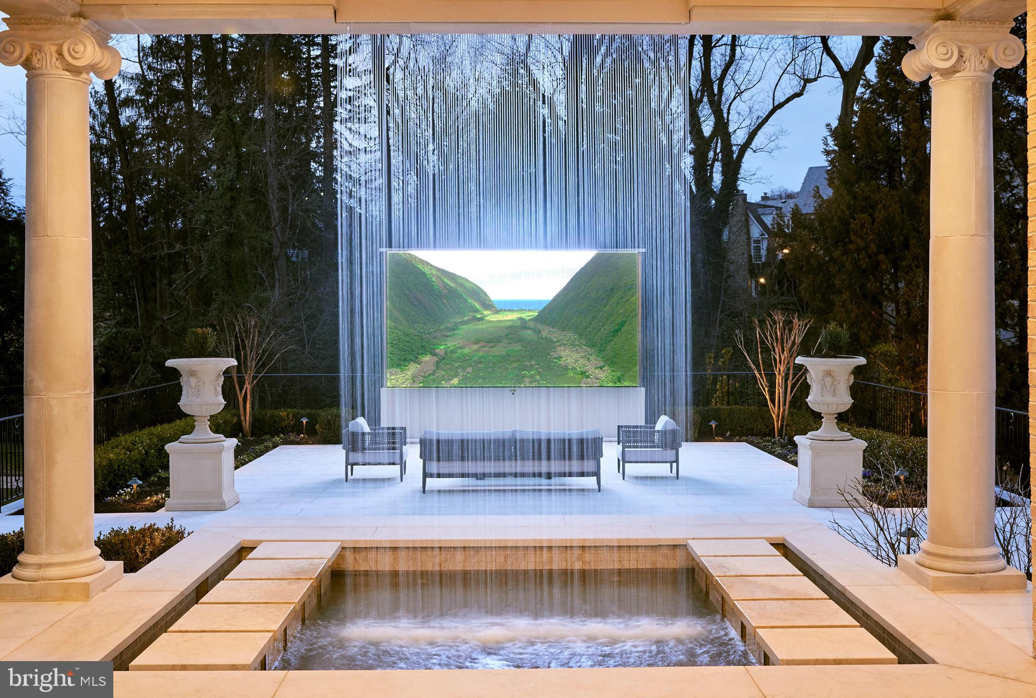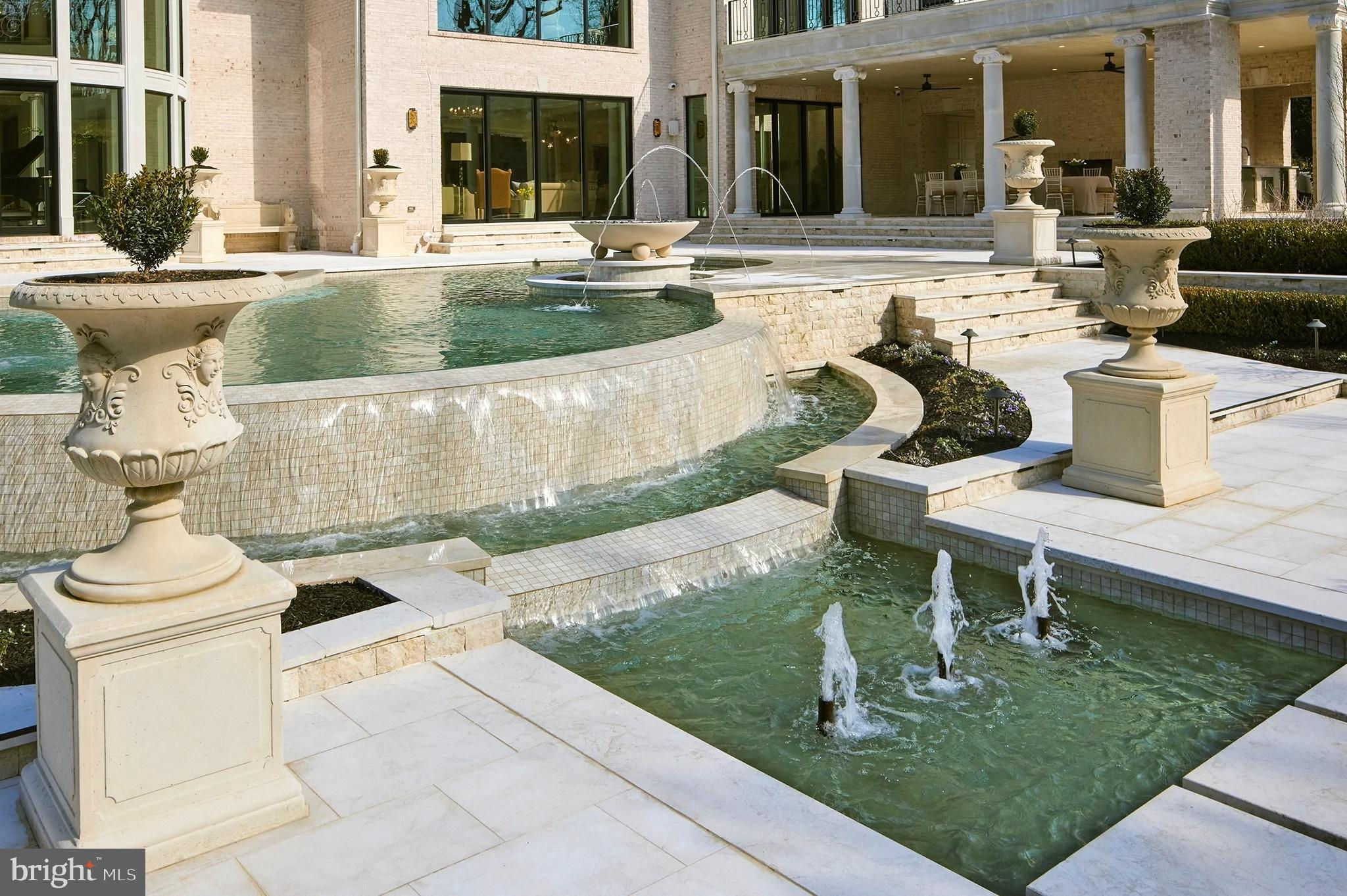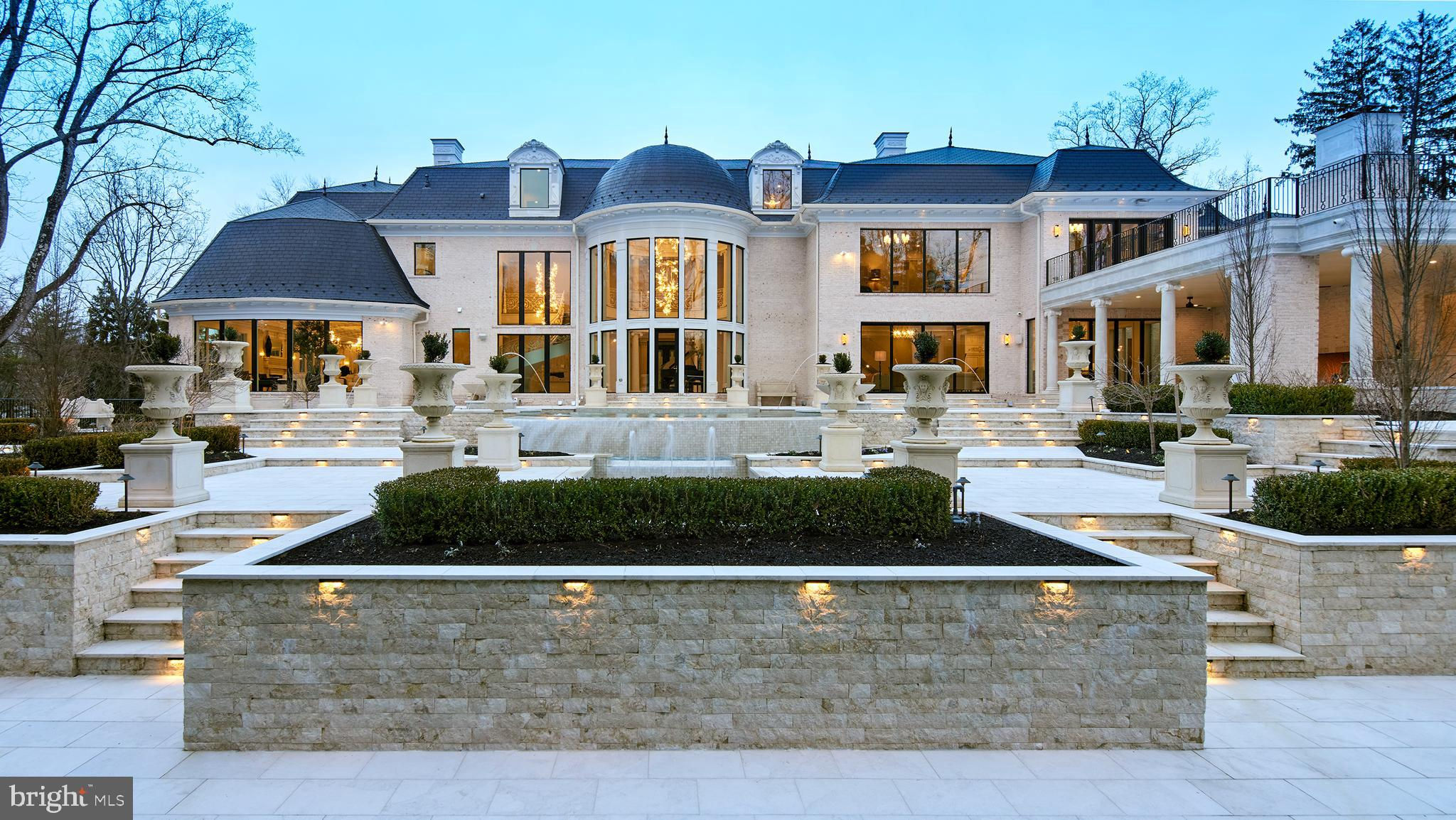 Set on nearly four acres along prestigious Georgetown Pike, this French-inspired estate offers 22,000 square feet of refined living across four levels with 10 ensuite bedrooms. A sweeping drive leads to wrought iron gates and a grand motor court, setting the stage for interiors designed with uncompromising craftsmanship. The marble foyer opens to expansive living and entertaining spaces, including a paneled library, elegant dining room, multiple kitchens, and a great room with panoramic garden views. The 3,300-square-foot primary suite features dual fireplaces, a private terrace, and an extraordinary two-story dressing closet. Amenities extend to every level: a screening room, full spa with sauna and steam, massage and glam rooms, a fitness center, and a lounge with wet bar and direct garden access. Outdoors, resort-style grounds include a pool with waterfalls, a retractable 200-inch screen, and a covered al fresco dining pavilion with a built-in grilling kitchen. With smart-home technology, five garage bays, and secure parking for 30, this estate represents unmatched luxury just minutes from Washington, DC.
