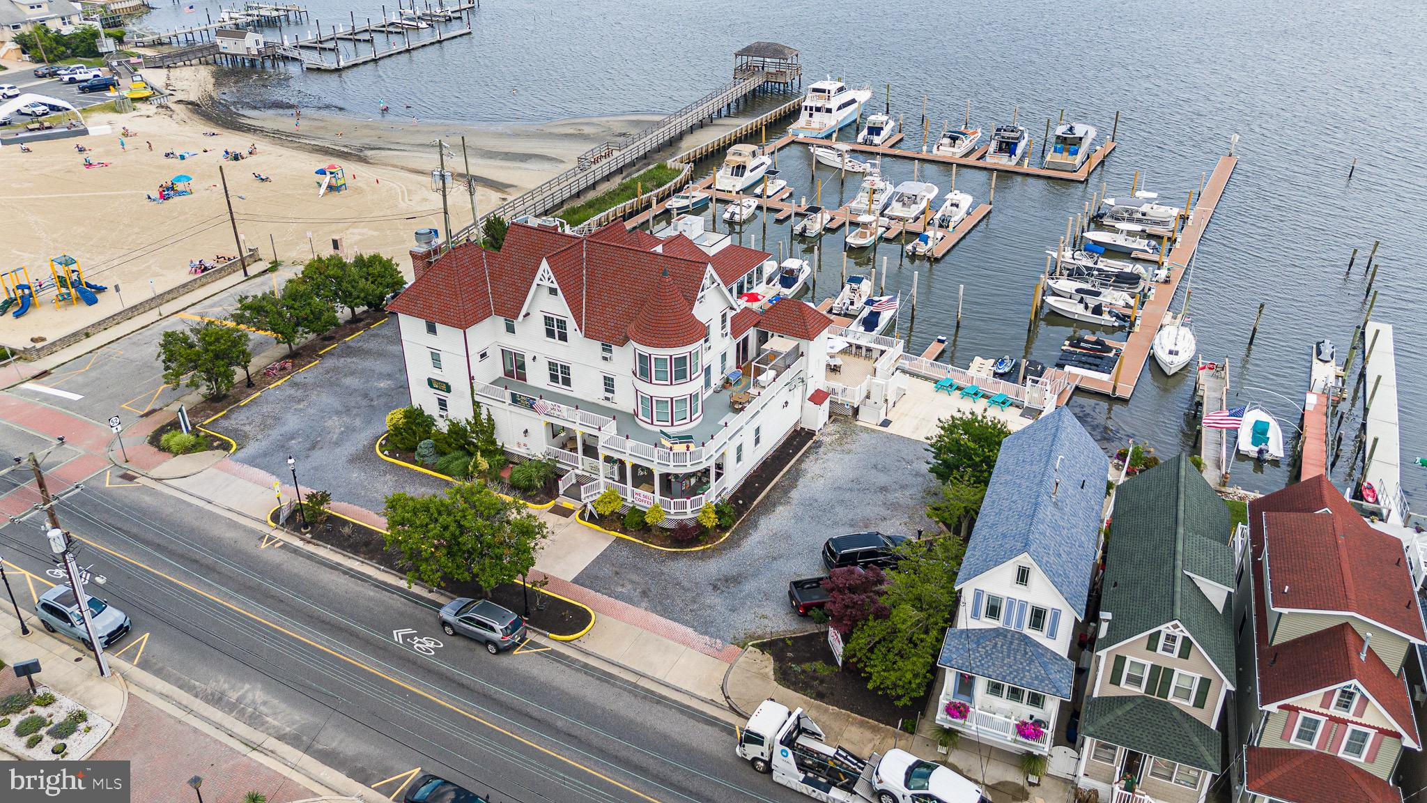 Ever dreamed of owning a waterfront hotel complete with a restaurant and marina? Look no further than Tavern on the Bay Hotel & Marina, a one-of-a-kind property located at 800 Bay Avenue in Somers Point. A beautifully preserved Victorian-style mansion dating back to 1876, this iconic property blends historic charm with modern comforts. Rich in history, the building has served many purposes over the years, including a bordello and a favorite hangout of the notorious Nucky Johnson during Prohibition. Today, it operates as a boutique hotel and restaurant, just steps from the lively attractions of downtown Somers Point. The hotel features eight uniquely themed suites, each named after legendary historical figures like Lucky Luciano and Al Capone. Every room is thoughtfully designed with modern amenities such as flat-screen TVs, mini-fridges, coffee makers, and private bathrooms. Guests can also relax on the rooftop terrace, which offers sweeping views of Great Egg Harbor Bay. The restaurant and bar offer an exceptional dining experience with a spacious indoor area that seats 200 guests, plus an expansive outdoor patio with room for 100 more, all overlooking stunning waterfront views. The marina includes 55 boat slips, accommodating both boats and jet skis, making it a popular destination for boaters and locals alike. With its seamless indoor-outdoor flow, scenic location, and easy access by land or water, Tavern on the Bay is perfectly suited for upscale dining, special events, and summer crowds. Don’t miss this rare chance to own a premier waterfront property in one of the Jersey Shore’s most sought-after coastal communities.