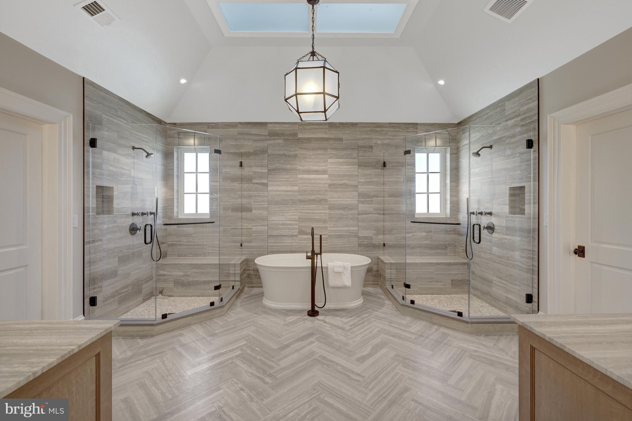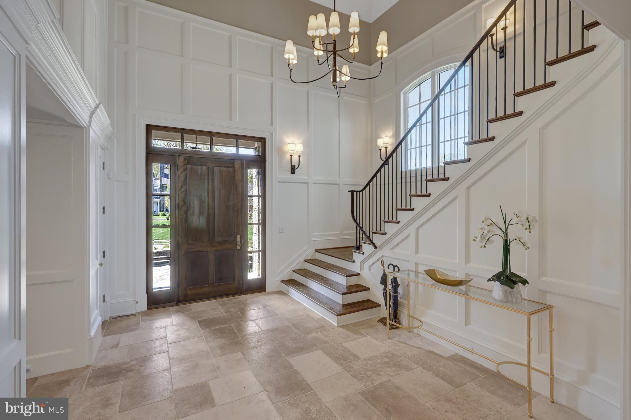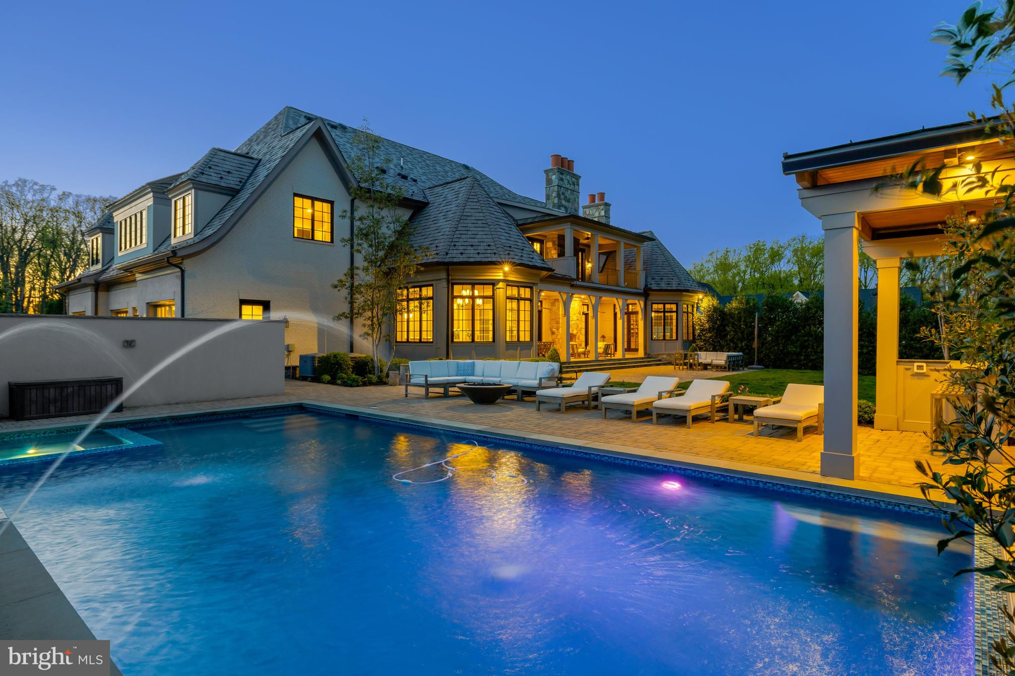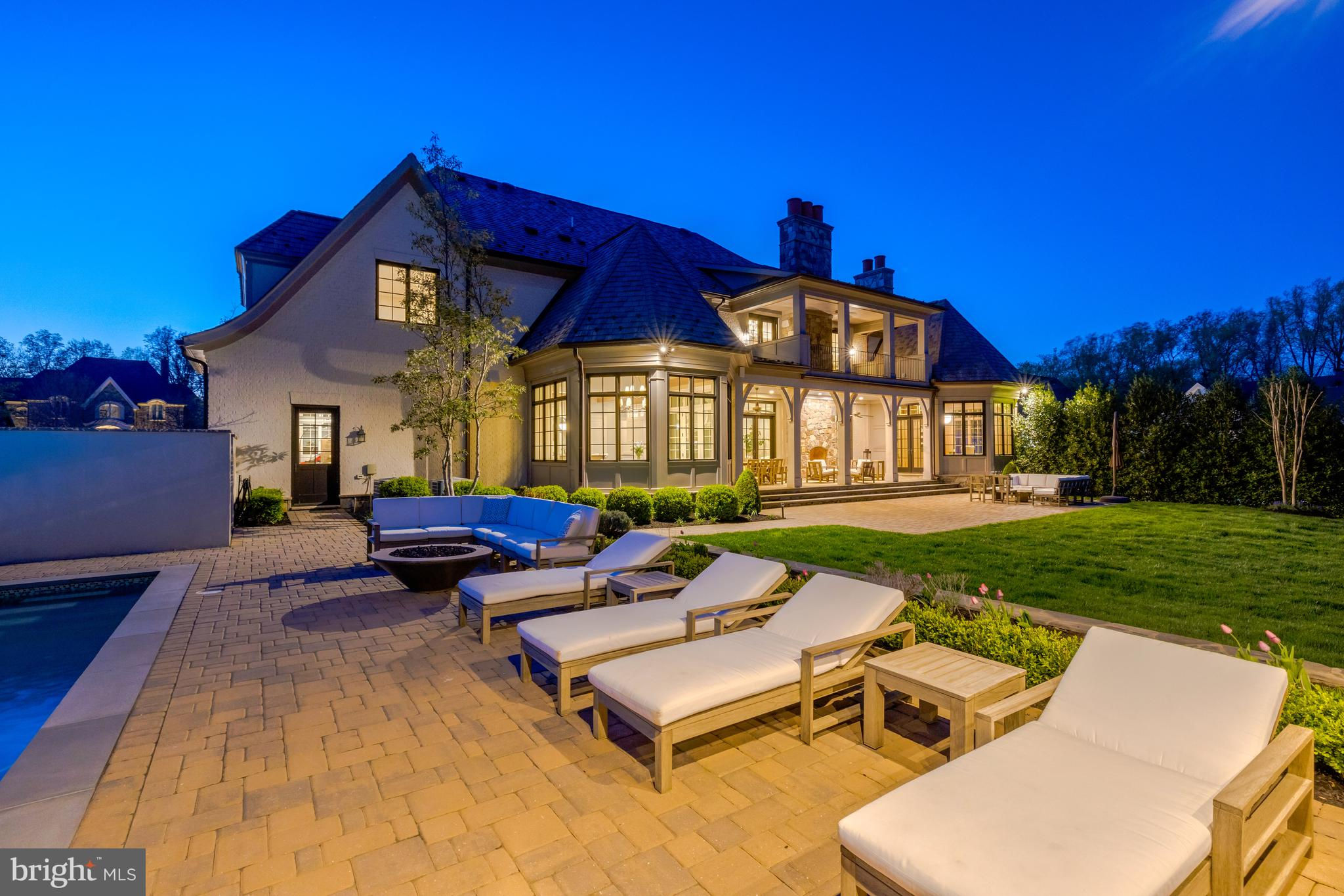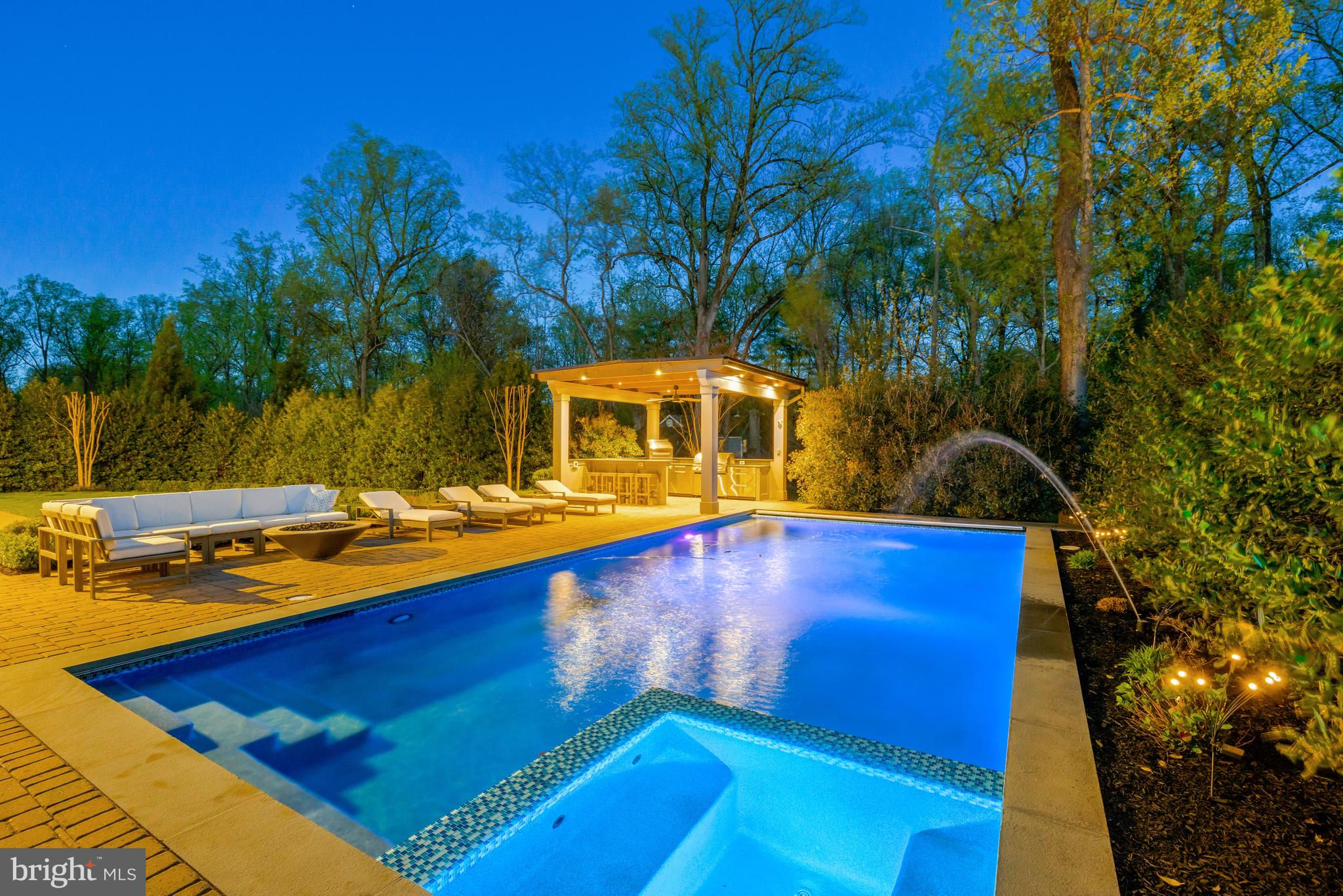 A premier offering in the prestigious enclave of Mackall Farms, this exceptional residence exhibits elevated craftsmanship and uncompromising luxury. A collaboration of McLean-based Winthrop Custom Builders, Andy Staszak Interiors, and Fine Landscapes by Charles Owen, the home seamlessly blends transitional elements with timeless design to create a gracious, yet refined living environment. Exterior elements incorporate natural field stone and painted brick, an EcoStar Empire Shake roof, masonry built chimneys, a saltwater pool, and a 4-Car Garage. An elevator accesses all floors of the home. The Main Level features both white oak hardwood and limestone floors as well as bespoke millwork and detailed trim work. Beyond the impressive 2-story Foyer lies the Great Room with gas Fireplace, stone mantel, quartersawn white oak custom built-ins, and two sets of French doors to the rear loggia. The formal Living Room with wet bar, elegant Dining Room, and a private white oak paneled Library with rear exterior access provide ideal work and entertaining spaces. A magnificent Kitchen with custom built inset cabinetry, soapstone countertops, Wolf/Sub-Zero appliances, and Morning Room with cathedral beamed ceiling and 180-degree views overlook the tranquil backyard. Conveniently, a generously sized Mudroom with direct garage access, 1 of 2 Laundry Rooms, a Half Bath, oversized storage spaces, and separate entrance completes the everyday living spaces. The Upper Level continues with white oak floors throughout. The expansive Primary Owner's retreat features a gas Fireplace, French doors to a private terrace, two custom designed Walk-In Closets, and a light-filled luxurious Bathroom finished with natural stone, a free standing soaking tub, two water closets, and two separate glass-enclosed showers. The secondary Bedroom Suite includes a large sitting room, Bathroom with separate water closet, and walk-in closet. The second Laundry Room, a rear staircase, and 2 additional Bedrooms, both ensuite and with walk-in closets, complete the Upper Level. The walk-out Lower Level is equally impressive with a fully outfitted custom wet bar, 1085-bottle wine cellar, Recreation Room with rustic beamed ceiling and gas Fireplace, state-of-the-art Home Theater, Fitness Room, a 5th Bedroom suite with Full Bath, and conditioned storage areas. The thoughtfully designed backyard living experience features a saltwater pool with spa and water feature, outdoor grill Kitchen, gas firepit, covered flagstone loggia with Fireplace, oversized patio, mature landscaping, and natural privacy screening, all perfect for relaxing, entertaining, alfresco dining, or gardening. The home is also outfitted with a Lutron lighting system, alarm system with cameras, commercial grade internet, and an irrigation system. Ideally located just 5 minutes to the GW Parkway or Beltway, 6 minutes to the Chain Bridge, 10 minutes to Tysons, 12 minutes to Arlington, and equidistant from Reagan and Dulles airports. Experience the splendor and ease of a turnkey offering available now.